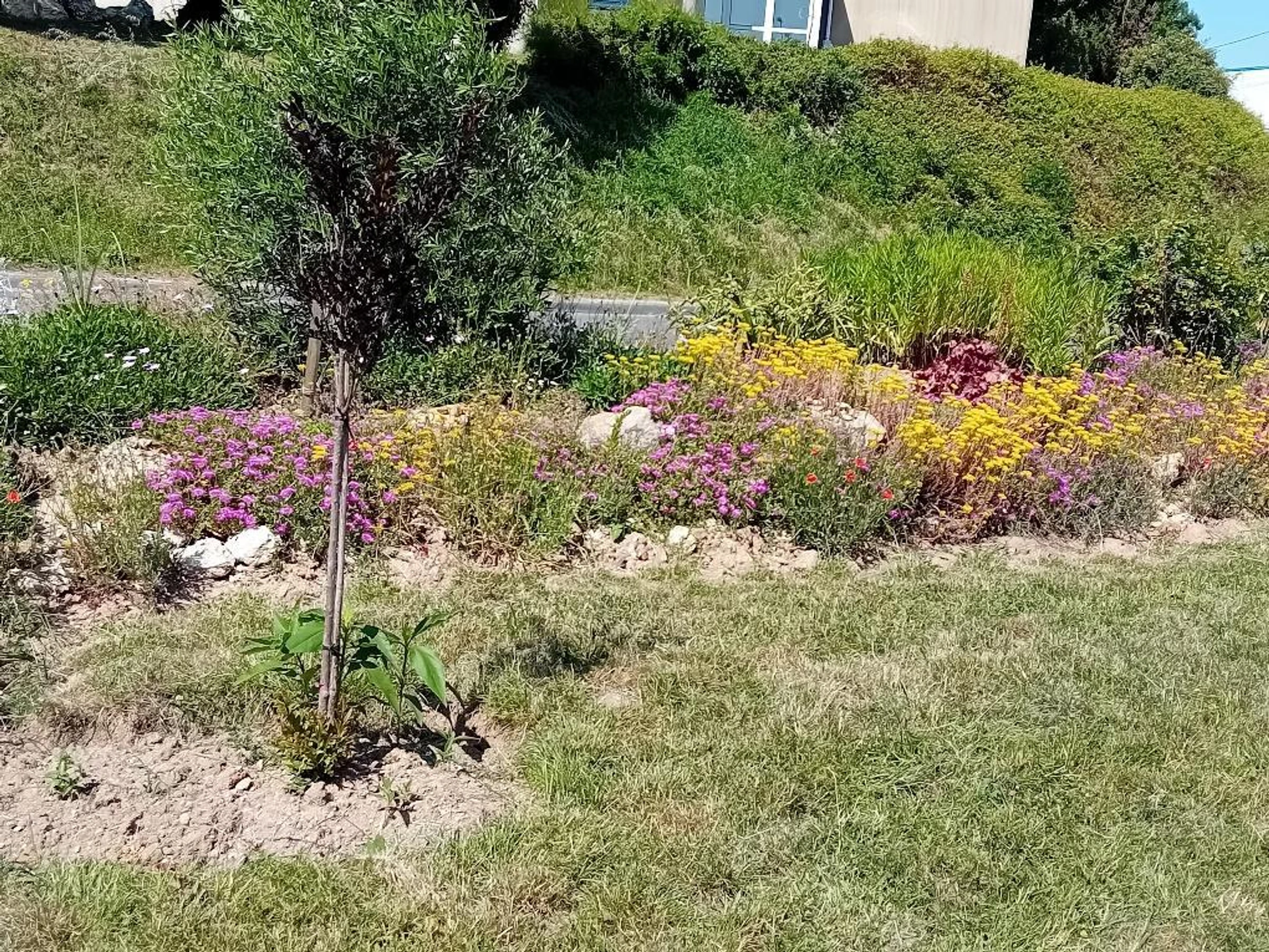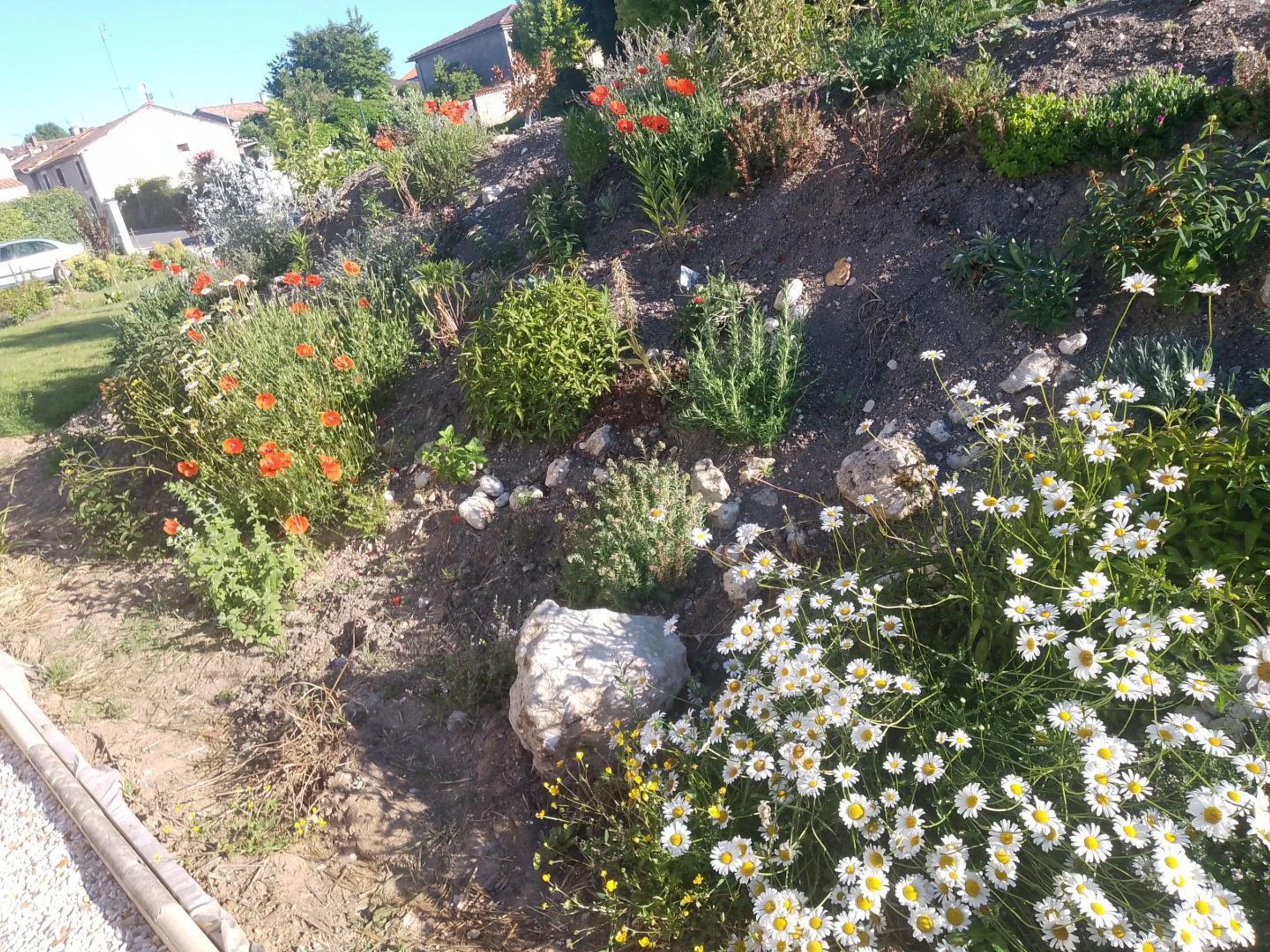 Private, unfenced area of approximately 60 m², with a gravel terrace and greenery, garden furniture. Flowery garden. Private parking on site.