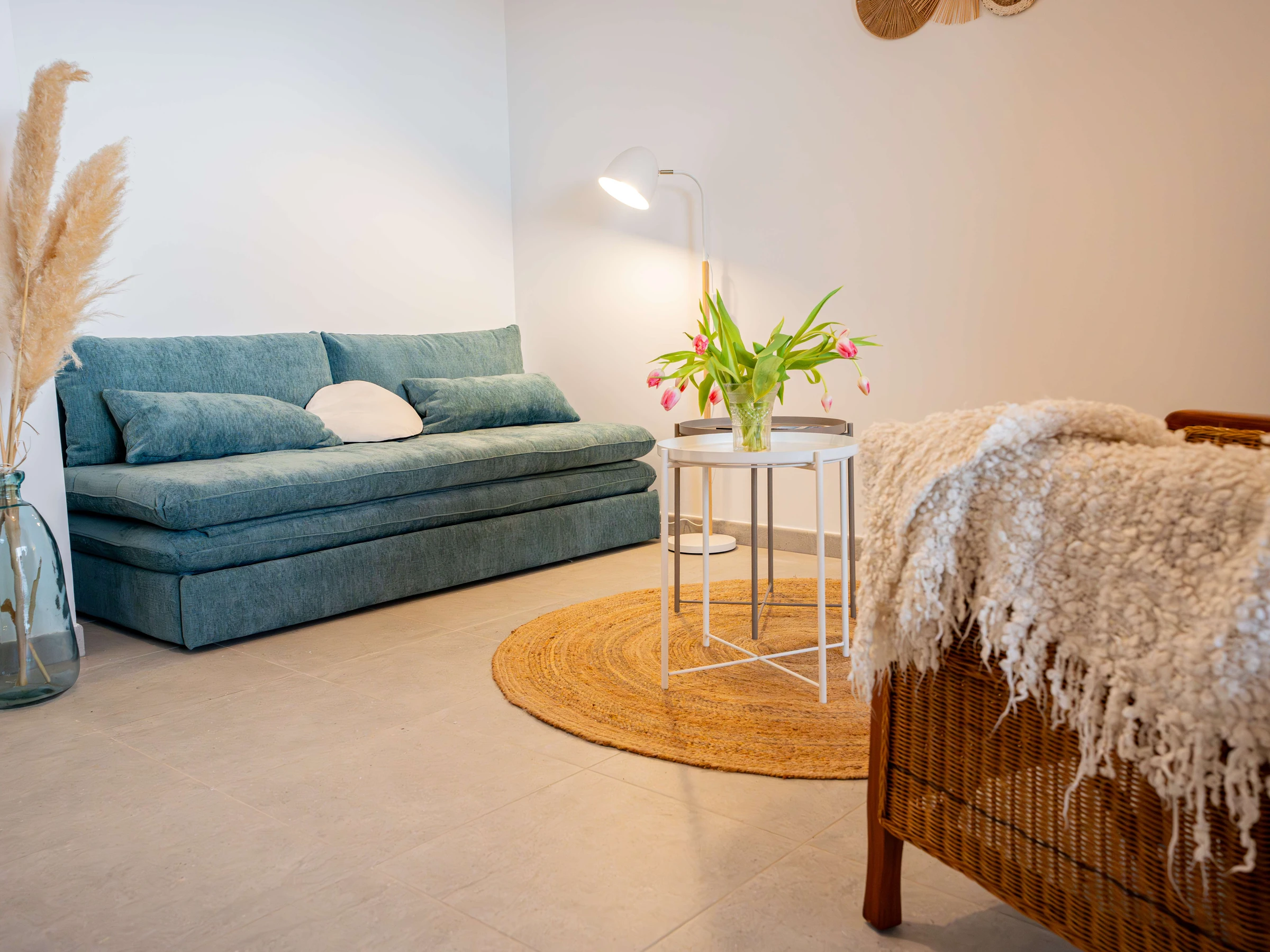 In a new building, this beautiful one-bedroom apartment features a private terrace. This apartment features a beautiful living room opening onto a large private terrace with an open view of the building's gardens, a fully equipped kitchen, a separate bedroom (queen-size bed) with a closet/wardrobe also opening onto the terrace, and a bathroom with shower and toilet.