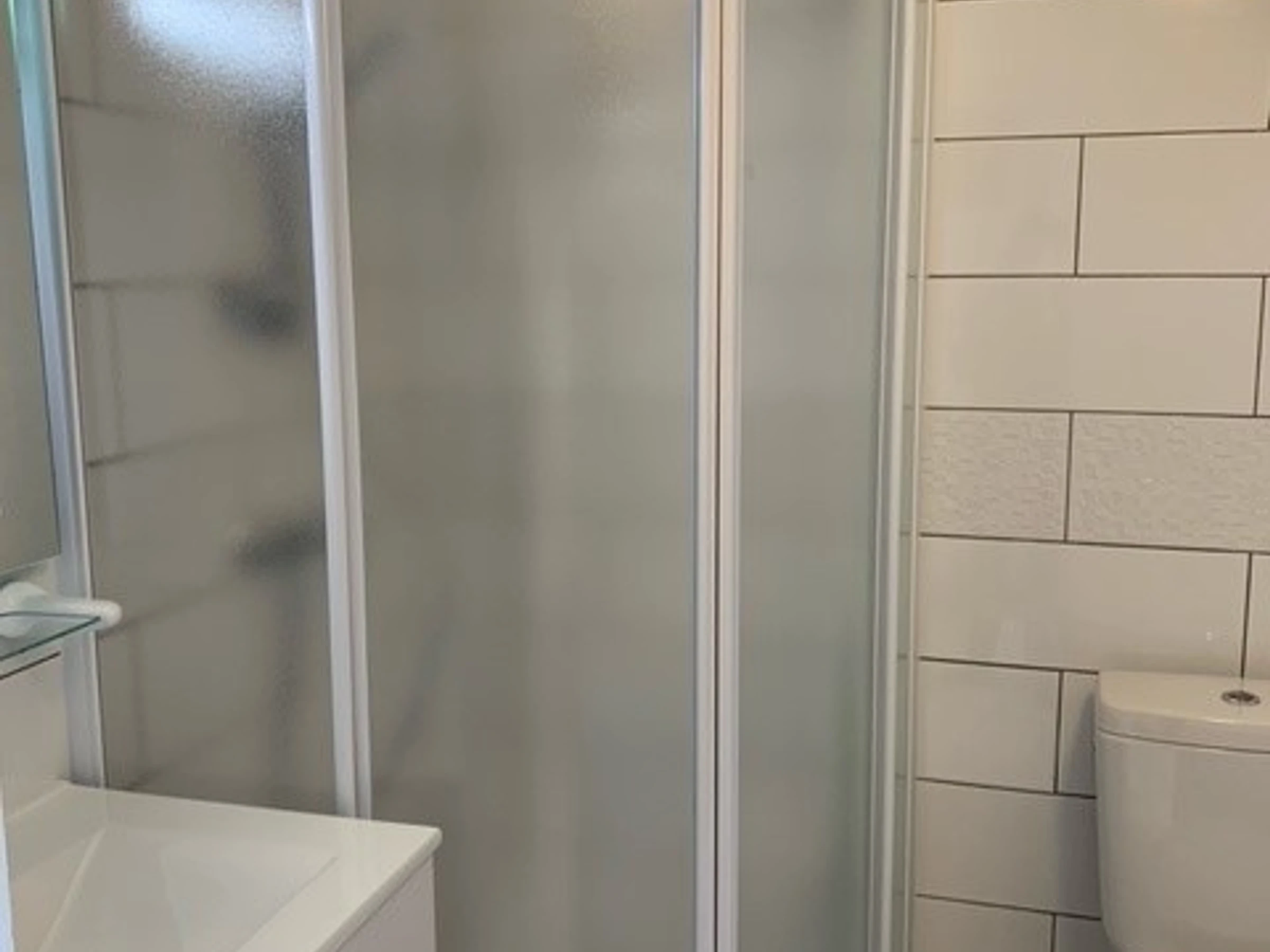 La salle d'eau est avec douche, toilettes et machine à laver.