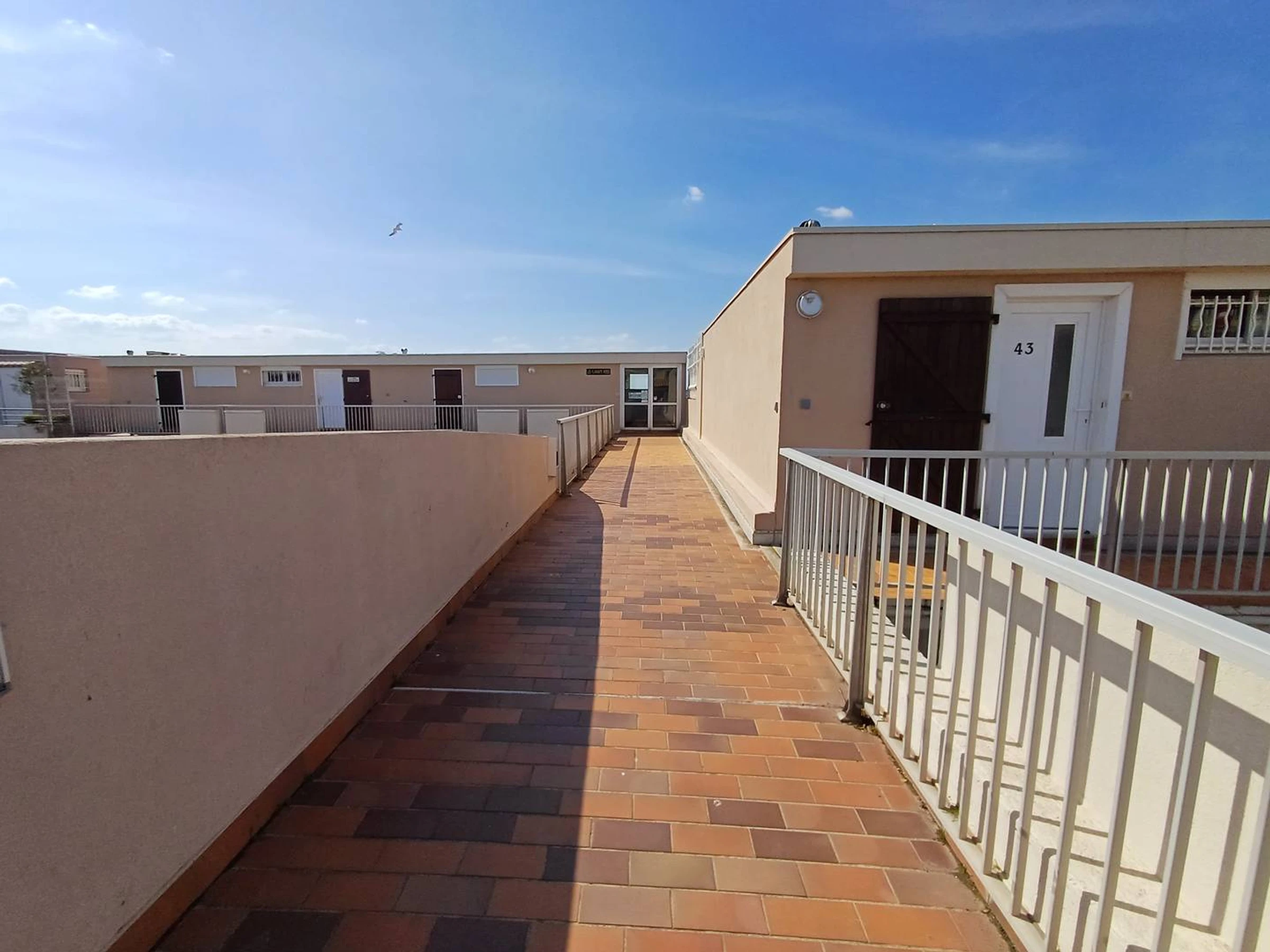 In the Flamants Roses residence, a pleasant 2-star rated studio apartment with a private parking space (No. 41), located on the 1st floor (no elevator), near the Thau Lagoon. This apartment comprises a living area with a sofa bed, a fully equipped kitchenette, a sleeping area with a double bed (140 cm) and a wardrobe, a shower room with toilet, and a loggia. Amenities include: refrigerator/freezer, ceramic hob and extractor hood, mini-oven, microwave, coffee maker, toaster, kettle, blender, iron and ironing board, washing machine, and air conditioning. Sleeps 2. Electricity consumption is extra and will be charged according to the meter reading (at the rate in effect on the day of arrival). This is a non-smoking apartment and is not wheelchair accessible. Pets are not allowed. Orientation: East.