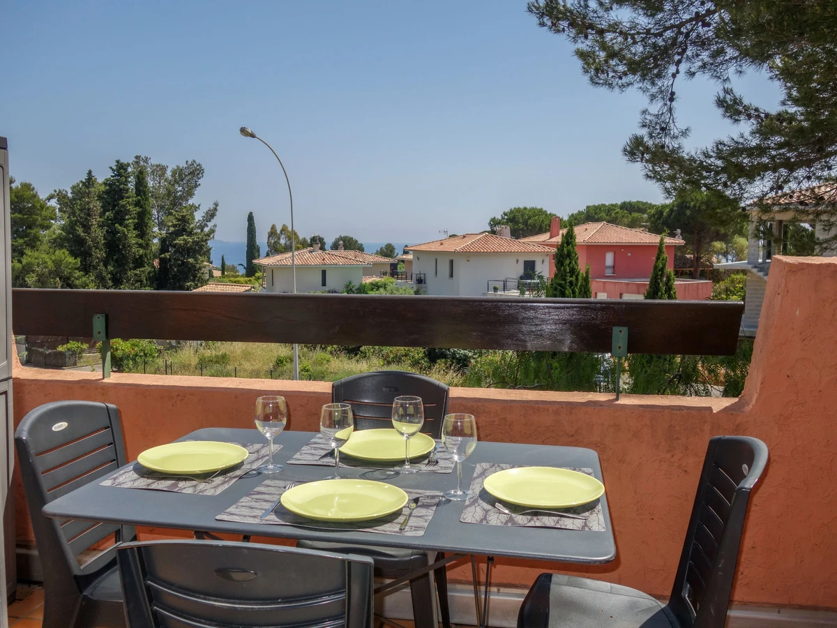 1-room apartment 35 m2 on 2 levels on 1st floor. Partly with sloping ceilings, modern furnishings: living/dining room with TV (flat screen), air conditioning. Exit to the terrace. Small sleeping alcove with sliding door with 1 x 2 bunk beds (90 cm, length 190 cm). Kitchenette (dishwasher, 4 ceramic glass hob hotplates, toaster, kettle, electric coffee machine, combination microwave). Shower/WC. Electric heating. Upper floor: (steep stair) open gallery with sloping ceilings, ceiling height 75 - 140 cm with rooflight with 2 beds (90 cm, length 190 cm). Terrace 6 m2, south facing position. Terrace furniture. View of the sea. Facilities: washing machine. Internet (WiFi, free). Reserved parking space n 7. Please note: TV only FR. Smoke alarm.
