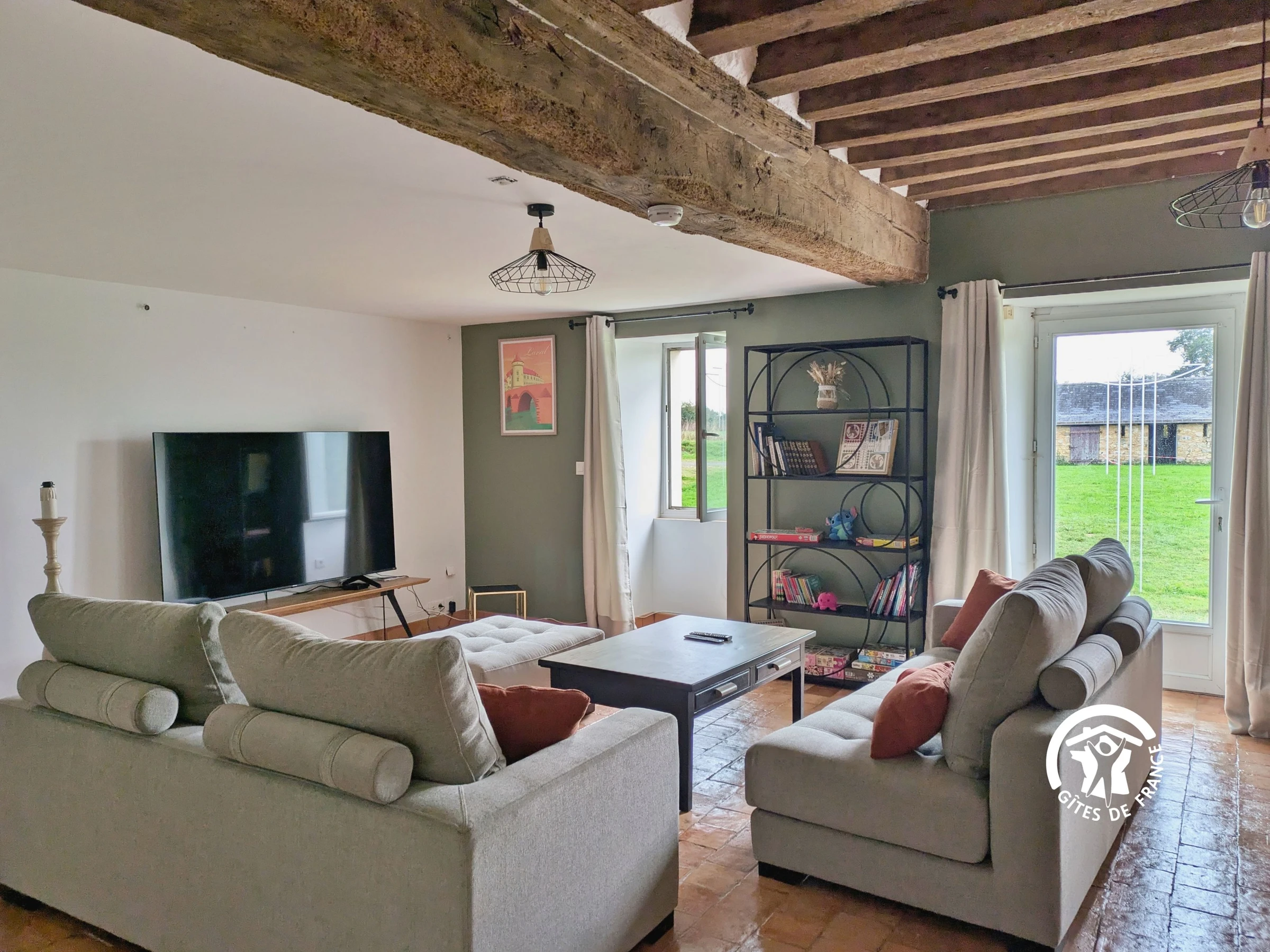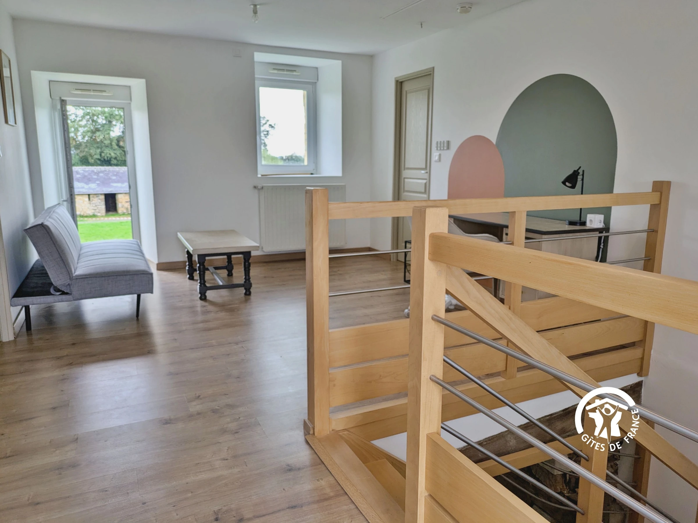 Large, comfortable family home in South Mayenne with 5 bedrooms and spacious, bright living areas. 1,000m² of land with a terrace and lawn for dining and games (ping-pong, table football, rackets, pétanque, etc.). Self-supporting swimming pool (7.3m x 3.66m, height 1.3m) open from June to September. Views of the surrounding countryside. The owners' farm is nearby.