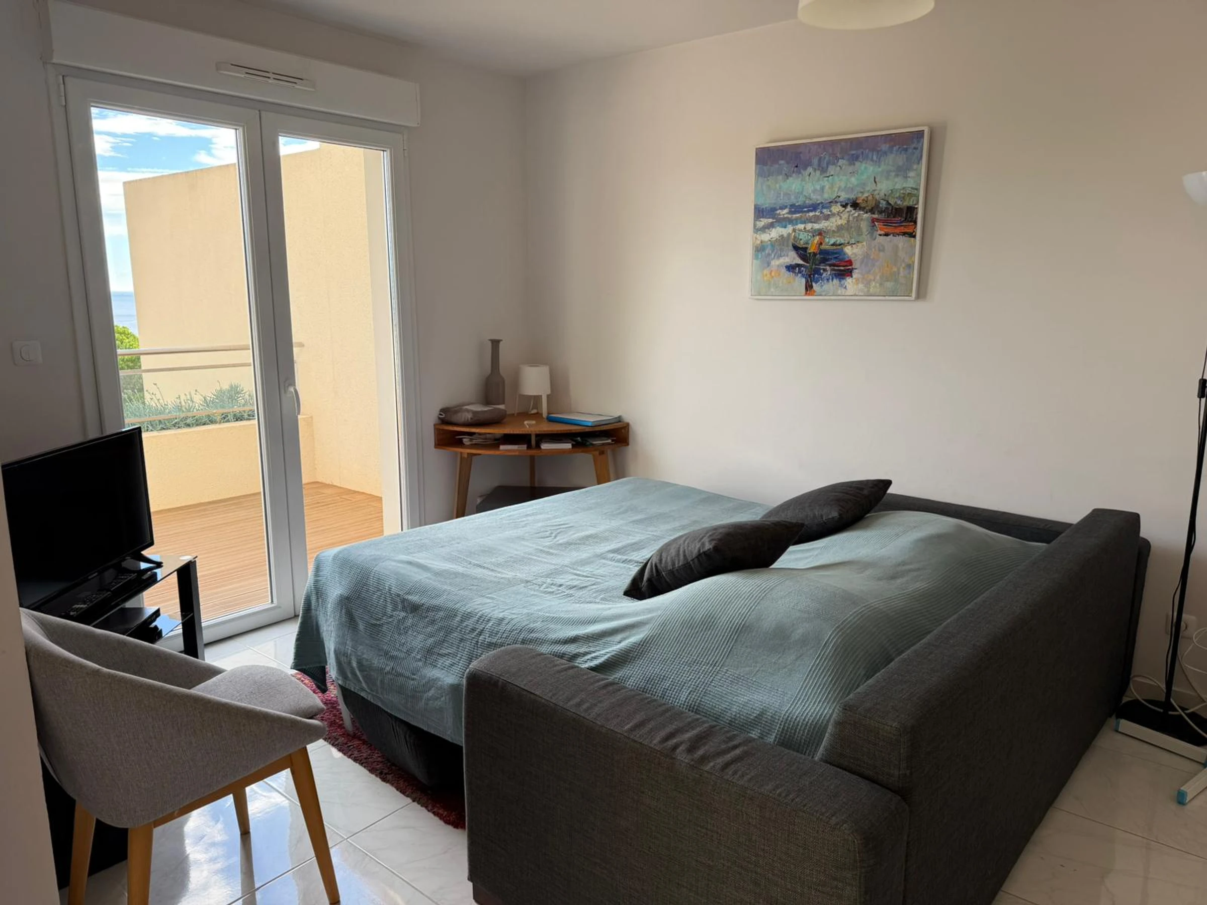 Apartment located at the entrance of Banyuls offering a view of the Elmes beach which is a 2-minute walk away.