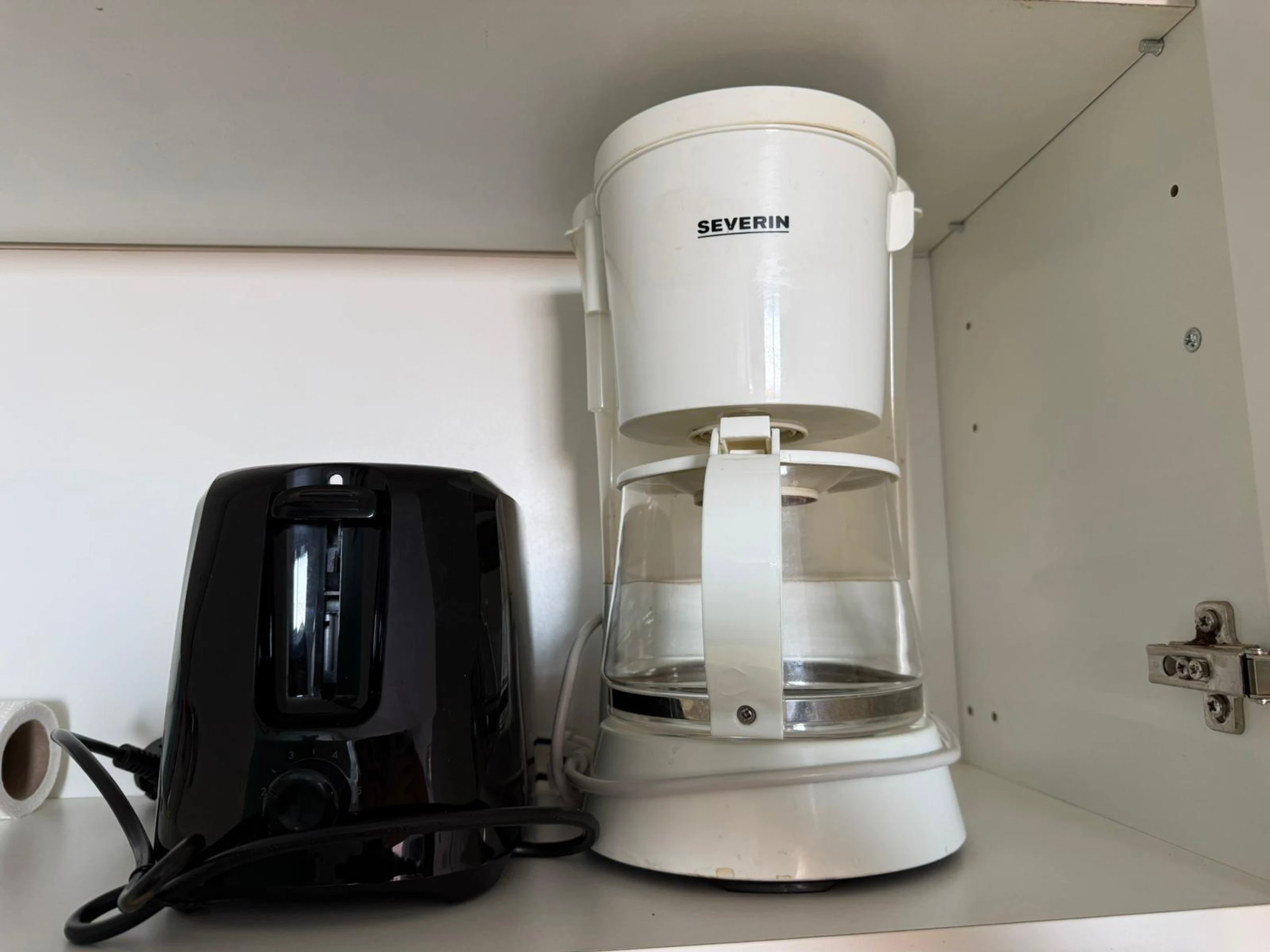 Equipped for two people, it comprises a living area, a kitchenette (including a filter coffee maker), and a bathroom with a toilet.