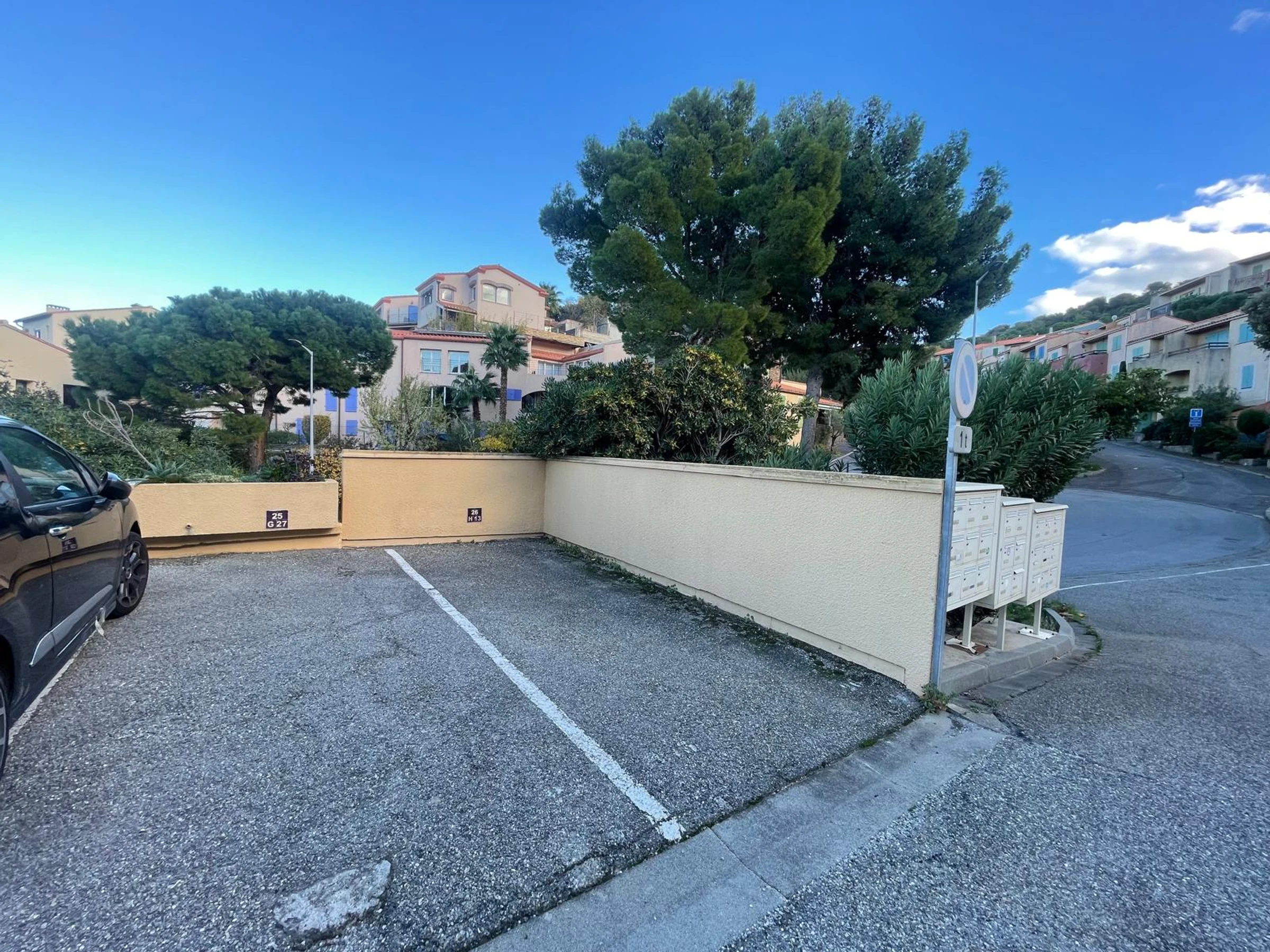 The studio includes a private parking space.