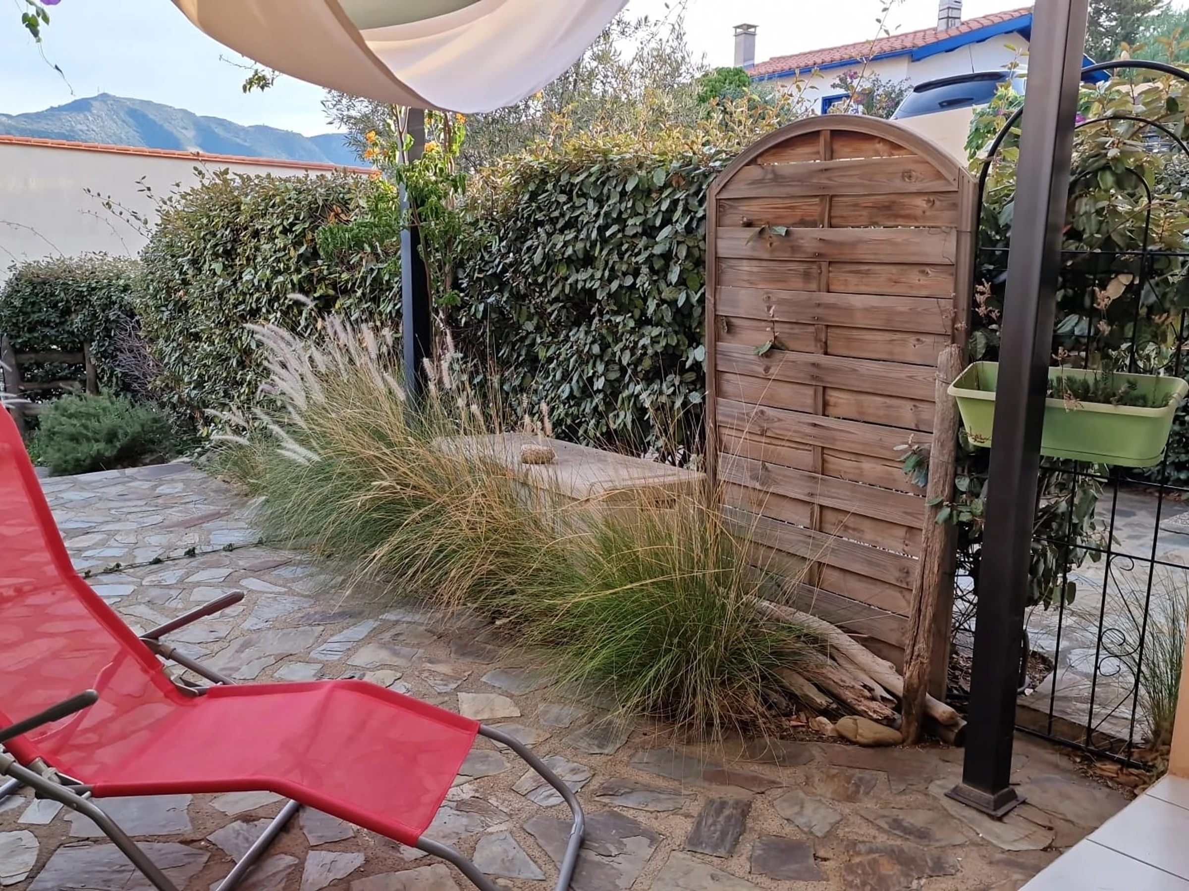 Discover this charming garden-level apartment in the town of Banyuls-sur-Mer, located in a quiet residence just 300 meters from Elmes Beach.
