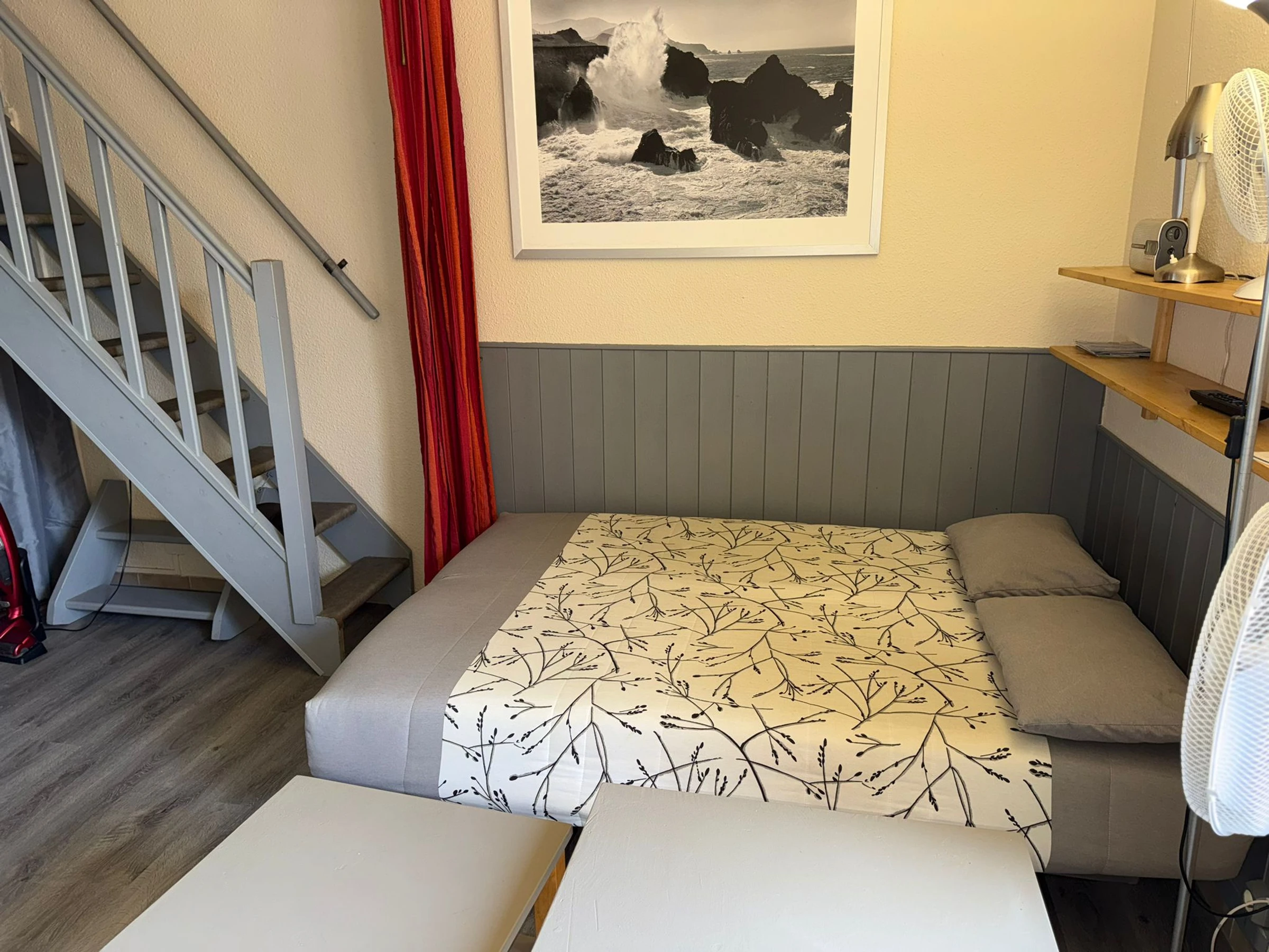 Located just steps from the Troc Pinel cove and the Thalassotherapy center, this studio is the ideal place for a relaxing and invigorating stay. Ideal for 4 people, it comprises a living room, a fully equipped kitchenette (filter coffee maker), a mezzanine sleeping area, a shower room, and a separate toilet.