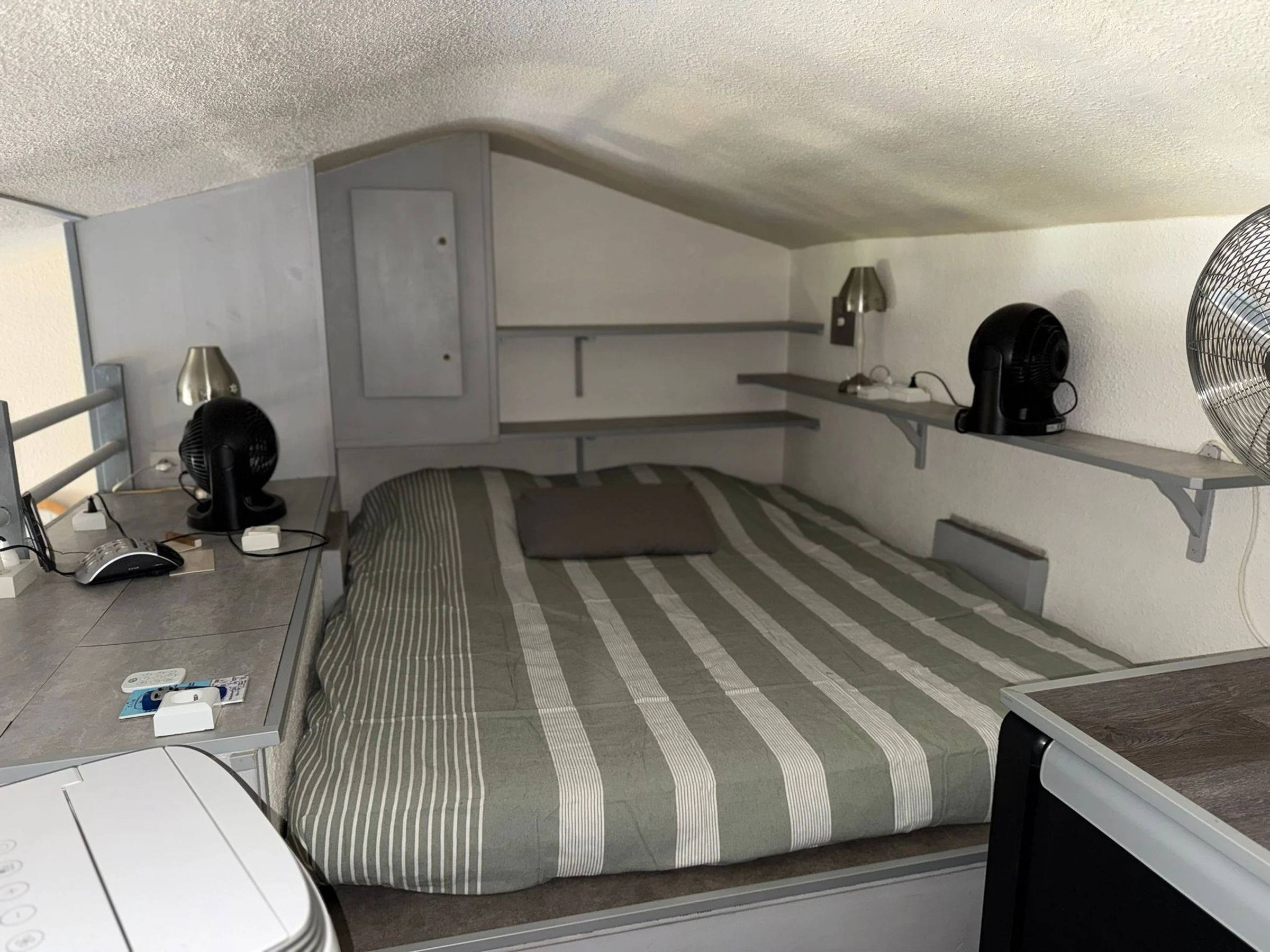 Mezzanine sleeping area: one bed 160 x 200 cm