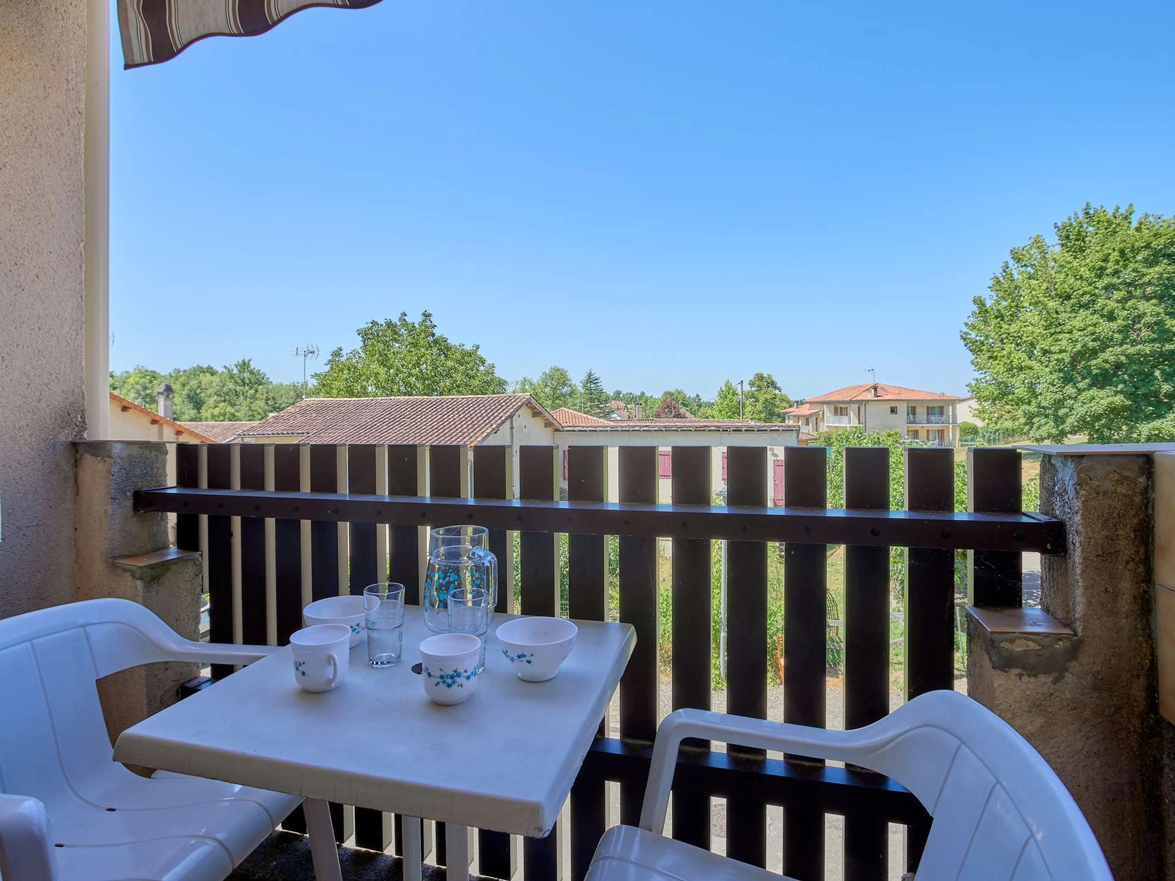 West-facing with a balcony furnished with outdoor seating, accessible from the living area.