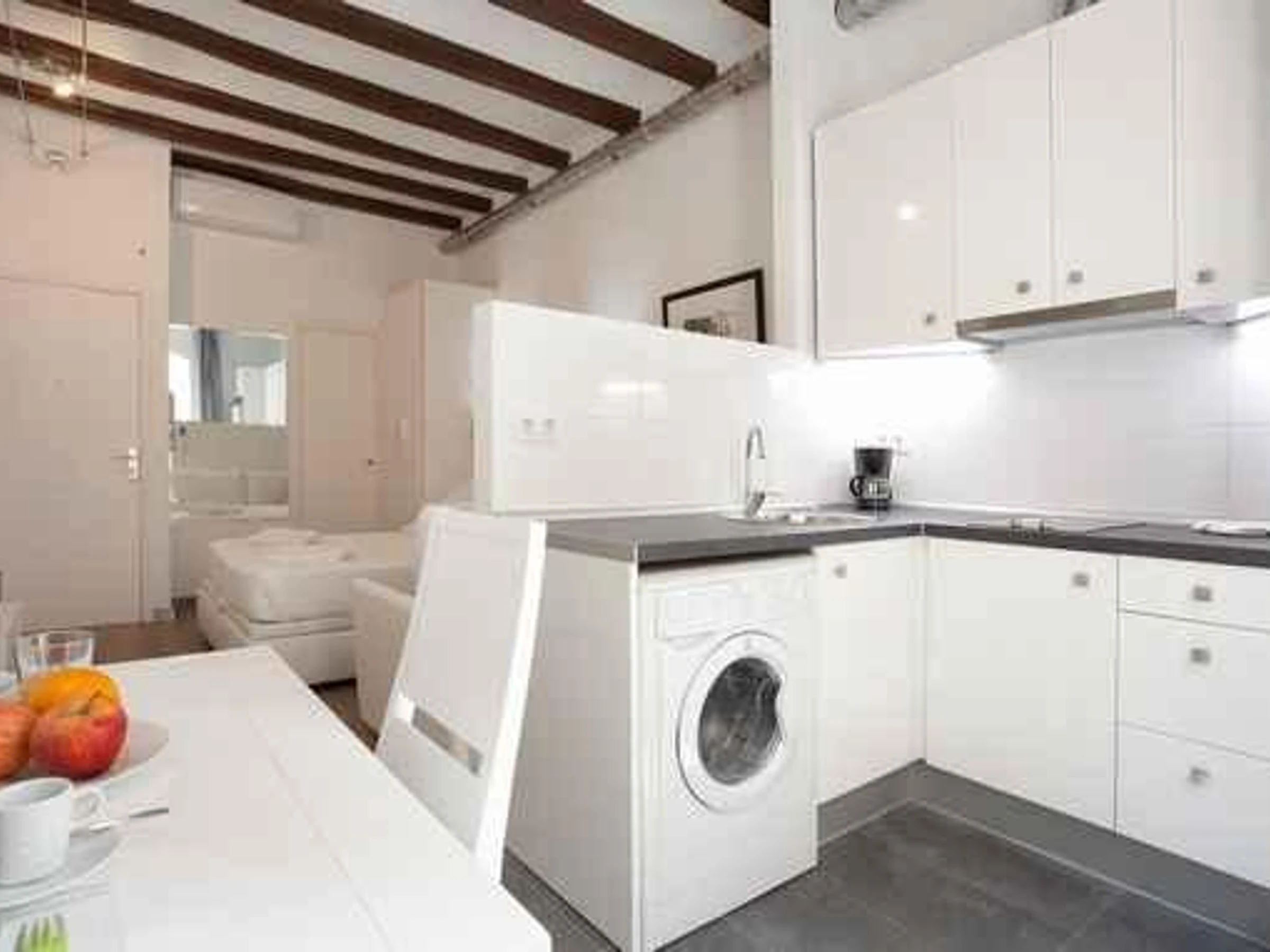 Cozy 25 m2 loft in the lively Gracia neighborhood. Double bed, equipped kitchen, bathroom with shower, balcony. Second floor without elevator. AACC, WIFI