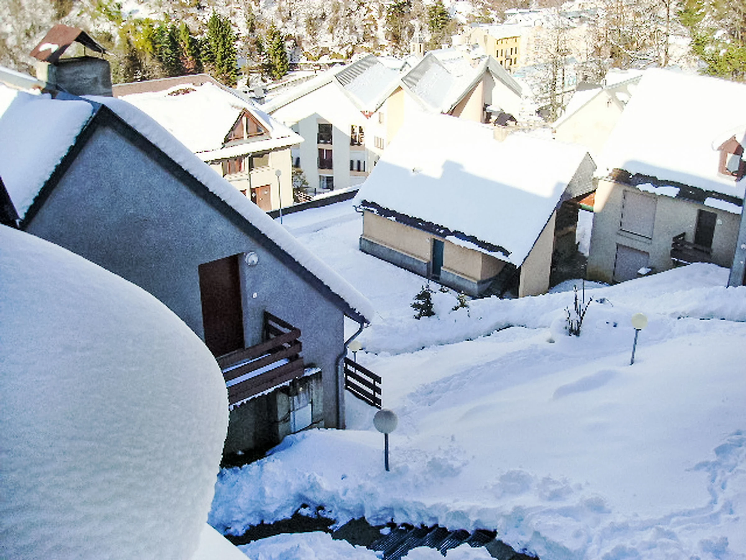 Holiday development "Les Marmottes", built in 1981. Above Barèges, outside the resort, in a quiet position on a slope, in the countryside. In the house: storage room for skis. Motor access (mountain road). In Winter: please take snow chains. Stepped path (96 steps) to the house. Roofed, parking. Shop, grocery, restaurant, bus stop 500 m. Ski lift 3 km, ski school 500 m. Please note: car recommended. Access to the residence by steps.