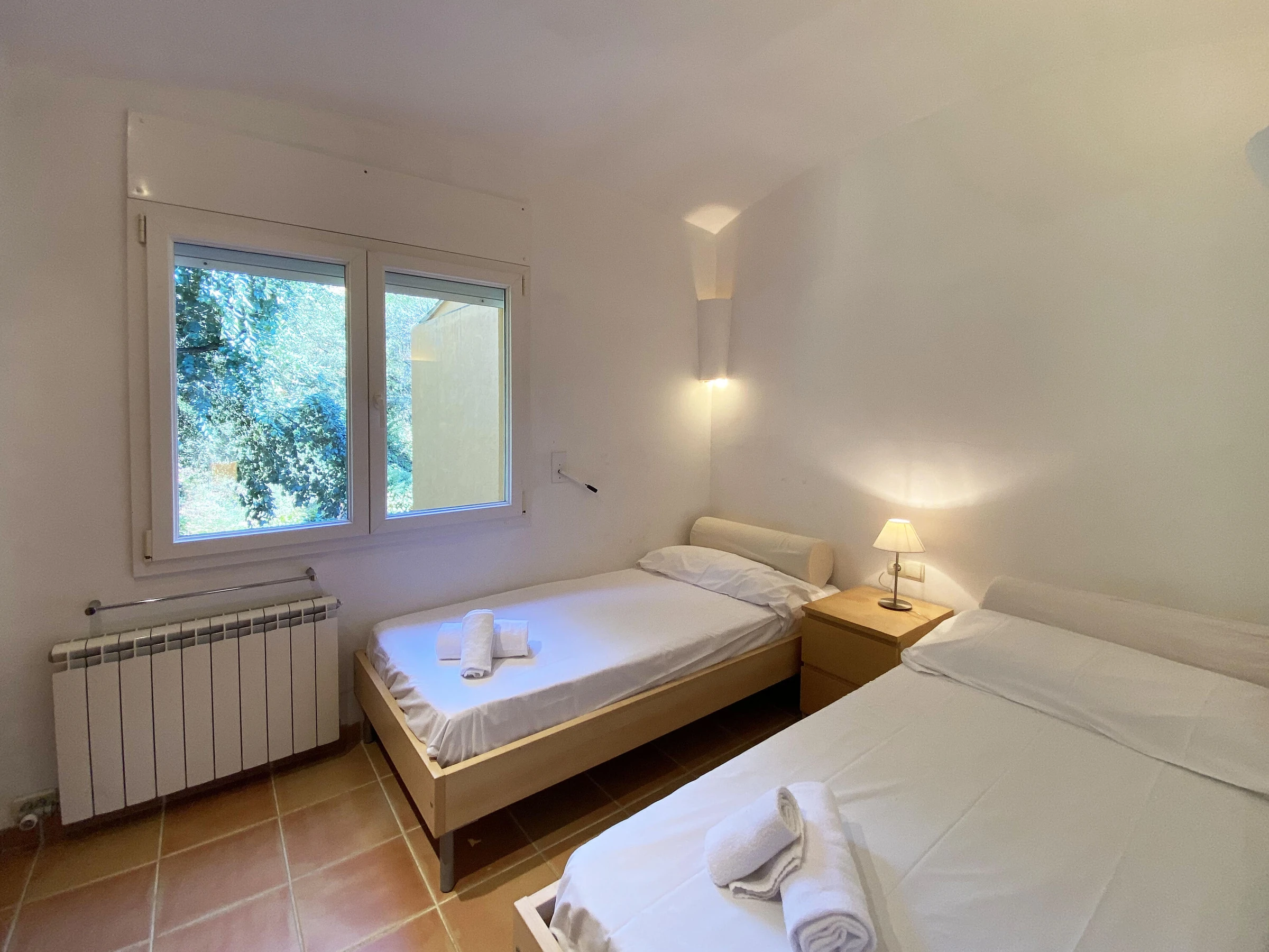 Fantastic semi-detached house with sea views, located in a quiet residential area 2km from the beach of Sa Riera and 1km from the center of Begur. Distributed on three levels, you will find in the ground floor the garage and an indoor double bedroom with shower room. On the main level is the large living dining room leading to the terrace, toilet and kitchen with access to the porch. Upstairs you will find a shower room, two double bedrooms and the master suite with bathroom and balcony access. Large communal area with garden and pool.