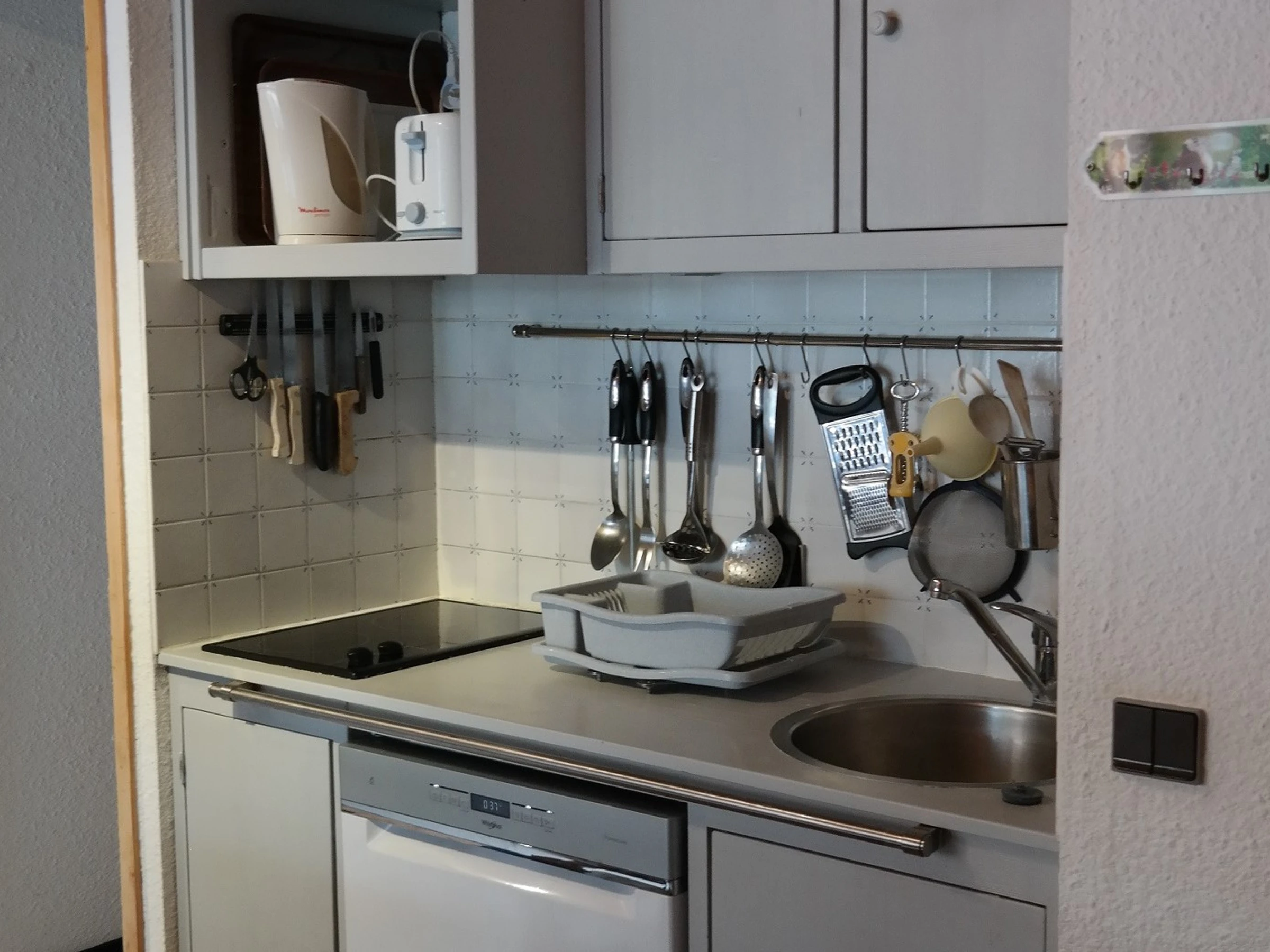 Opened Kitchen : with 1 ceramic hob 2 fires, an oven, a dishwasher, a washing machine, a trumble dryer and a freezer