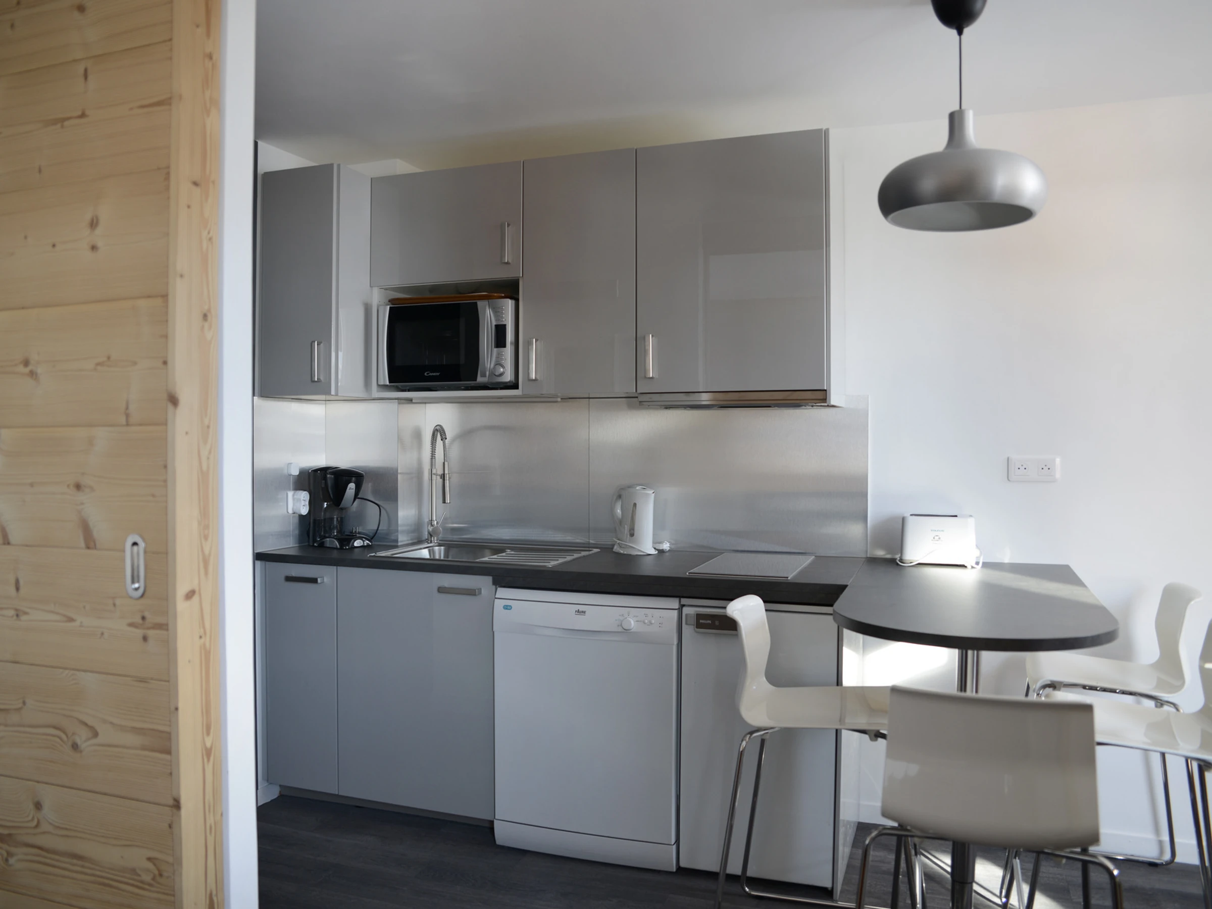 Open plan Kitchen : with a microwave, a dishwasher, a fridge and 3 induction cooker