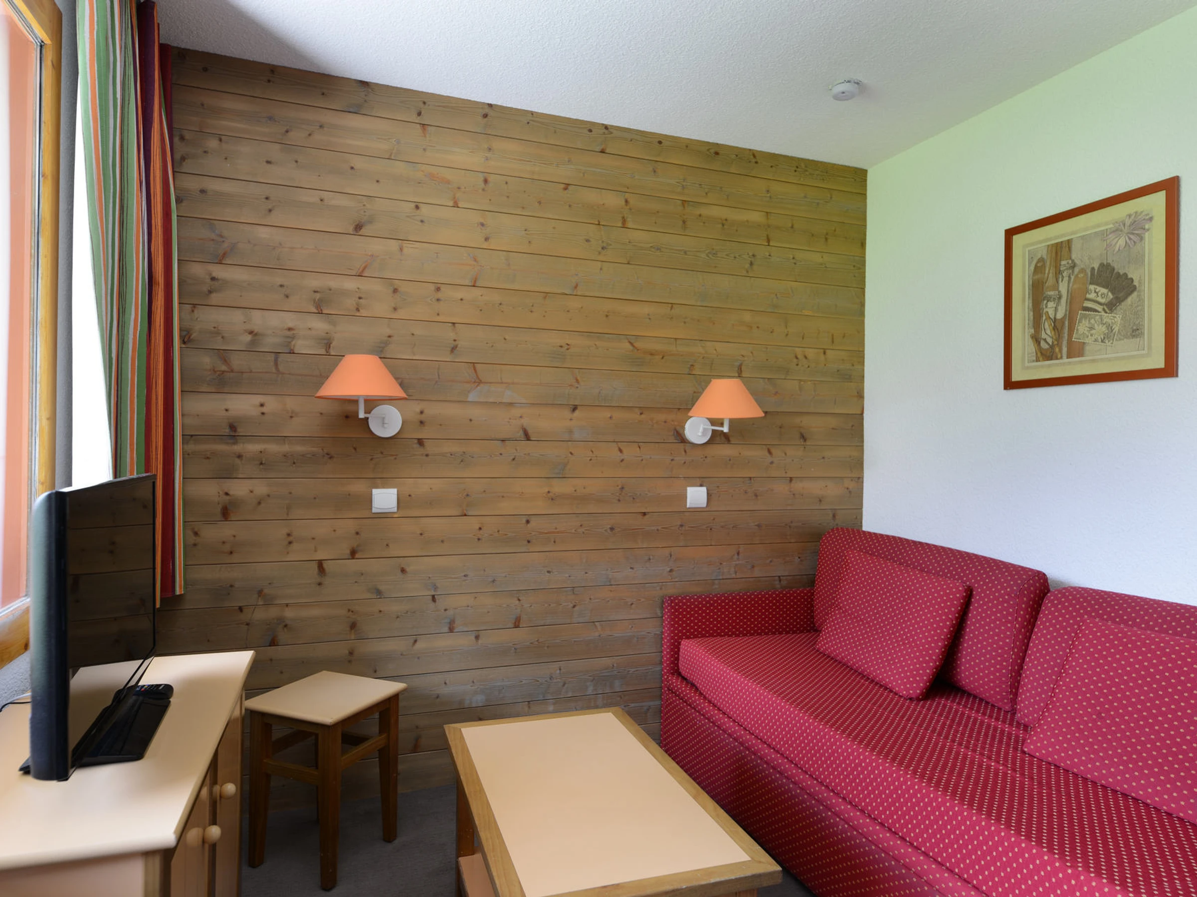 Divisible living-room : 1 single bed + 1 trundle bed + 1 sofa bed for one and 2 bunk beds, 1 flat screen TV