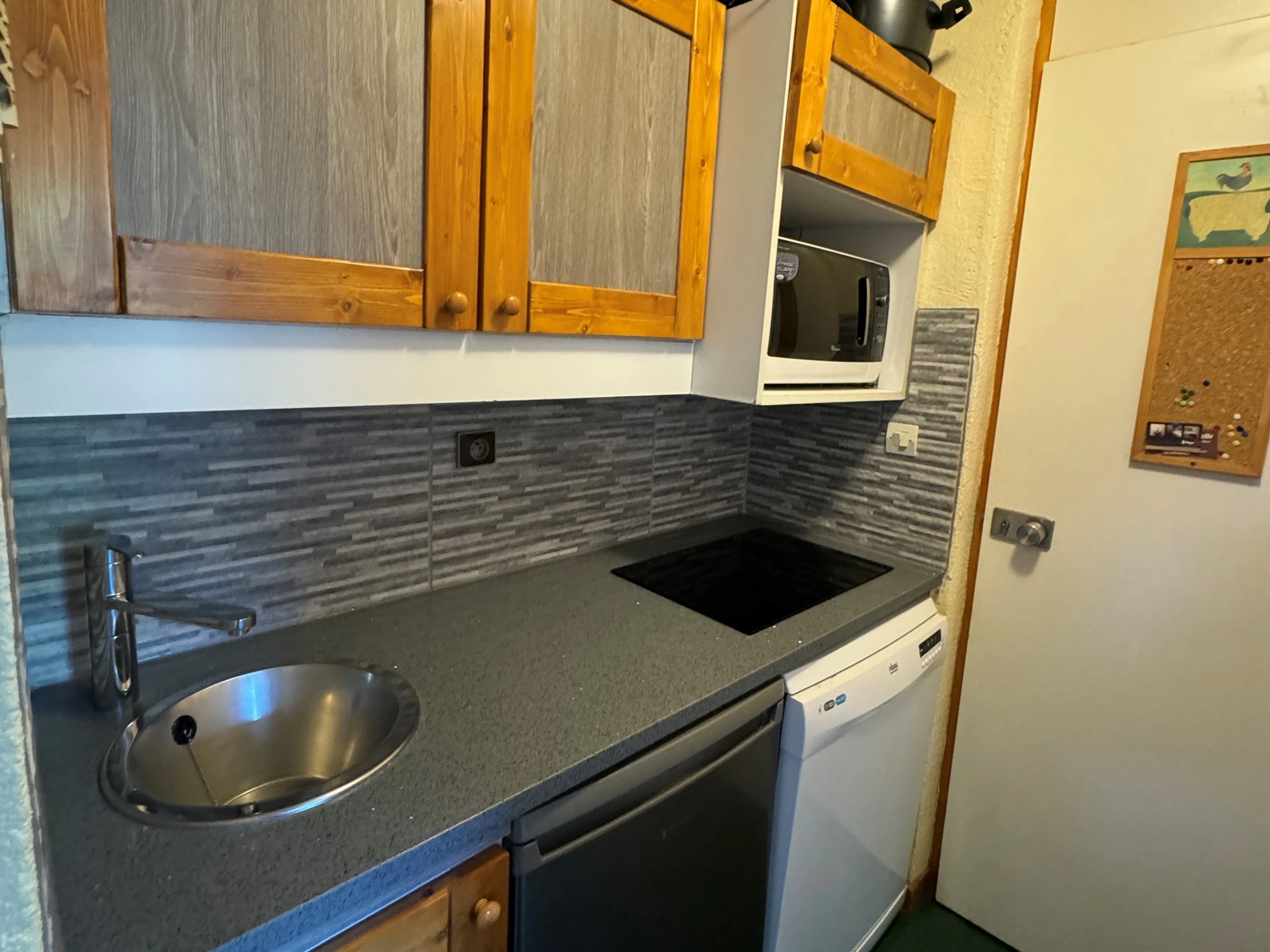 Kitchen : separate with a microwave, 2 electric hobs and a dishwasher