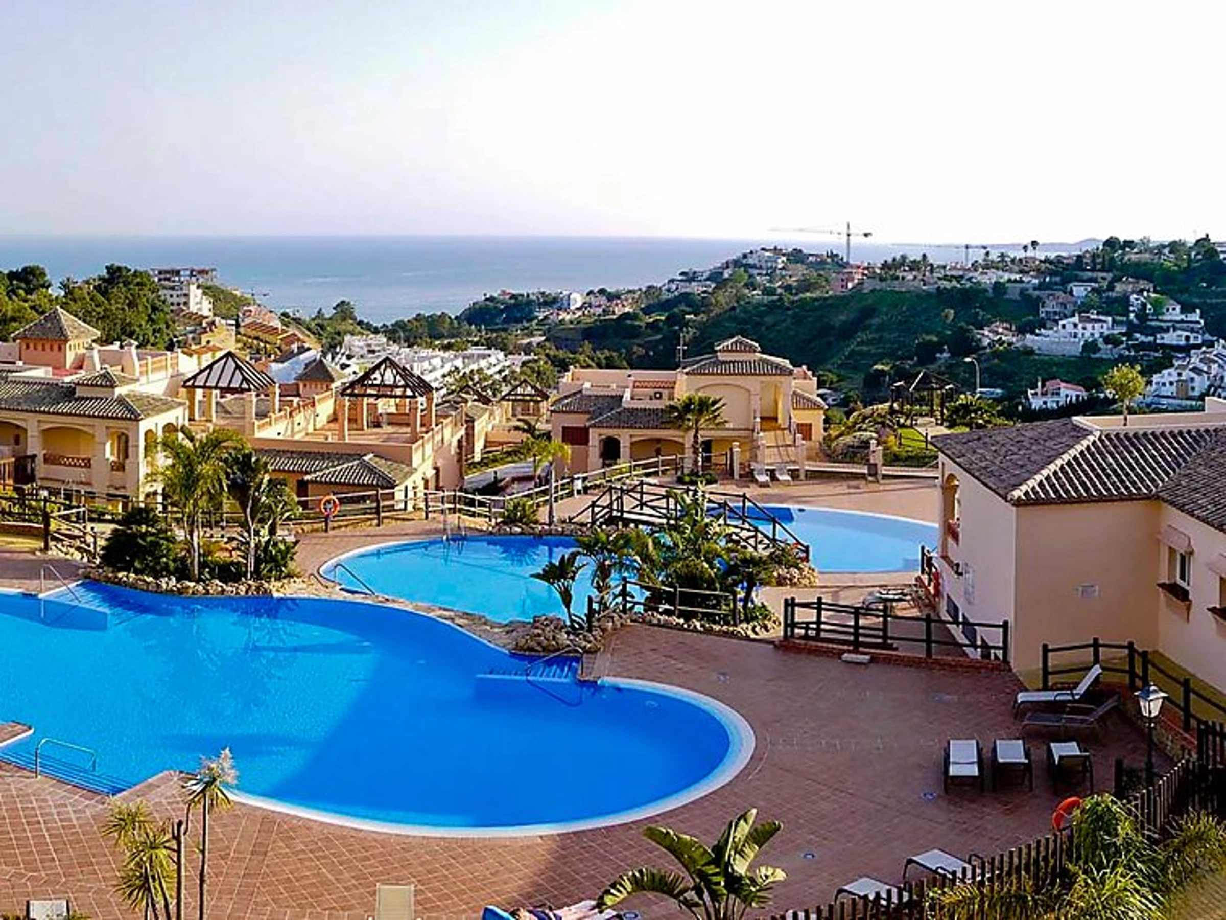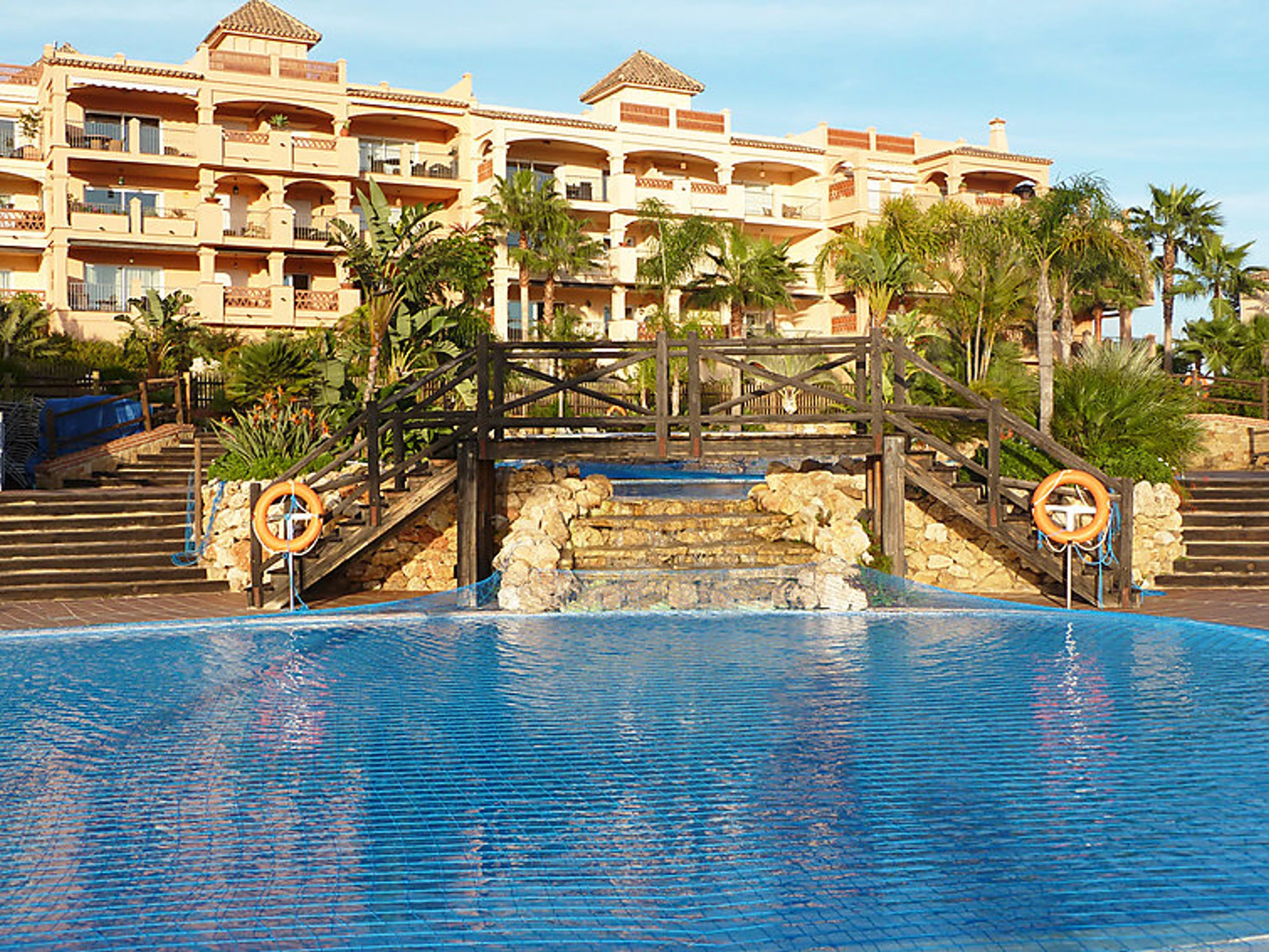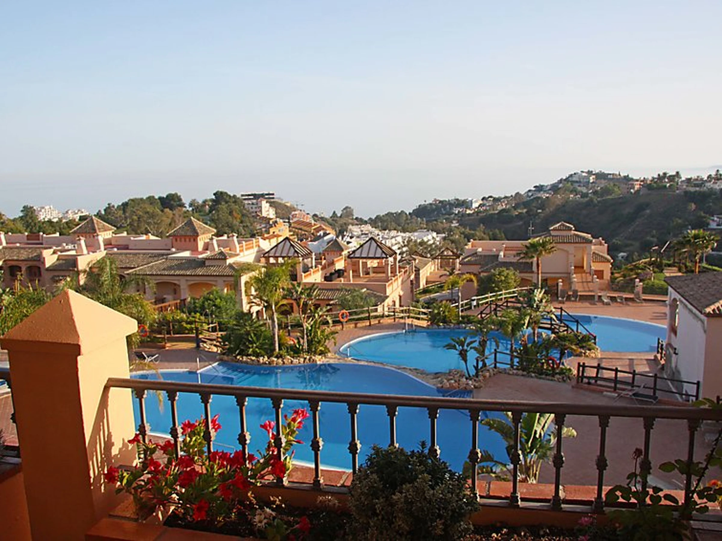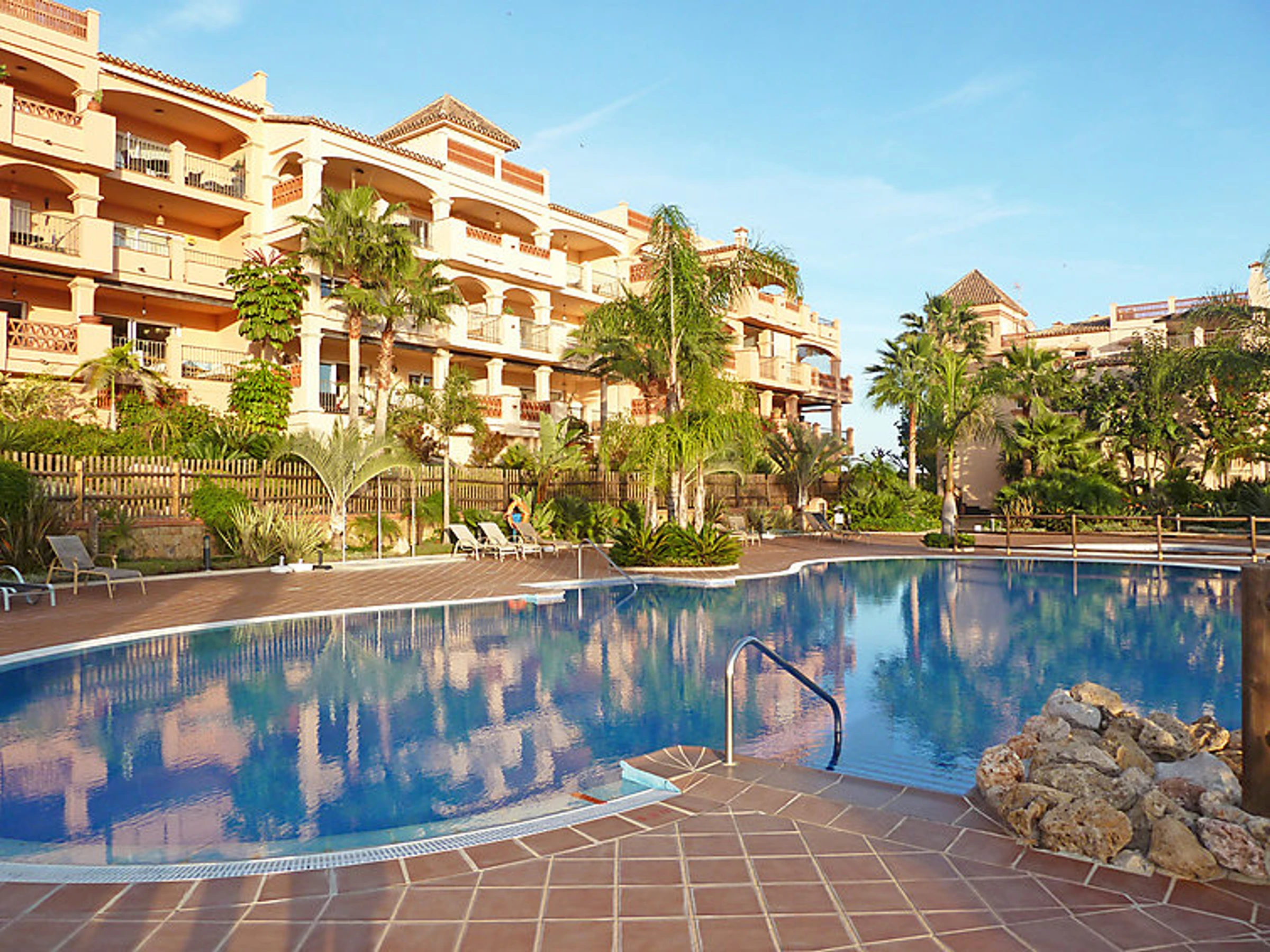 Comfortable, luxurious apartment block "Apartamentos Mediterra". In the resort Benalmadena Costa, in a quiet, sunny position residential area (villas), 5 km from the beach. For shared use: garden with lawn, 3 swimming pools angular [hidden].). Shower/WC in the pool area, children's pool, garden furniture. In the house: fitness room. Parking at the house. Shop 2 km, supermarket 2 km, restaurant 200 m, bus stop 400 m, sandy beach 5 km. Sports harbour 5 km, golf course, tennis 300 m. Nearby attractions: Puerto Marina, Selwo Marina, Mariposario, Tivoli, Selwo Aventura.