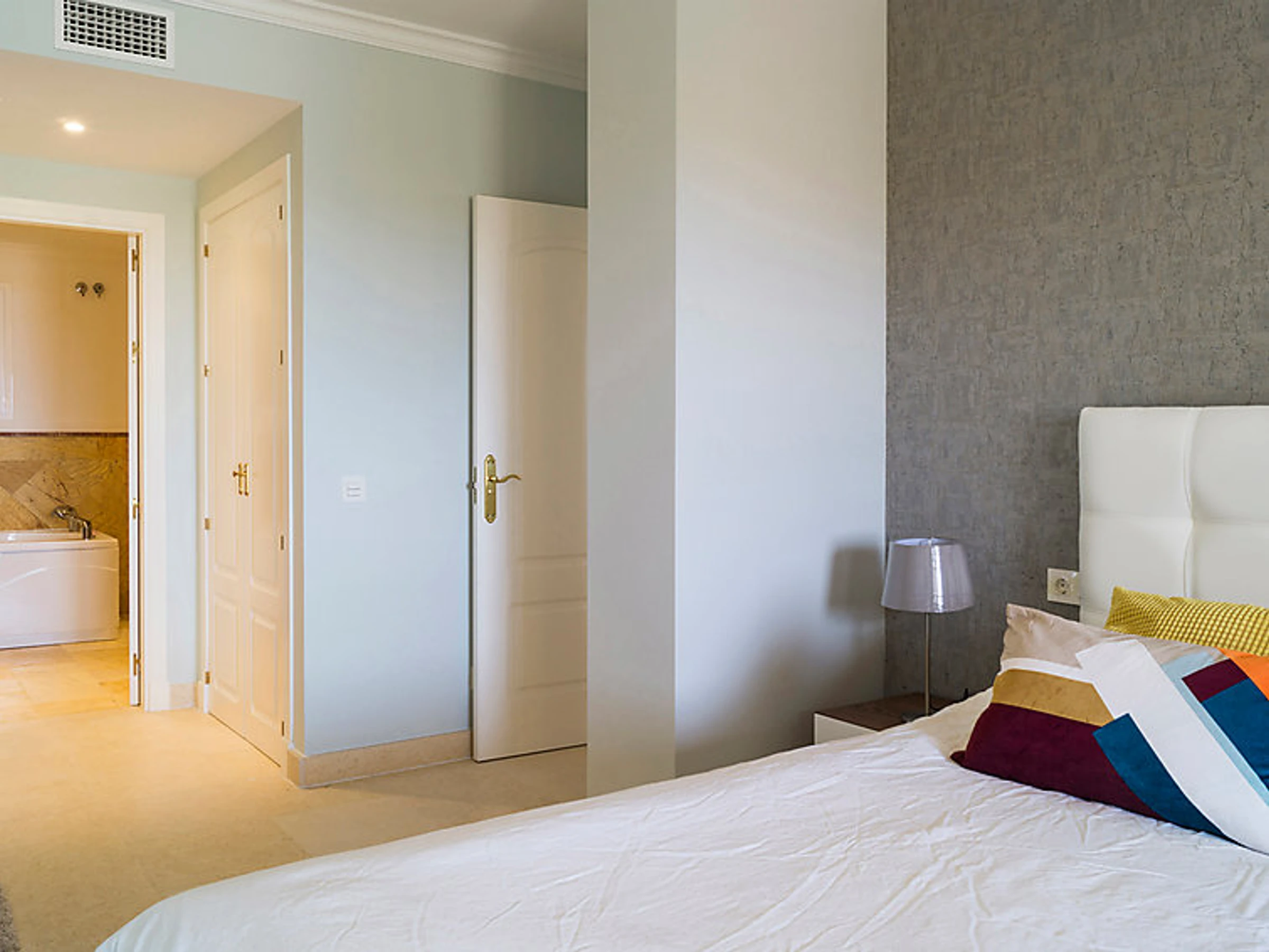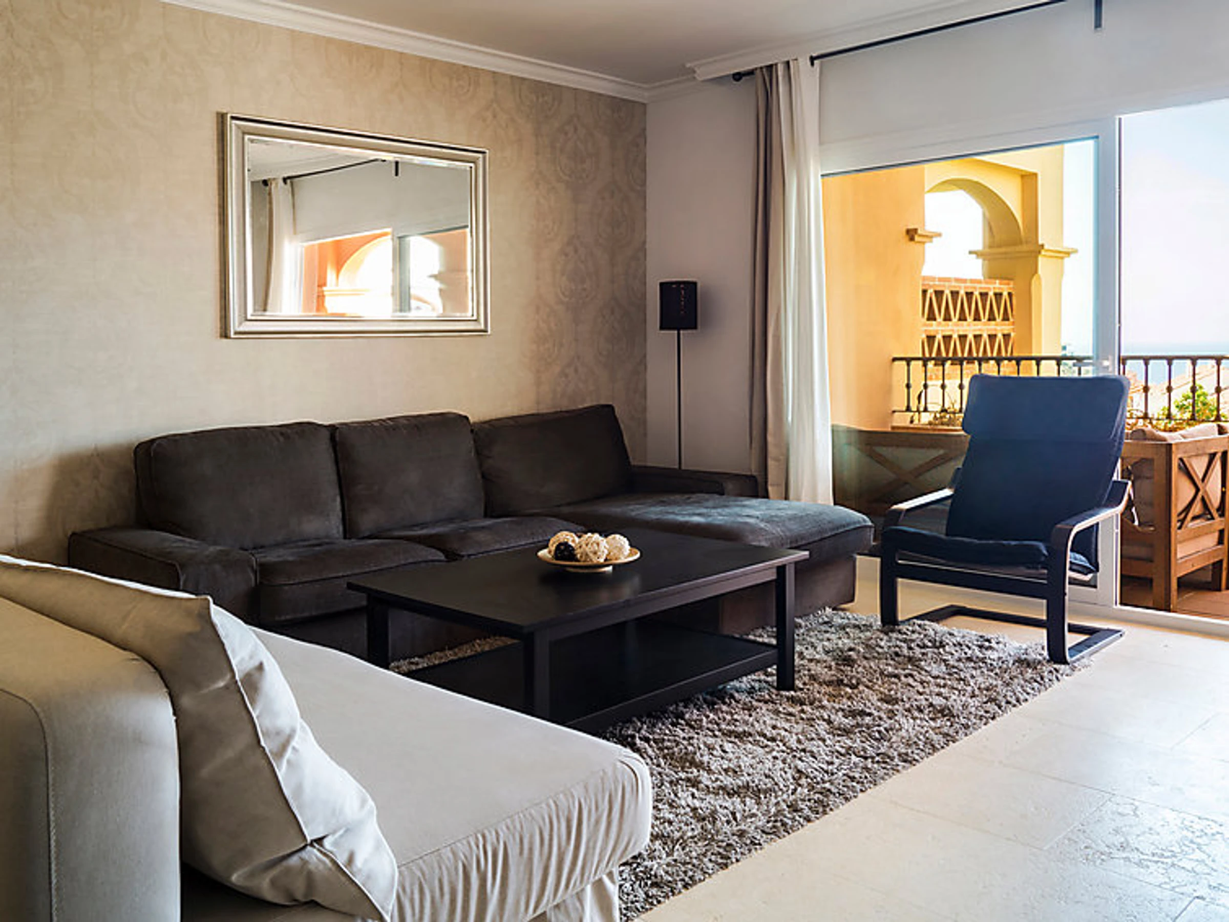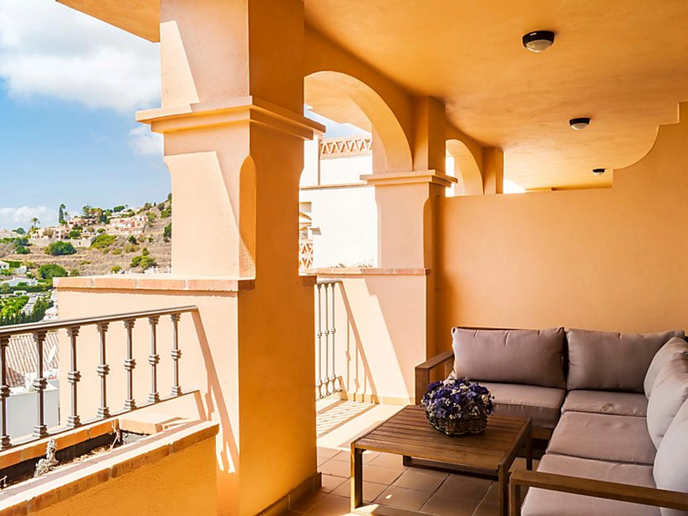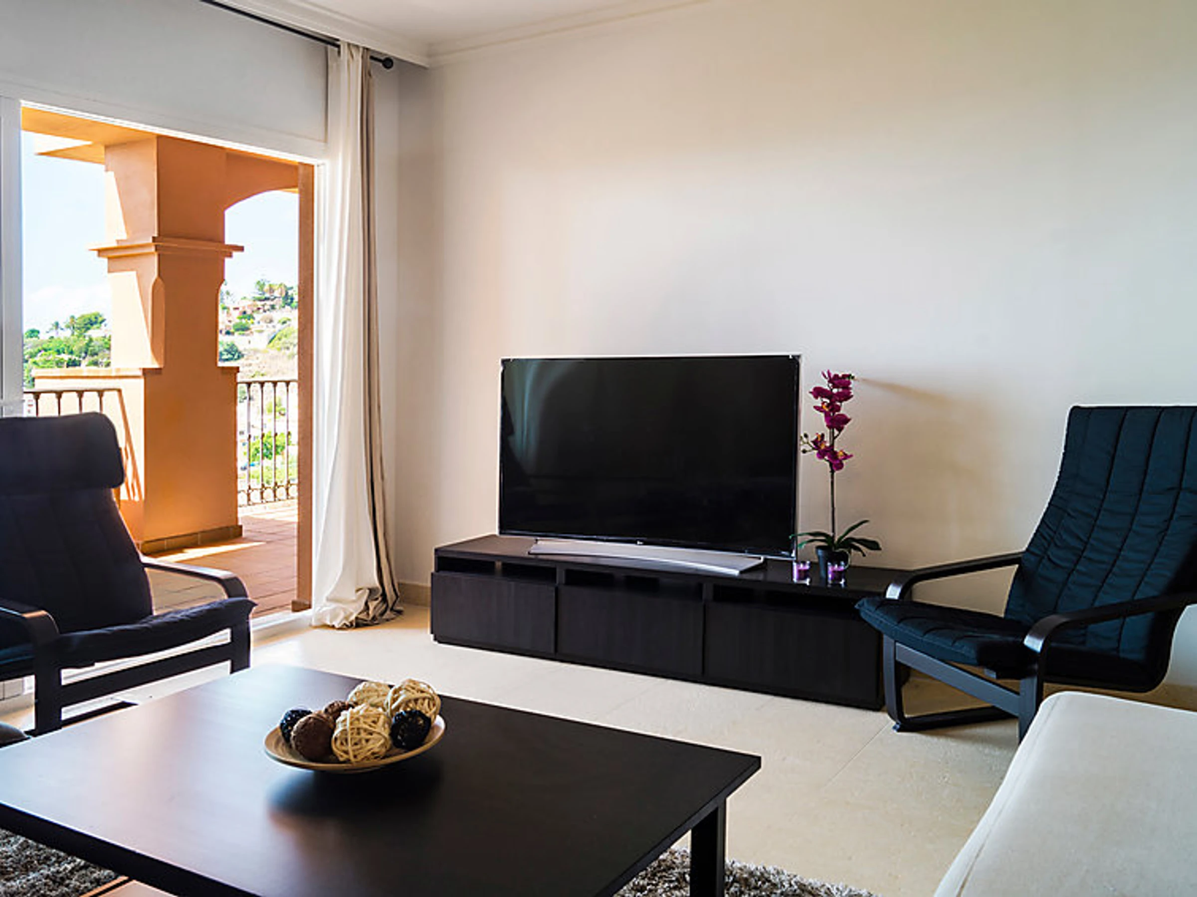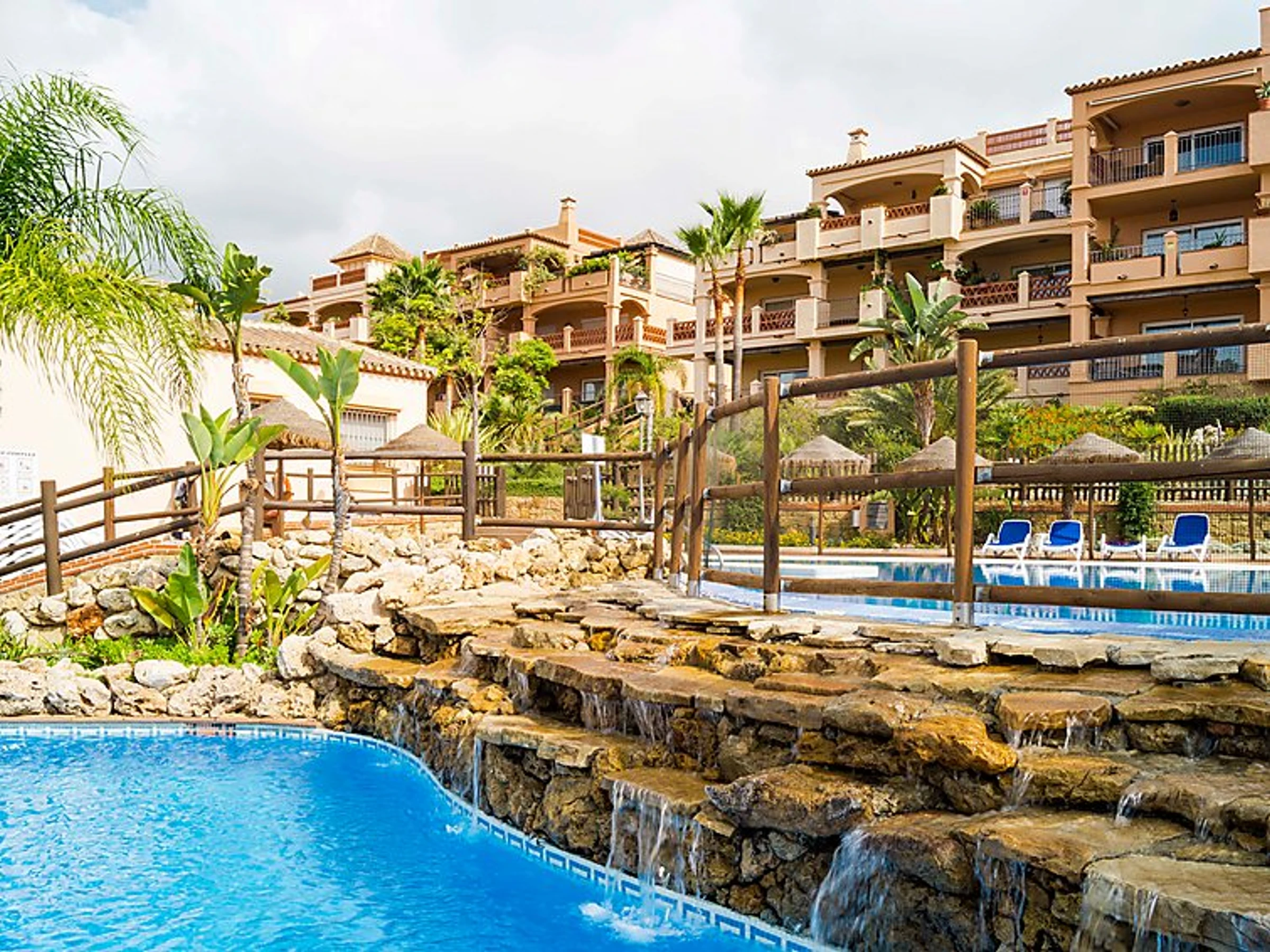 Comfortable, luxurious apartment block "Apartamentos Mediterra". In the resort Benalmadena Costa, in a quiet, sunny position residential area (villas), 5 km from the beach. For shared use: garden with lawn, 3 swimming pools angular [hidden].). Shower/WC in the pool area, children's pool, garden furniture. In the house: fitness room. Parking at the house. Shop 2 km, supermarket 2 km, restaurant 200 m, bus stop 400 m, sandy beach 5 km. Sports harbour 5 km, golf course, tennis 300 m. Nearby attractions: Puerto Marina, Selwo Marina, Mariposario, Tivoli, Selwo Aventura.