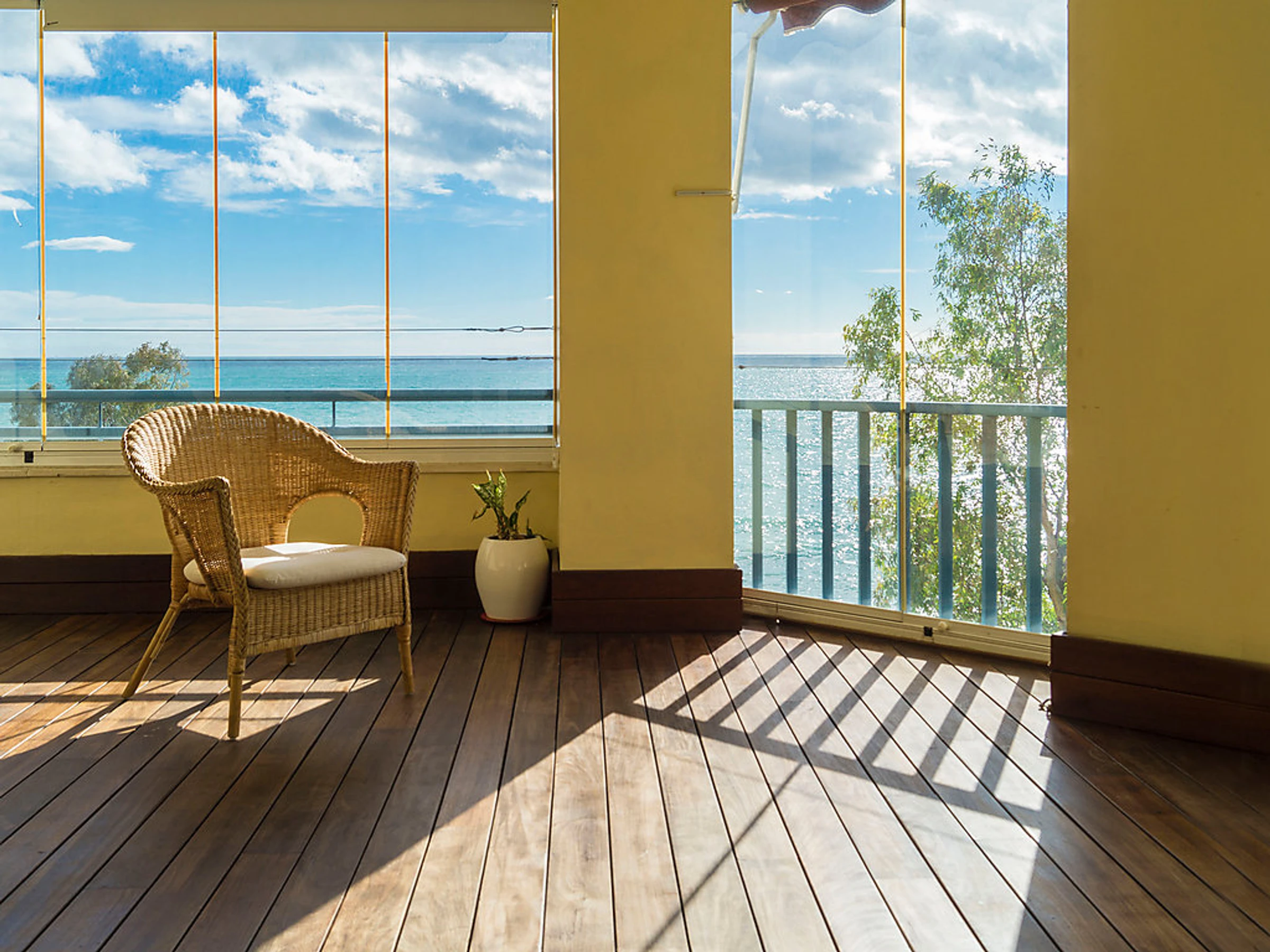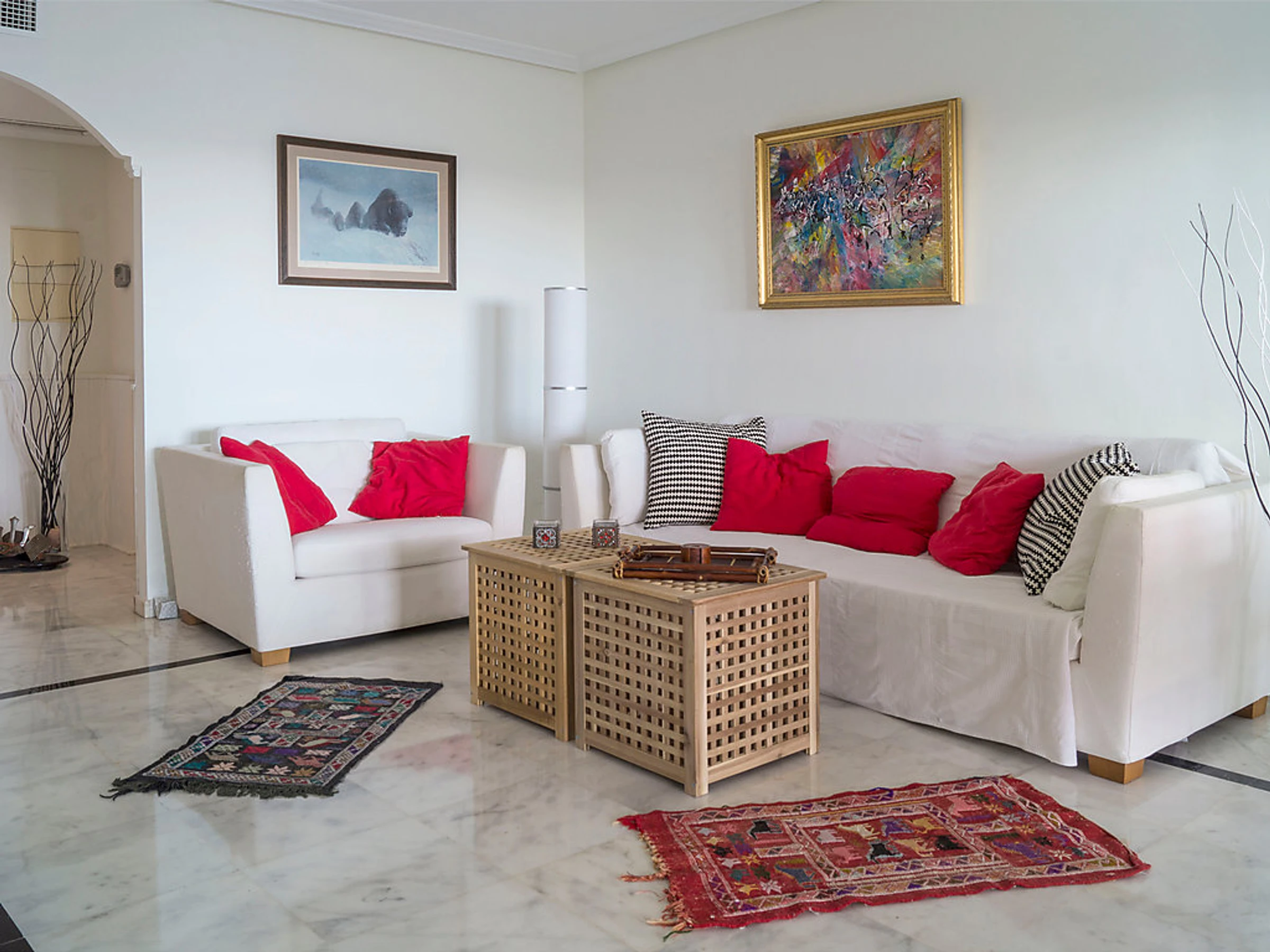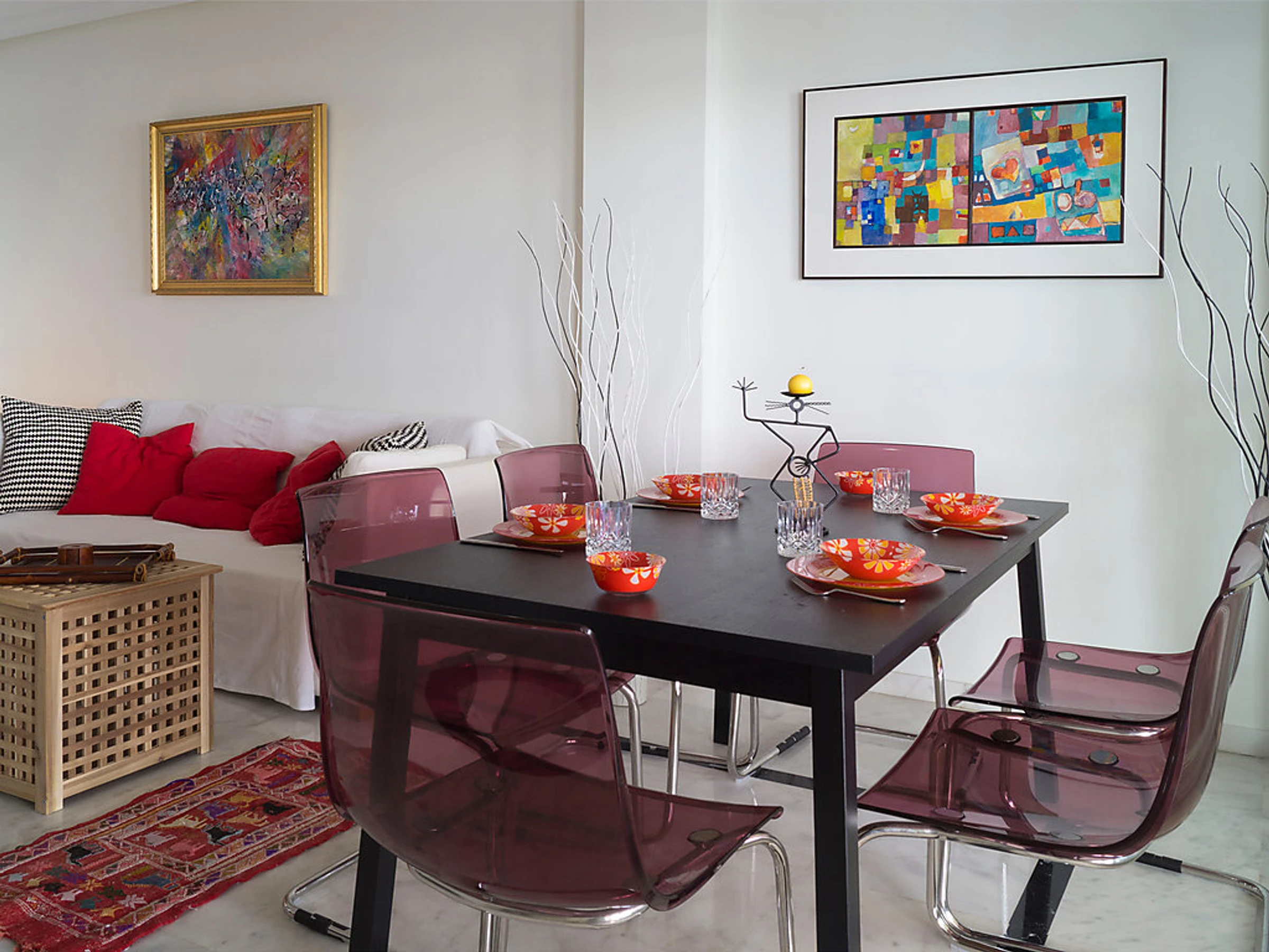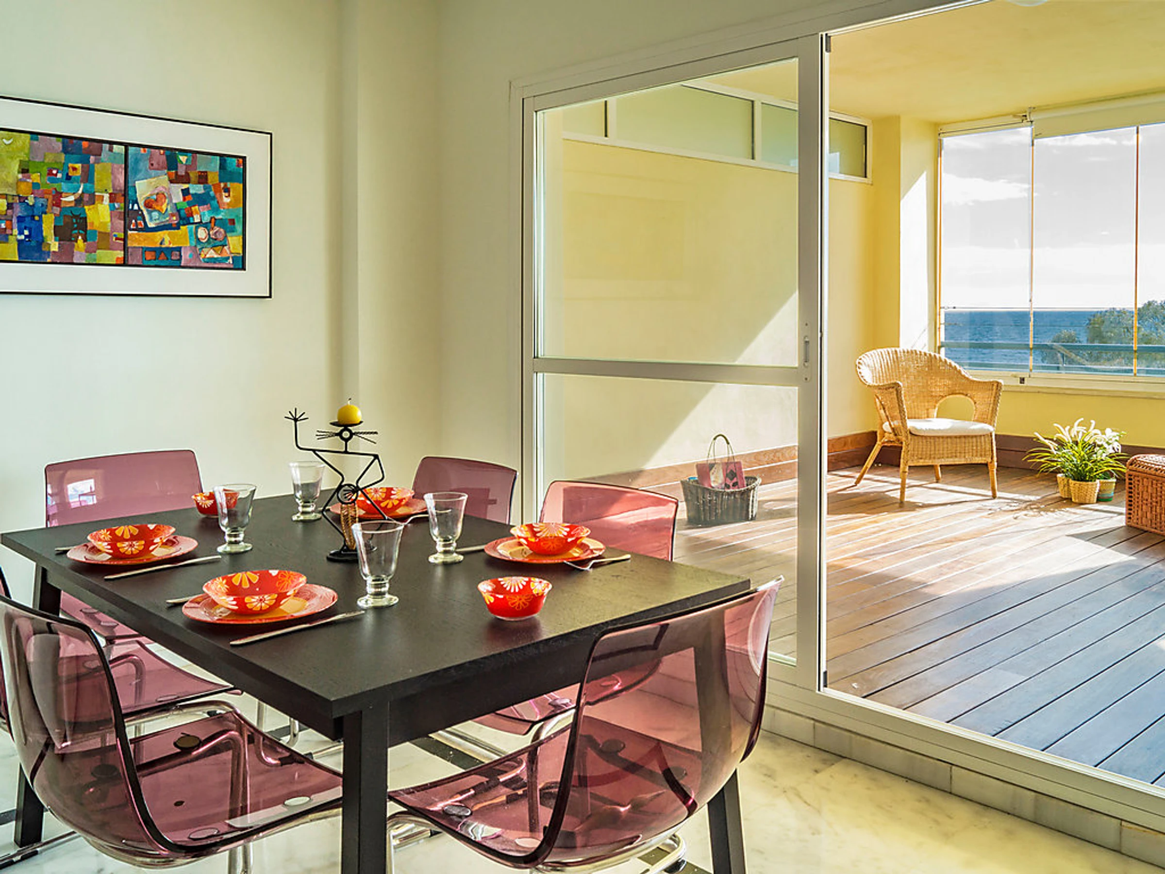 4-room apartment on 1st floor. Object suitable for 4 adults + 2 children. Spacious and bright, comfortable and beautiful furnishings: living/dining room with TV, air conditioning and forced-air heating with 1 french bed and shower/WC. 1 room with 2 beds. 1 room with 2 beds. Kitchen (oven, 4 ceramic glass hob hotplates, microwave). Bath/WC. Large terrace. Marvellous, of the sea and the swimming pool. Facilities: washing machine. Reserved parking space n 2 (roofed). VFT/MA08868 Included: Final cleaning, Laundry (initial supply of bed linen and towels)