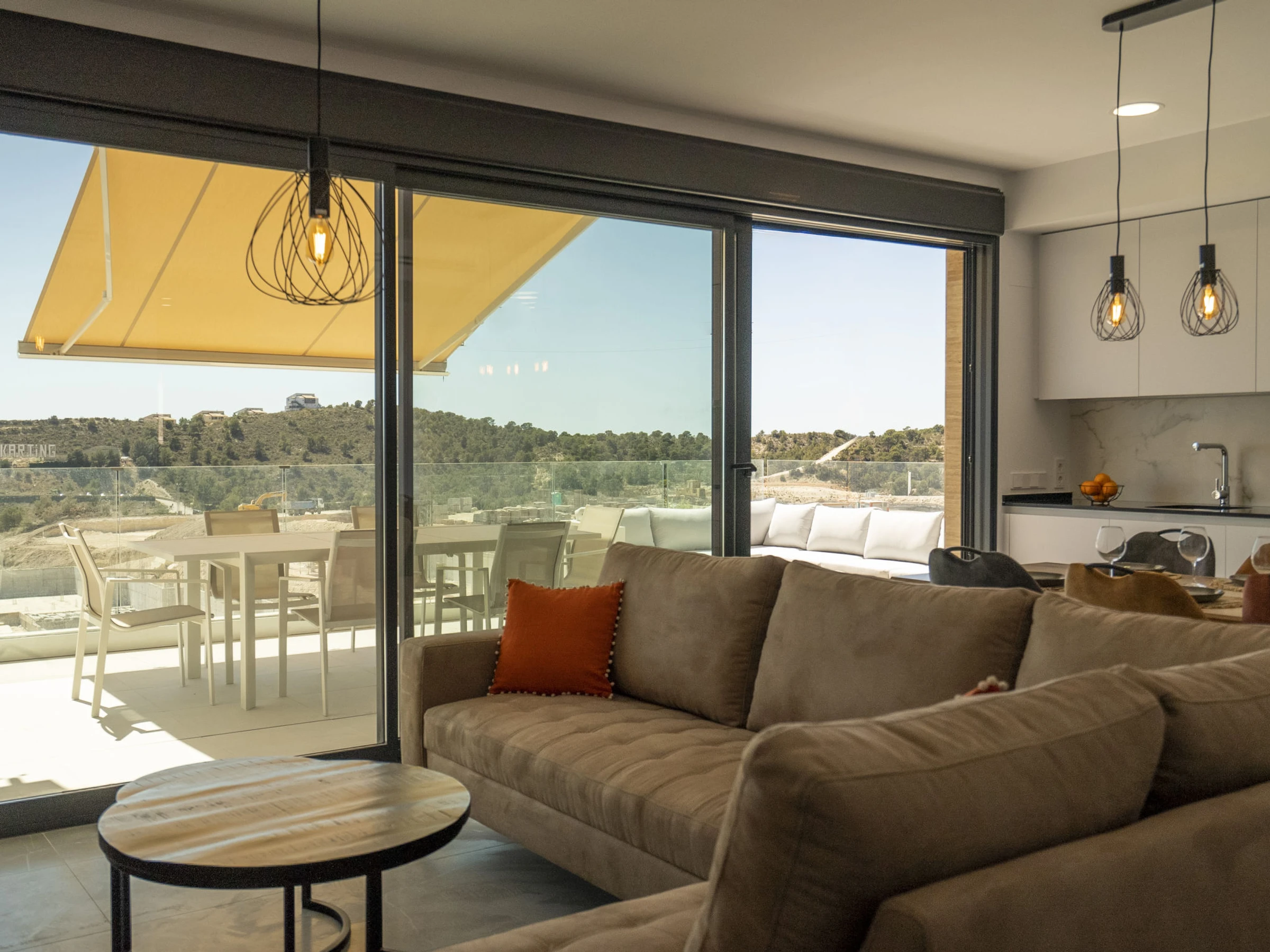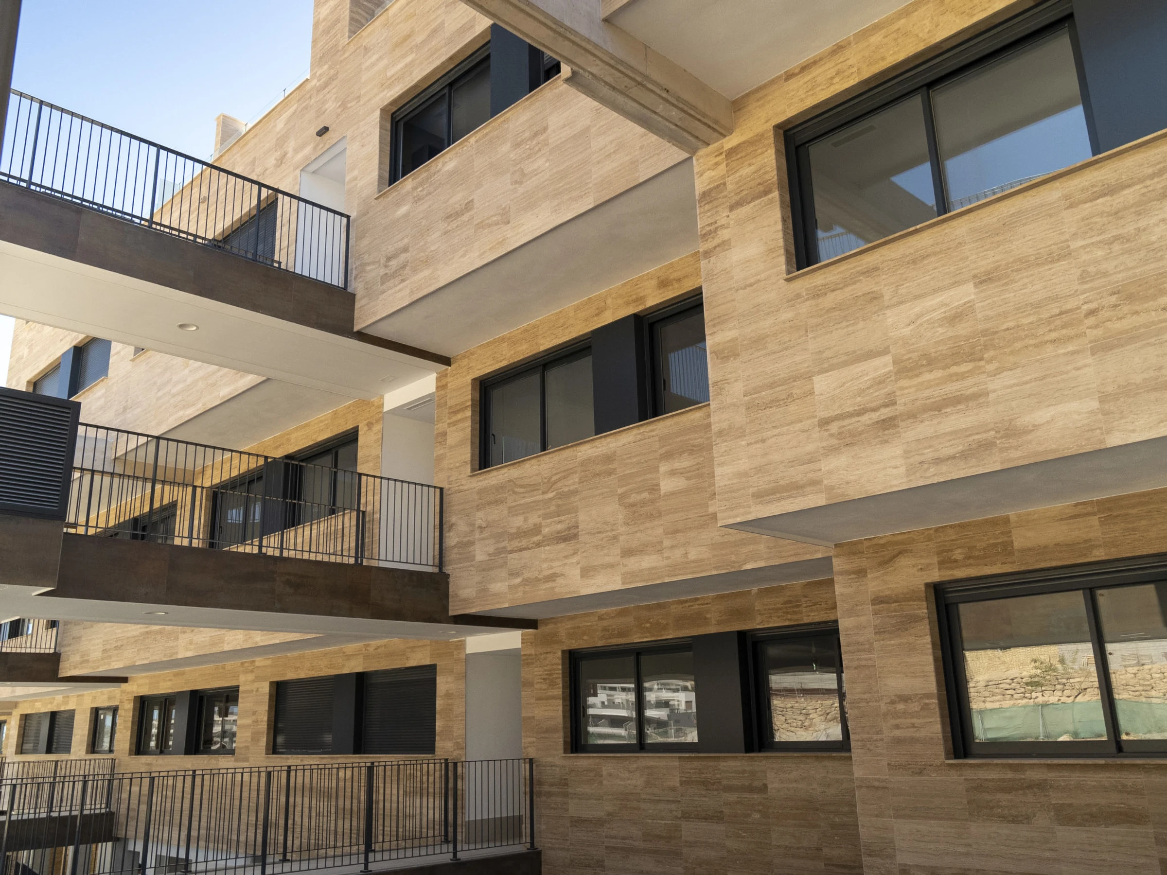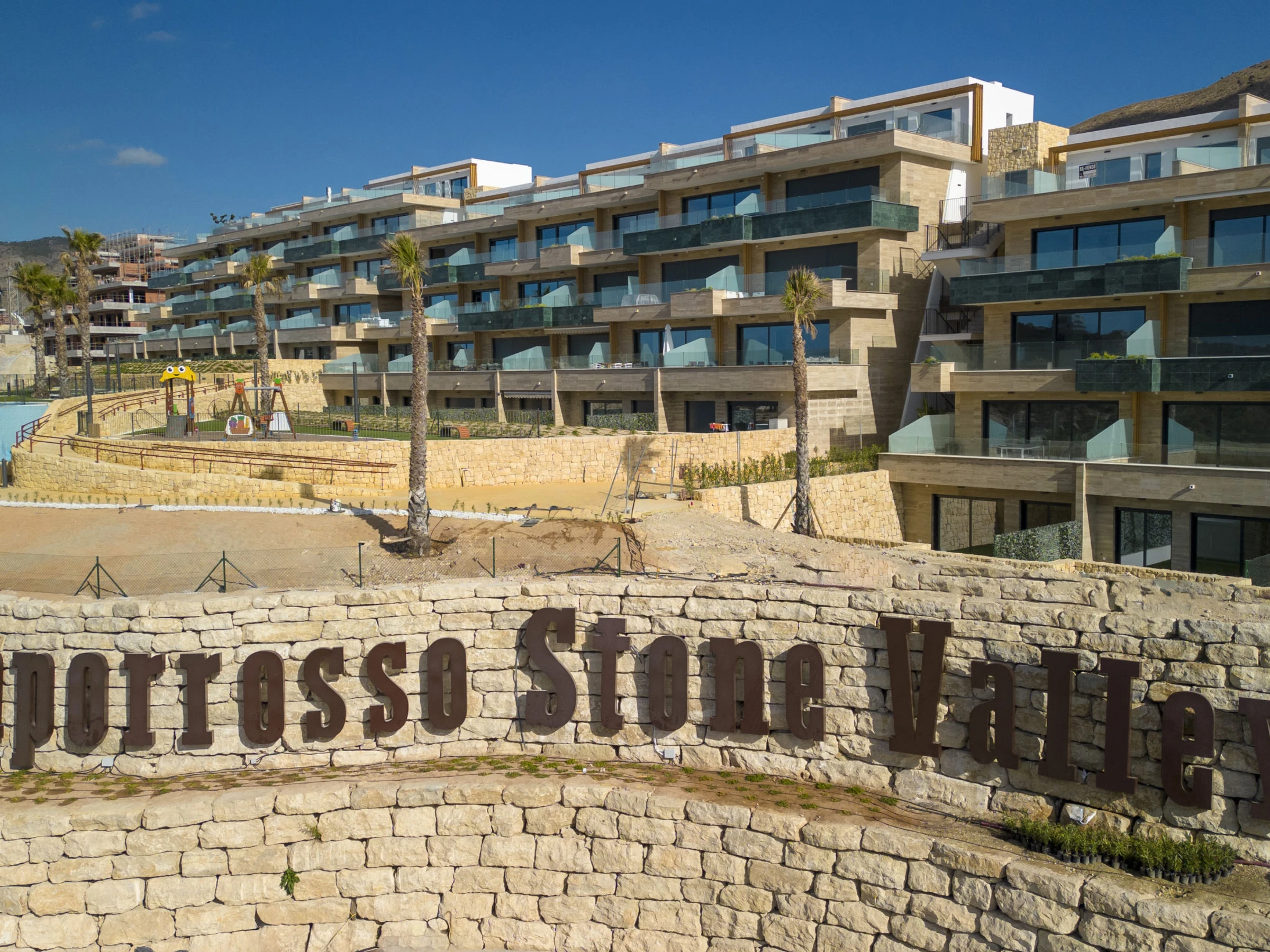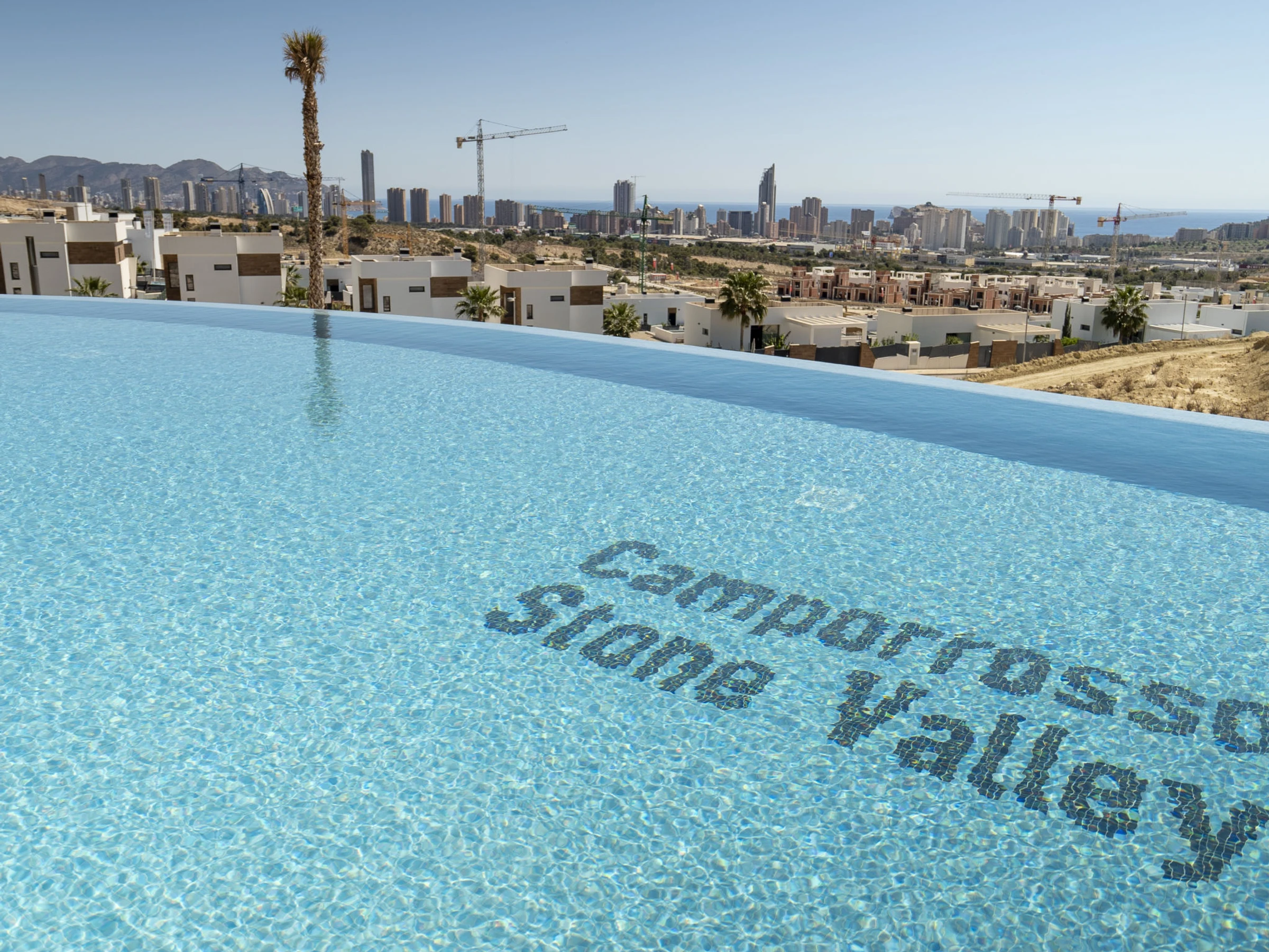 Casa Palmeras: Large, modern, comfortable apartment block "Casa Palmeras", built in 2022. On the outskirts, 6 km from the centre of Benidorm, outside the resort, 3 km from the centre of Finestrat, in a quiet, sunny position residential area (villas), traffic calmed area, 3 km from the sea, 3 km from the beach, south facing position. For shared use: property (fenced), terraced garden with lawn, swimming pool round (8 x 48 m, depth 1 - depth 45 cm, seasonal availability: [hidden] - [hidden] Shower/WC in the pool area, children's pool, patio, children's playground. In the house: lift. Roofed, parking. Supermarket 2 km, shopping centre 2 km, restaurant 2 km, bar 2 km, bus stop "Benidorm" 2 km, railway station "Benidorm" 2 km. Golf course (18 hole) 2 km, walking paths from the house 100 m. Nearby attractions: Aqualandia 13 km, Karting Finestrat 1 km, Terra Mitica 3 km, Terra Natura 4 km, Alicante 42 km, Aeropuerto Alicante 56 km. Please note: car recommended. The owner does not accept any youth groups. Neighbourhood highly sensitive to noise. Quietness and good behaviour expected. -Year of construction 2022, finalized 2023.- 3km from Finestrat, 10 km from Villajoyosa, nearby La Cala in Finestrat.-Outdoor pool is an Infinity Pool.-Accesss to the phase 2 with sauna, gym, indoor pool, paddle tennis court and playground.