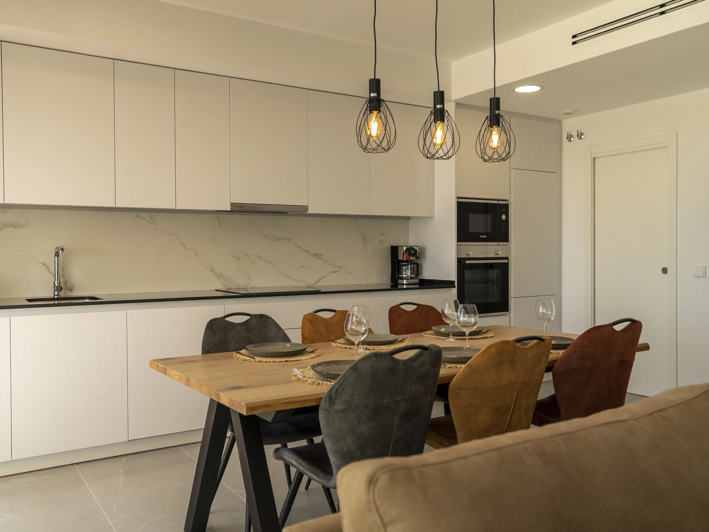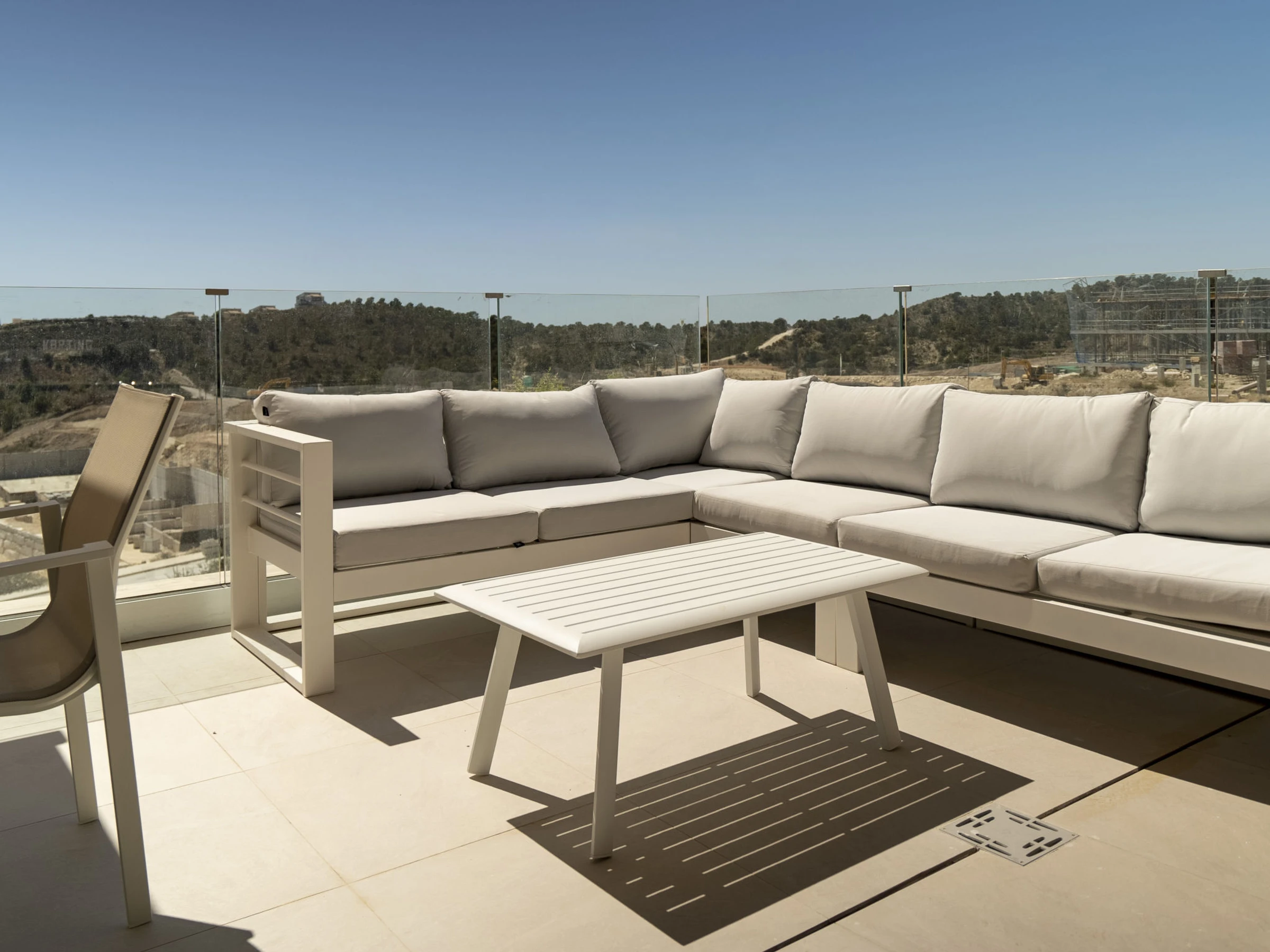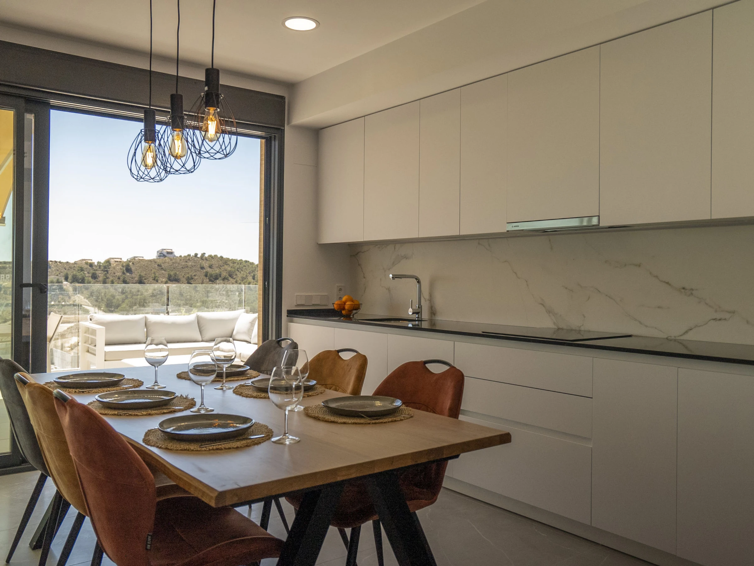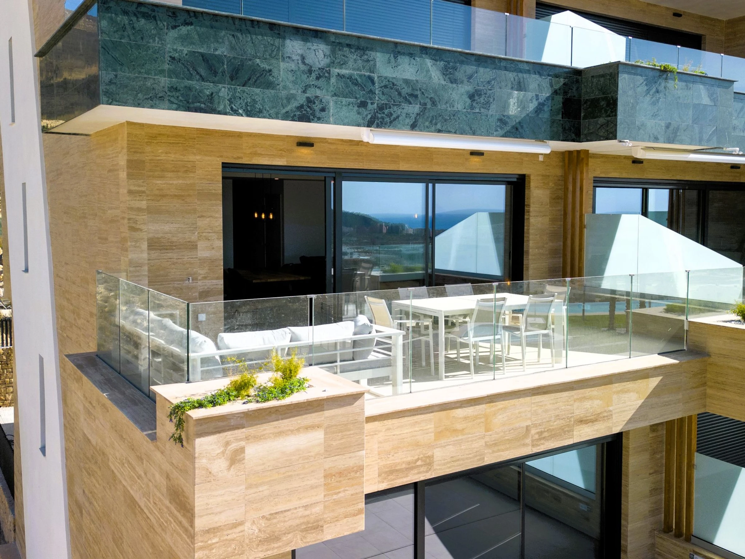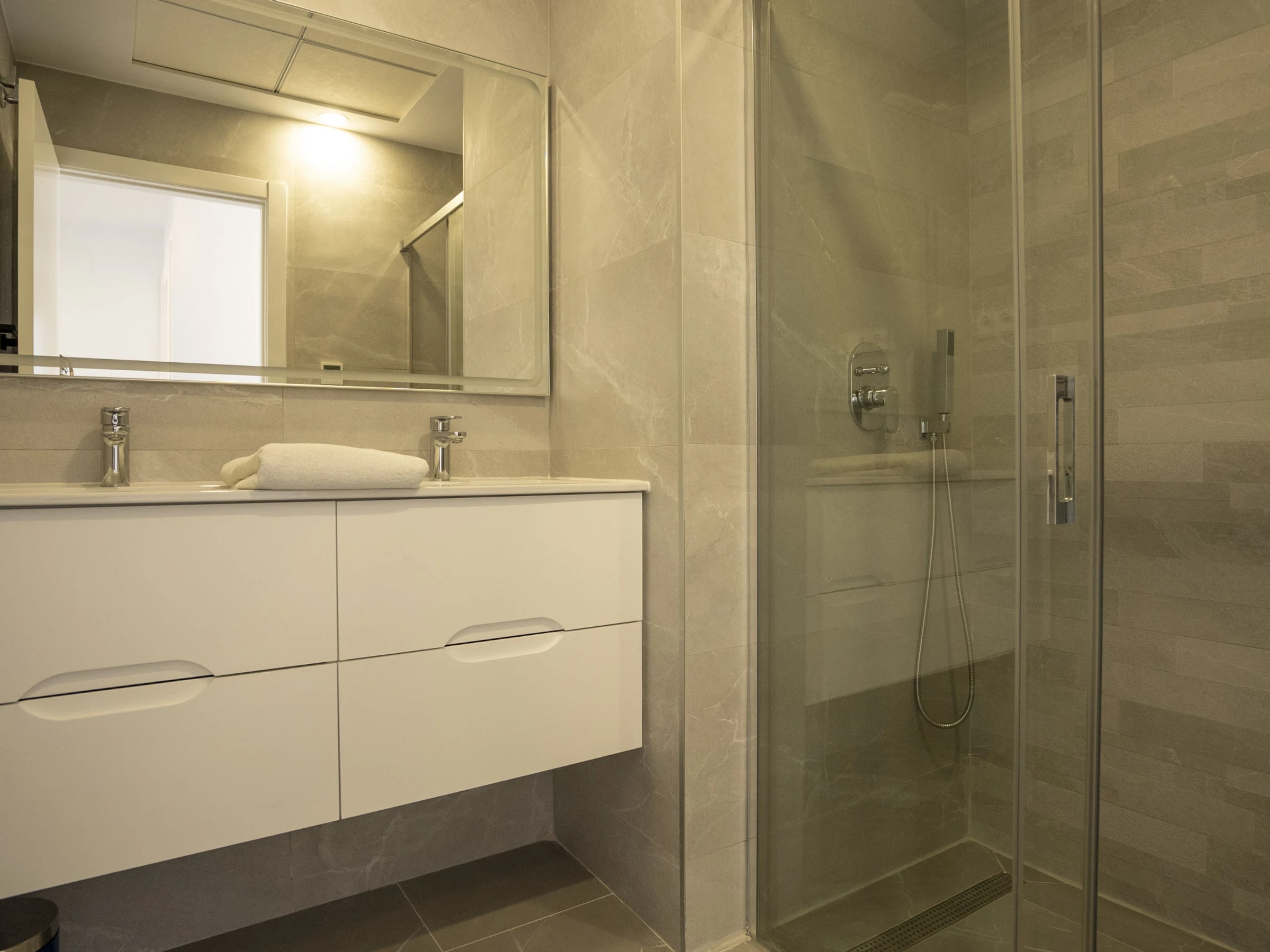Casa Palmeras: Large, modern, comfortable apartment block "Casa Palmeras", built in 2022. On the outskirts, 6 km from the centre of Benidorm, outside the resort, 3 km from the centre of Finestrat, in a quiet, sunny position residential area (villas), traffic calmed area, 3 km from the sea, 3 km from the beach, south facing position. For shared use: property (fenced), terraced garden with lawn, swimming pool round (8 x 48 m, depth 1 - depth 45 cm, seasonal availability: [hidden] - [hidden] Shower/WC in the pool area, children's pool, patio, children's playground. In the house: lift. Roofed, parking. Supermarket 2 km, shopping centre 2 km, restaurant 2 km, bar 2 km, bus stop "Benidorm" 2 km, railway station "Benidorm" 2 km. Golf course (18 hole) 2 km, walking paths from the house 100 m. Nearby attractions: Aqualandia 13 km, Karting Finestrat 1 km, Terra Mitica 3 km, Terra Natura 4 km, Alicante 42 km, Aeropuerto Alicante 56 km. Please note: car recommended. The owner does not accept any youth groups. Neighbourhood highly sensitive to noise. Quietness and good behaviour expected. -Year of construction 2022, finalized 2023.- 3km from Finestrat, 10 km from Villajoyosa, nearby La Cala in Finestrat.-Outdoor pool is an Infinity Pool.-Accesss to the phase 2 with sauna, gym, indoor pool, paddle tennis court and playground.