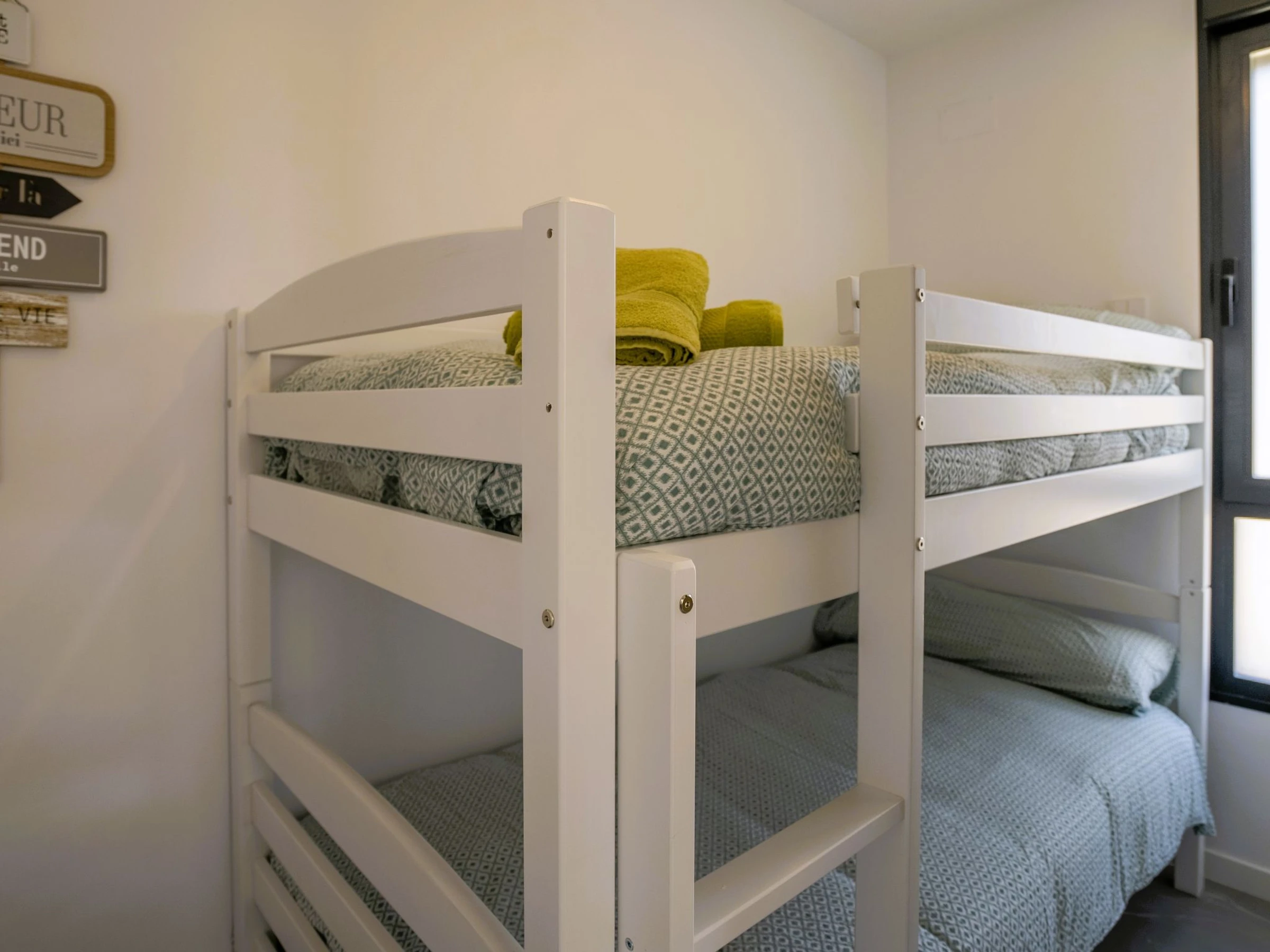 "Camporroso Stone Valley", 4-room apartment 66 m2 on 3rd floor. Object suitable for 4 adults. Spacious and bright, comfortable furnishings: living/dining room 24 m2 with digital TV, air conditioning, forced-air heating and electric shutters. Exit to the terrace. 1 room 9 m2 with 1 french bed (150 cm, length 190 cm), air conditioning, forced-air heating and electric shutters. 1 room 9 m2 with 1 french bed (150 cm, length 190 cm), air conditioning, forced-air heating and electric shutters. 1 room 5 m2 with 1 x 2 bunk beds (90 cm, length 190 cm), air conditioning, forced-air heating and electric shutters. Open kitchen (oven, dishwasher, 4 induction hot plates, toaster, kettle, microwave, freezer, electric coffee machine). Bath/WC, shower/WC. Electric heating, boiler (80 litres). Distant view of the sea. Facilities: washing machine, iron, hair dryer. Internet (WiFi, free). Reserved parking space n 33. [hidden]