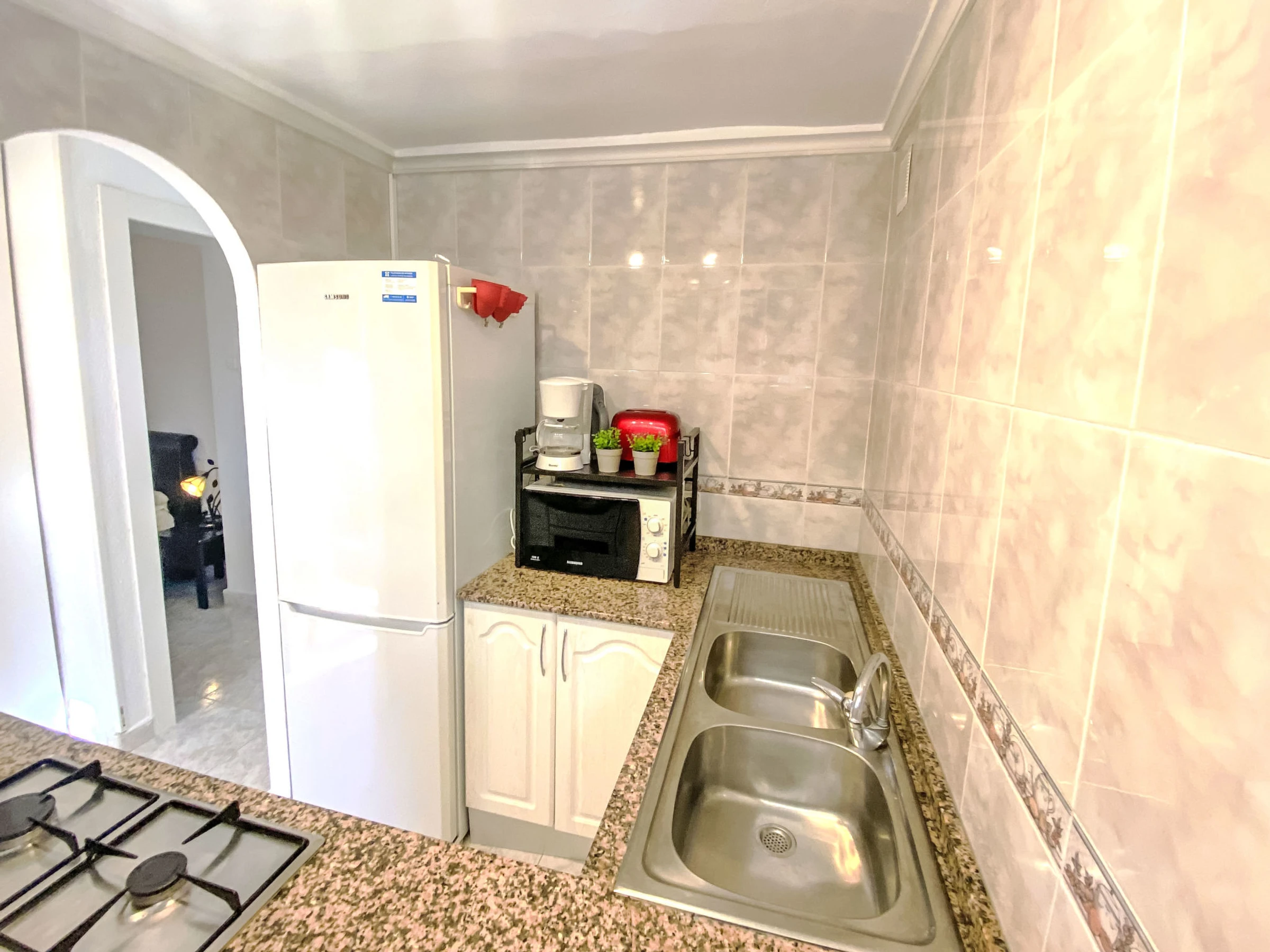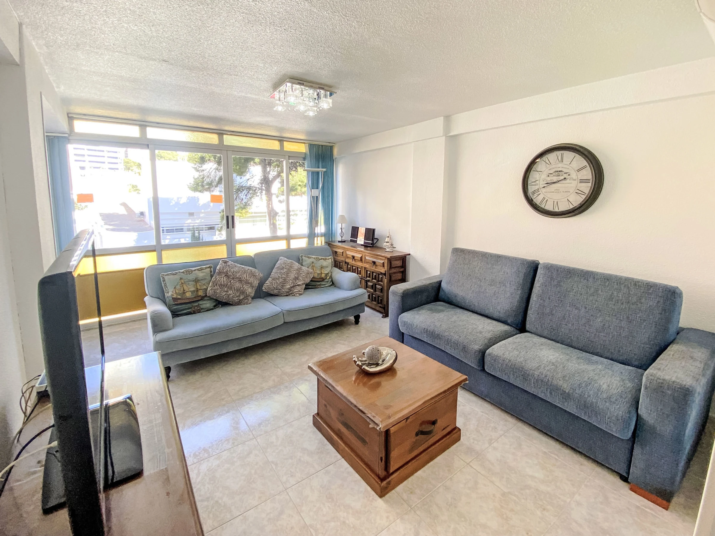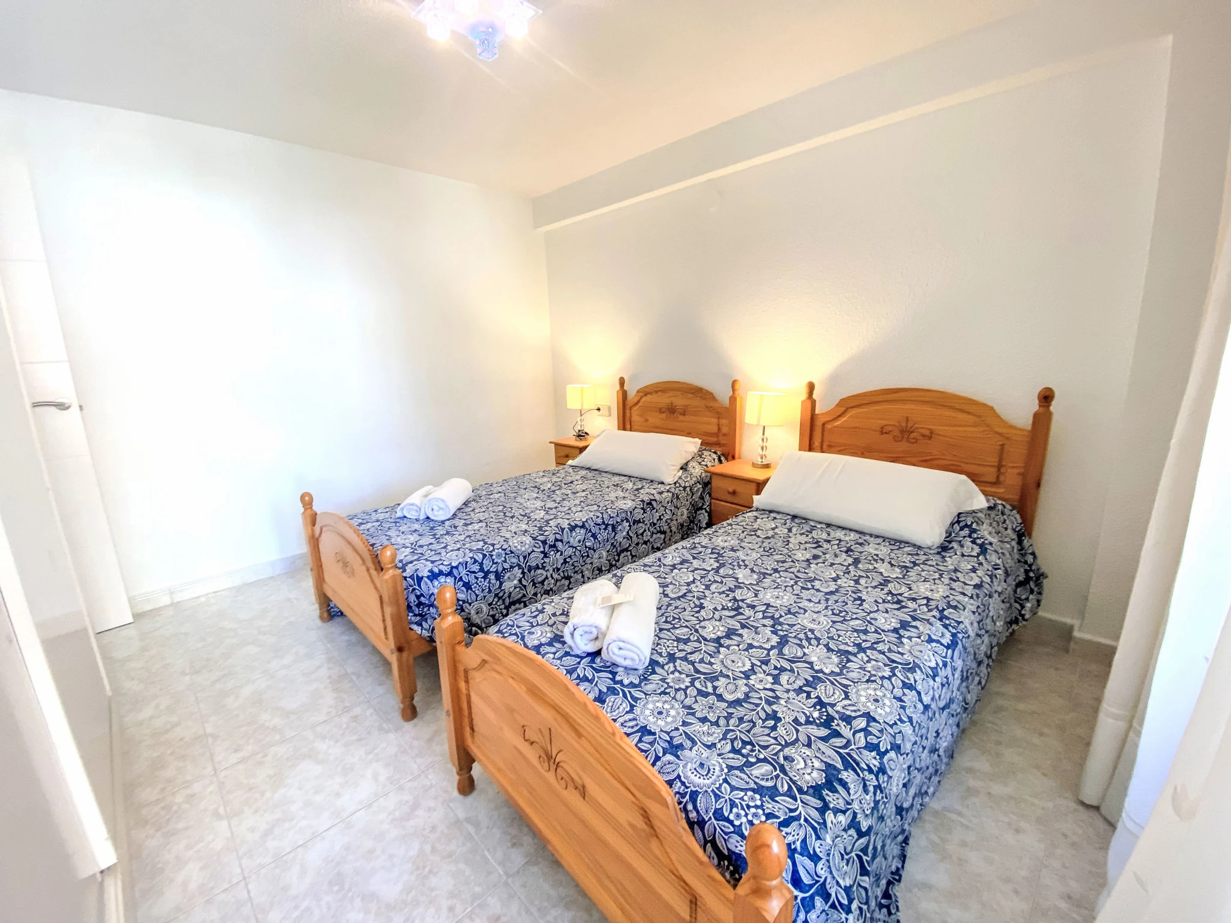 "Don Lorenzo", 3-room apartment 58 m2 on 3rd floor. Bright, simple and comfortable furnishings: living/dining room 14 m2 with digital TV, air conditioning and forced-air heating. 1 room 90 m2 with 2 beds (90 cm, length 190 cm). 1 room 8 m2 with 1 french bed (150 cm, length 190 cm), air conditioning and forced-air heating. Small kitchen (4 hot plates, oven, toaster, kettle, microwave, freezer, electric coffee machine). Shower/bidet/WC. Air-conditioning, boiler (52 litres). View of the resort. Facilities: washing machine, iron, hair dryer. Internet (WiFi, free). Please note: non-smokers only. EGVT-593-A. [hidden] // Reg. Nr.: ESFCTU0000030430000146290000000000000000[hidden]5