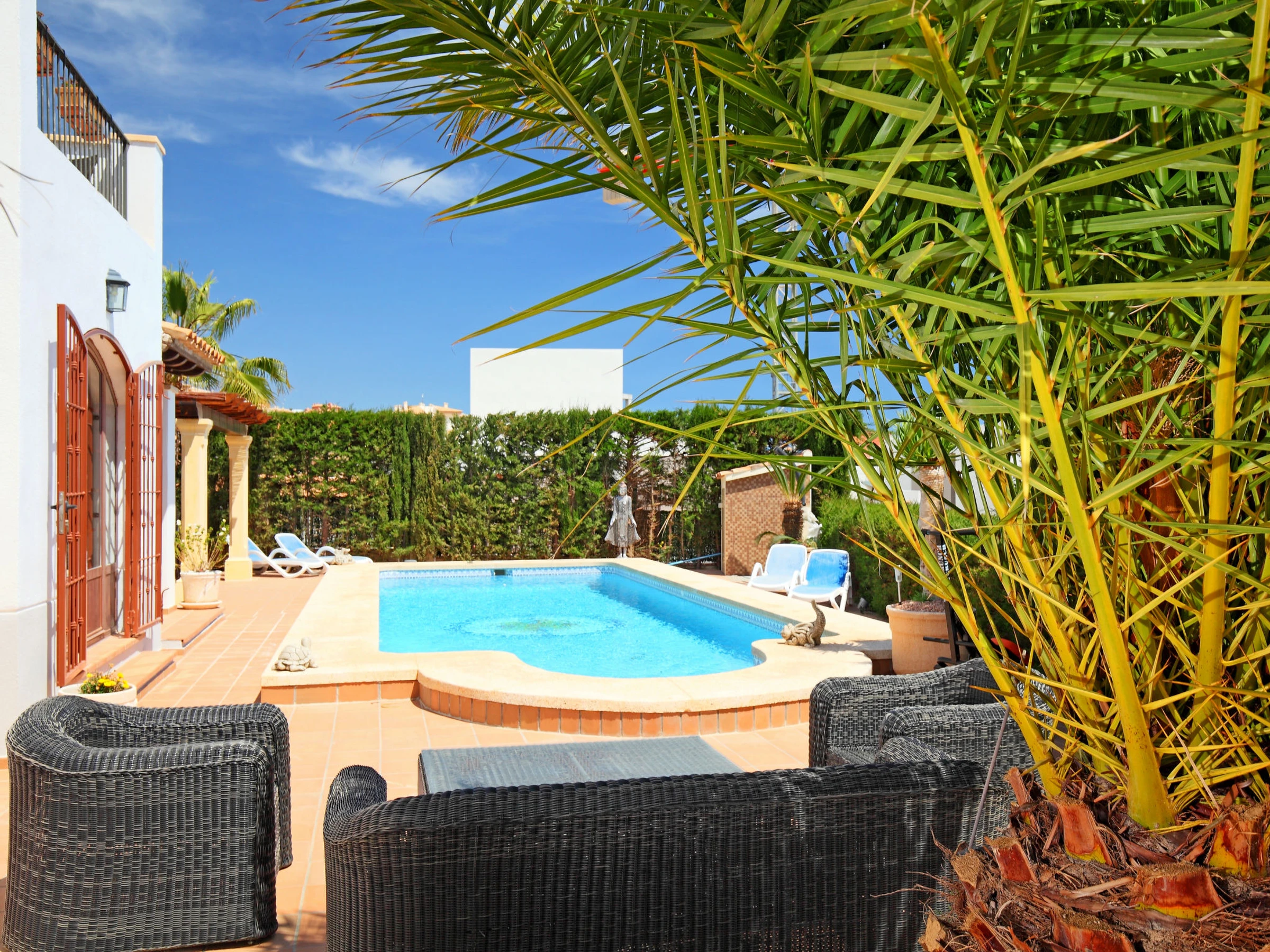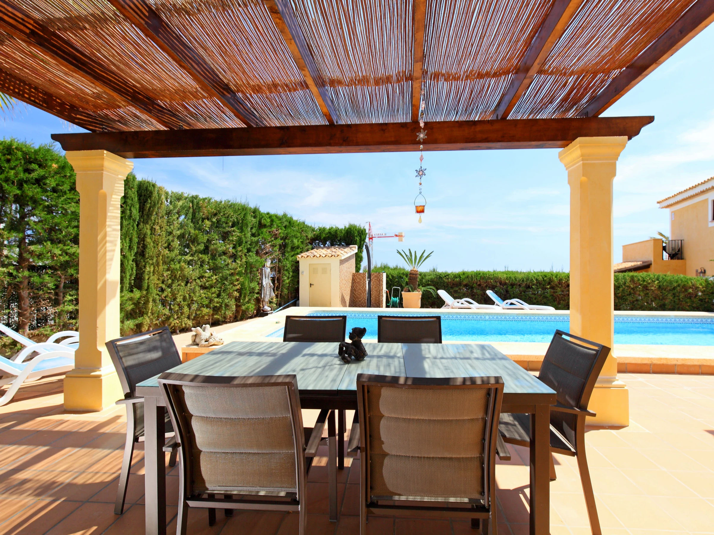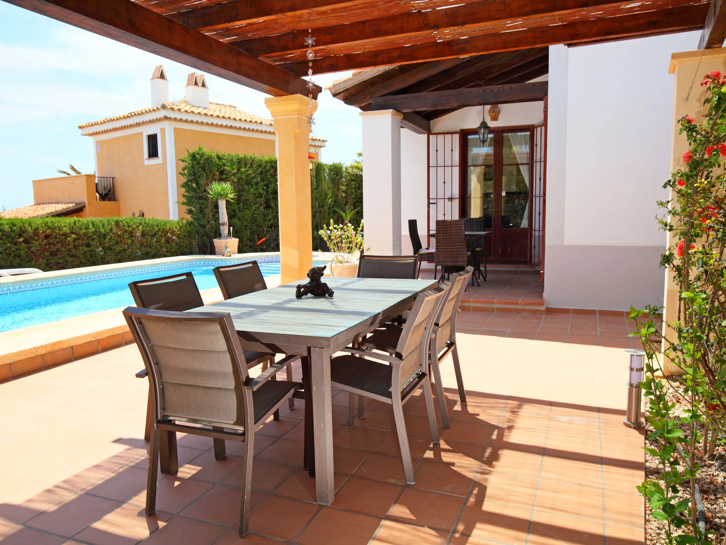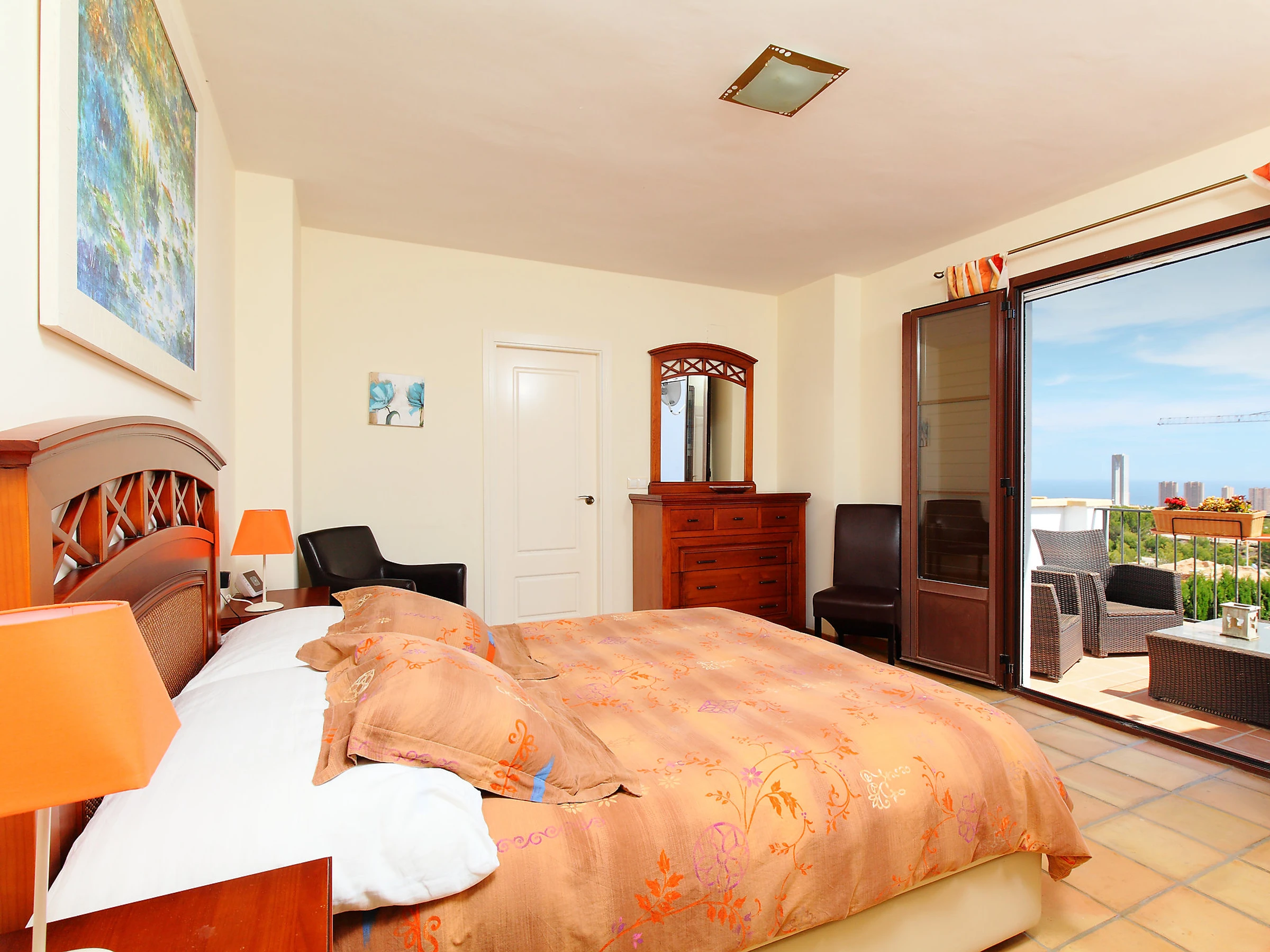 Sierra Cortina 2 km from Terra Mitica: Very large, modern, comfortable house "Copenhague", 2 storeys. On the outskirts, 4 km from the centre of Benidorm, in the district Terra Mitica, in a quiet, sunny position residential area (villas), 4 km from the sea, 4 km from the beach, on the golf course. Private: property (fenced), beautiful garden to relax, swimming pool angular (5 x 10 m, 01.01.-31.12.) with internal staircase and salt-electrolysis pool-cleaning system. Outdoor shower, garden furniture, barbecue, parking on the premises. Supermarket 3 km, restaurant 3 km, bar 3 km, railway station "Benidorm" 4 km, sandy beach "Playa Poniente Benidorm" 4 km. Golf course (18 hole) 800 m, walking paths from the house 100 m. Nearby attractions: Terra Mitica 2 km, Terra Natura 2 km, Aqualandia 5 km, Mundomar 5 km, Altea 8 km, Alicante 40 km. Please note: car recommended. Baby equipment on request. The owner does not accept any youth groups. Neighbourhood highly sensitive to noise. Quietness and good behaviour expected.