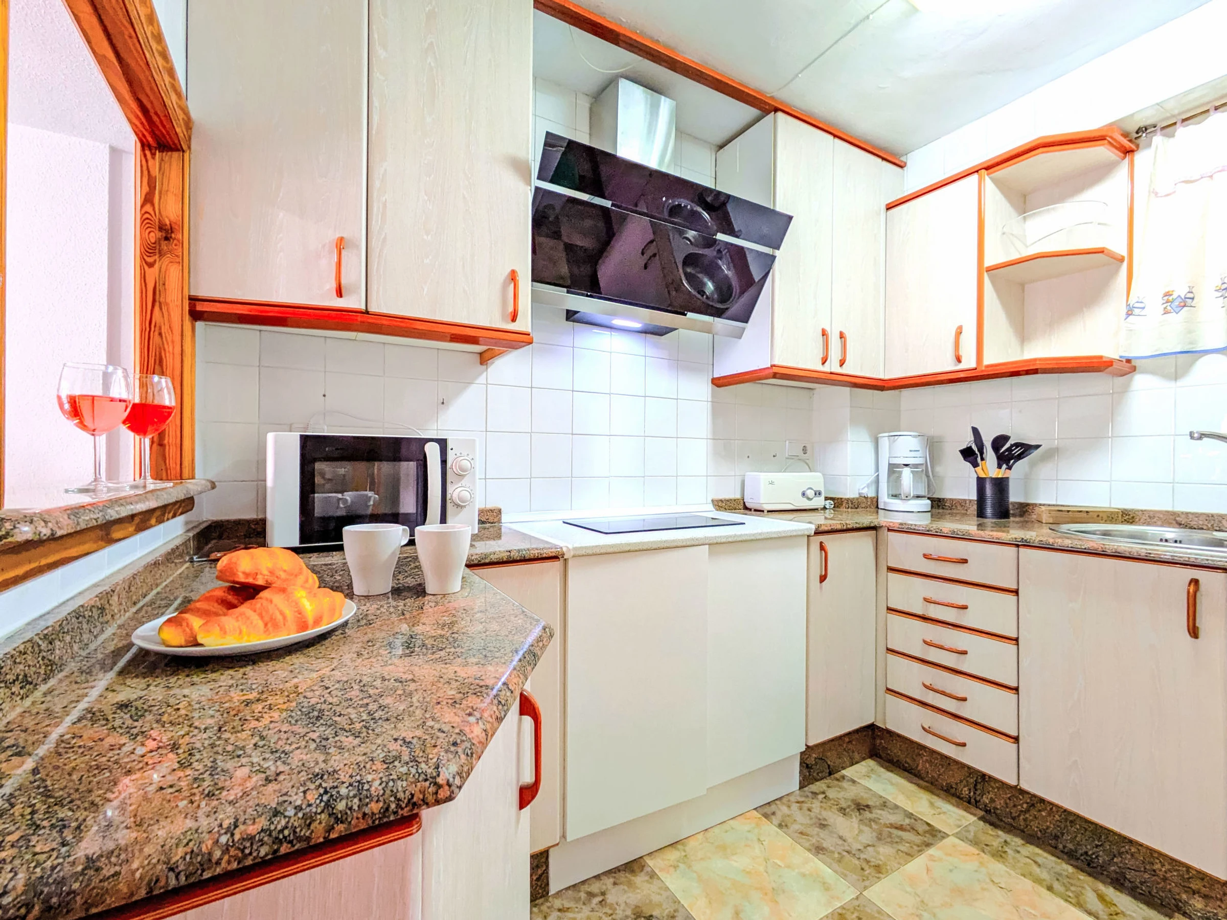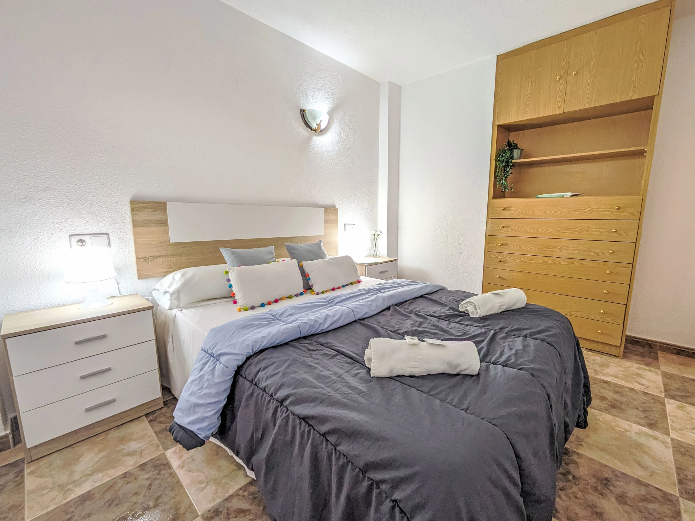 "Halcon Levante", 3-room apartment 40 m2 on 2nd floor. Spacious and bright, simple and practical furnishings: living/dining room 23 m2 with digital TV, air conditioning and forced-air heating. Exit to the terrace. 1 room 9 m2 with 2 beds (90 cm, length 190 cm). Exit to the terrace. 1 room 9 m2 with 1 french bed (135 cm, length 190 cm), fan. Kitchen (2 induction hot plates, toaster, kettle, microwave, freezer, electric coffee machine). Shower/WC. Small terrace 6 m2. Terrace furniture. Partial view of the sea, the swimming pool and the resort. Facilities: washing machine, iron, hair dryer. Internet (WiFi, free). Parking space n S/N. Please note: maximum 1 small pet/ dog allowed. TV only ES. EGVT-593-A. [hidden] // Reg. Nr.: ESFCTU0000030280001072430000000000000000[hidden]0
