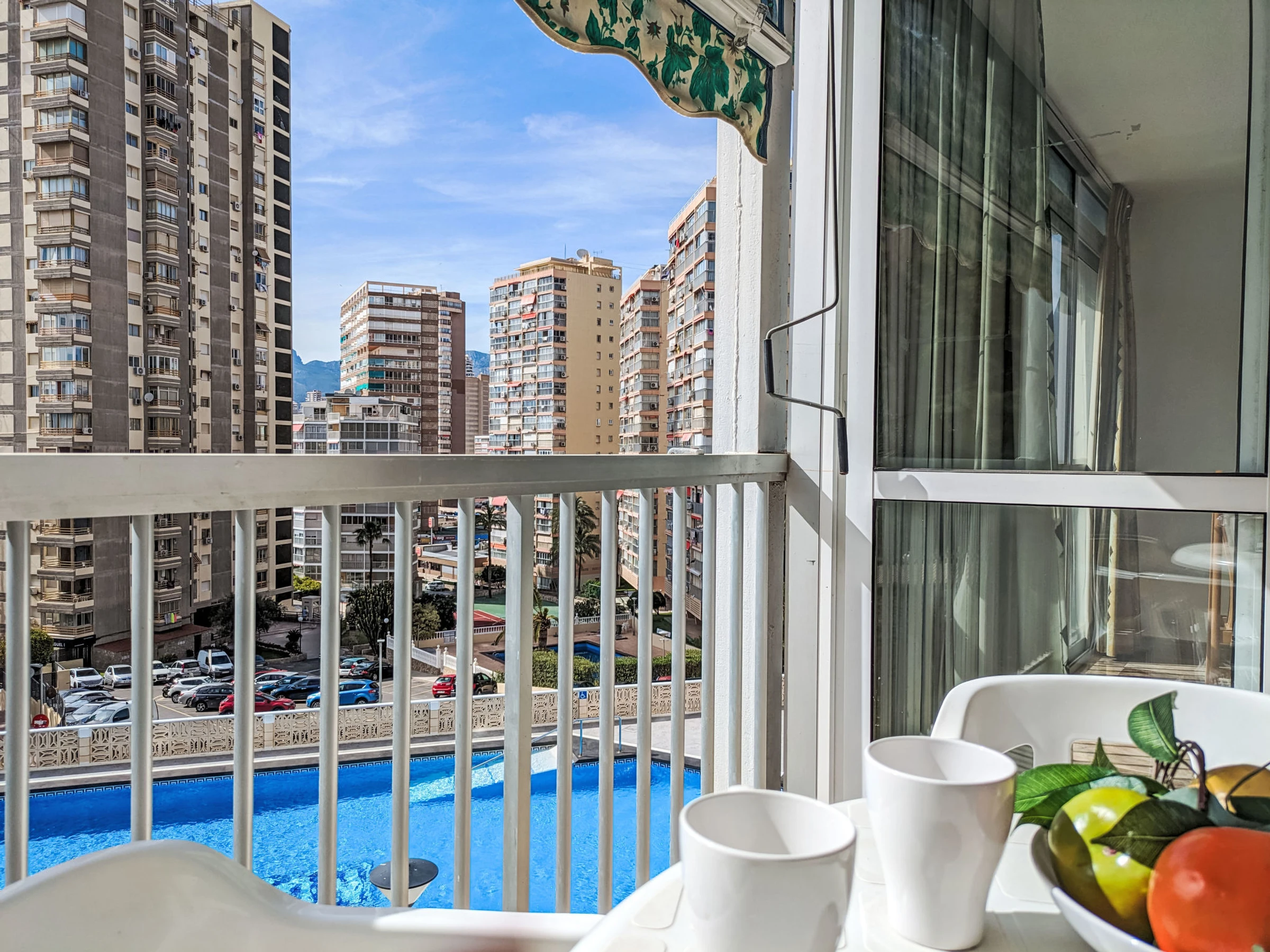Playa Levante: Large, cosy apartment block "Halcon Levante", 16 storeys. In the resort 300 m from the centre of Rincon de Loix, in a busy, sunny position on a slope, 100 m from the sea, 100 m from the beach. For shared use: property (fenced), swimming pool (7 x 11 m, depth 50 - 190 cm, seasonal availability: [hidden] - [hidden] Outdoor shower. In the house: lift. Steep motor access. Parking on the premises. Grocery 10 m, supermarket 50 m, restaurant, bar 100 m, bus stop "Benidorm" 100 m, railway station "Benidorm" 4 km. Golf course (18 hole) 6 km, walking paths from the house 200 m. Nearby attractions: Terra Mitica 11 km, Terra Natura 11 km, Aqualandia 2 km, Mundomar 2 km, Alicante 46 km, Aeropuerto Alicante 60 km. Please note: baby equipment on request. The owner does not accept any youth groups. Neighbourhood highly sensitive to noise. Quietness and good behaviour expected.
