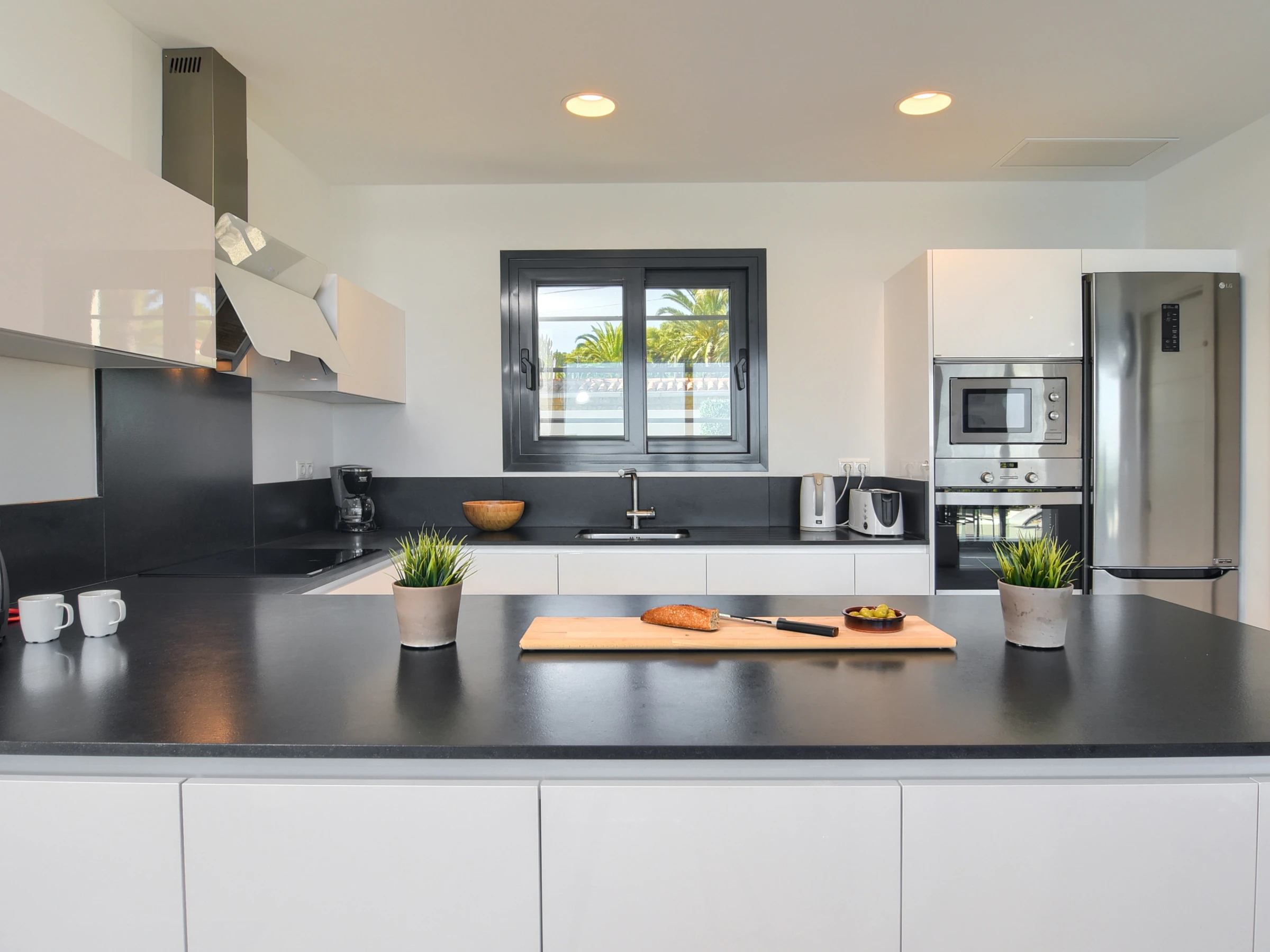 In the induction open plan kitchen, refrigerator, microwave, oven, freezer, washing machine, dishwasher, dishes/cutlery, kitchen utensils, coffee machine and toaster are provided.