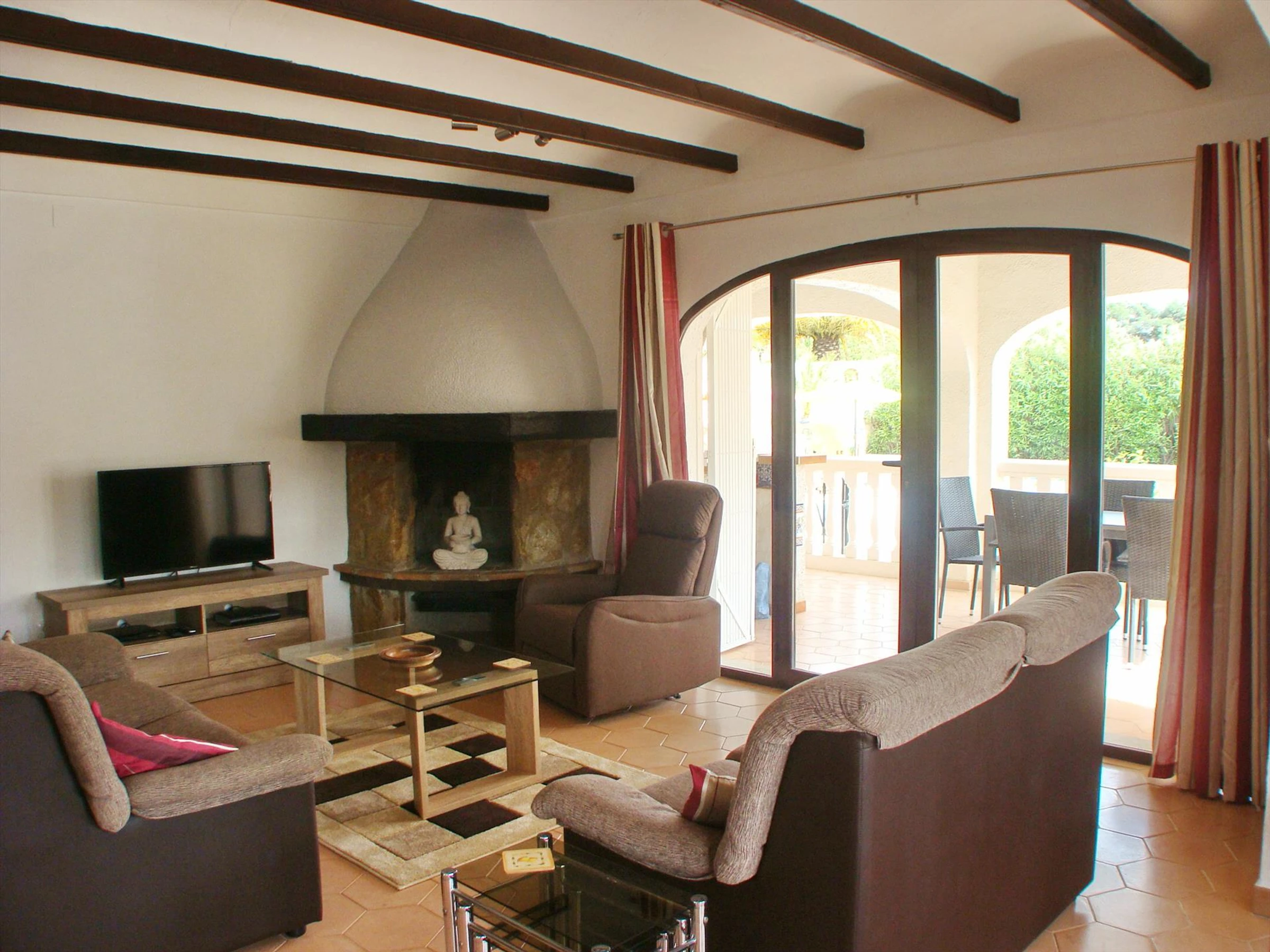 Beautiful and comfortable villa in Benissa, on the Costa Blanca, Spain with private pool (with a portable fence, childeren safe) for 6 persons. The house is situated in a coastal and residential area, at 2 km from Cala Baladrar beach and at 4 km from Moraira. The house has 3 bedrooms and 2 bathrooms. The accommodation offers privacy, a garden with trees, a wonderful pool and beautiful views of the valley. Its comfort and the vicinity of the beach, places to shop, sports activities, places to go out, sights and culture make this an ideal villa to spend your holidays in Spain with family or friends. Interior of the villa