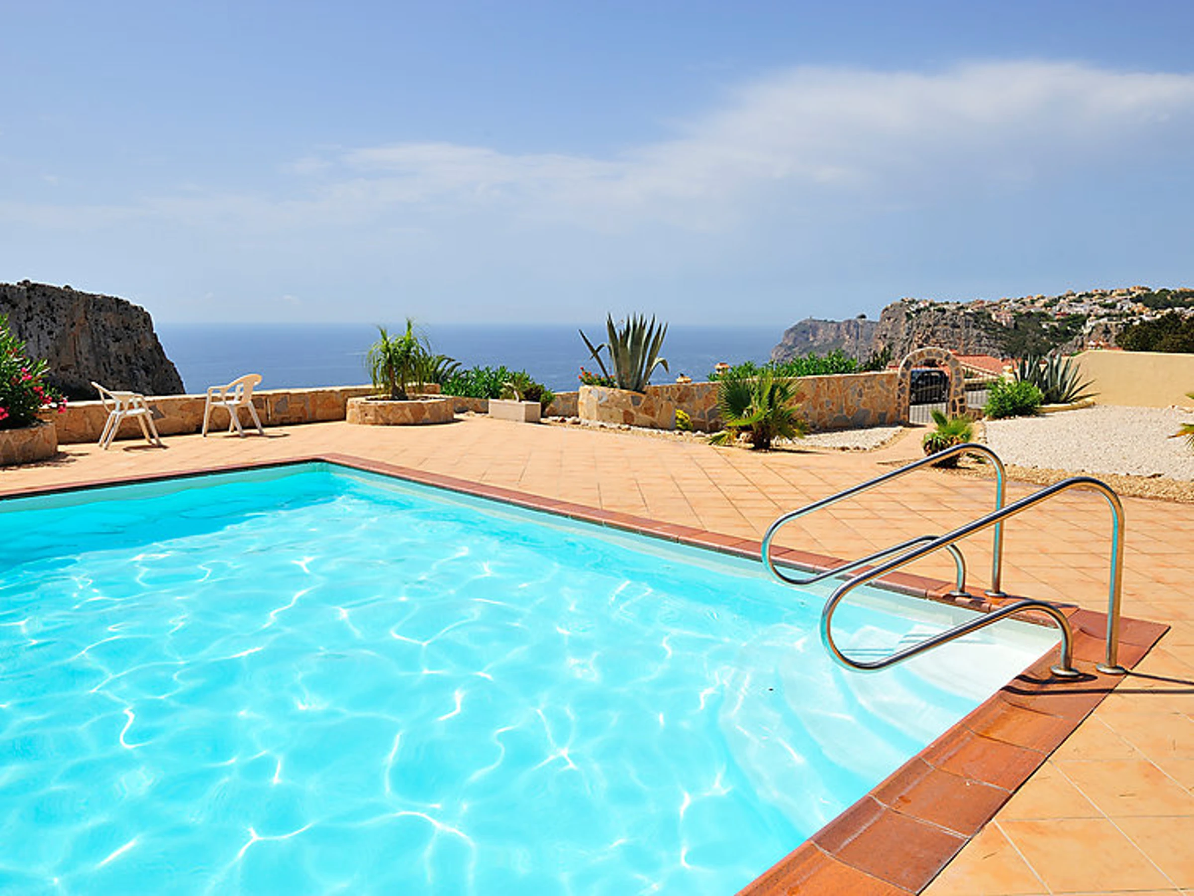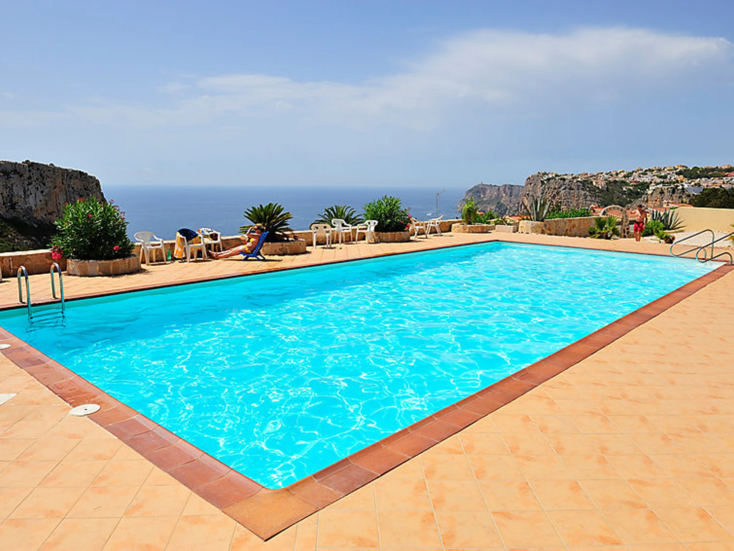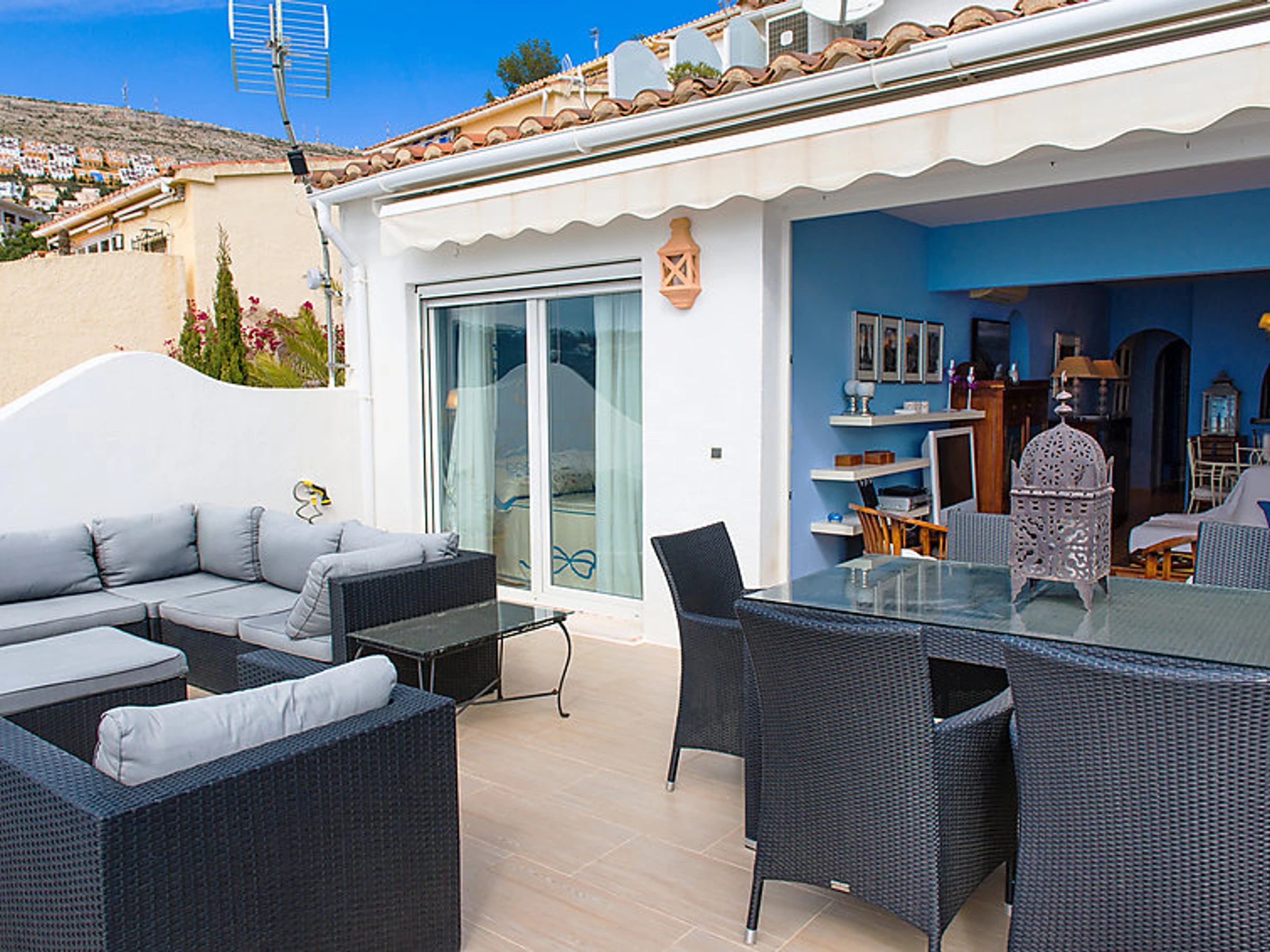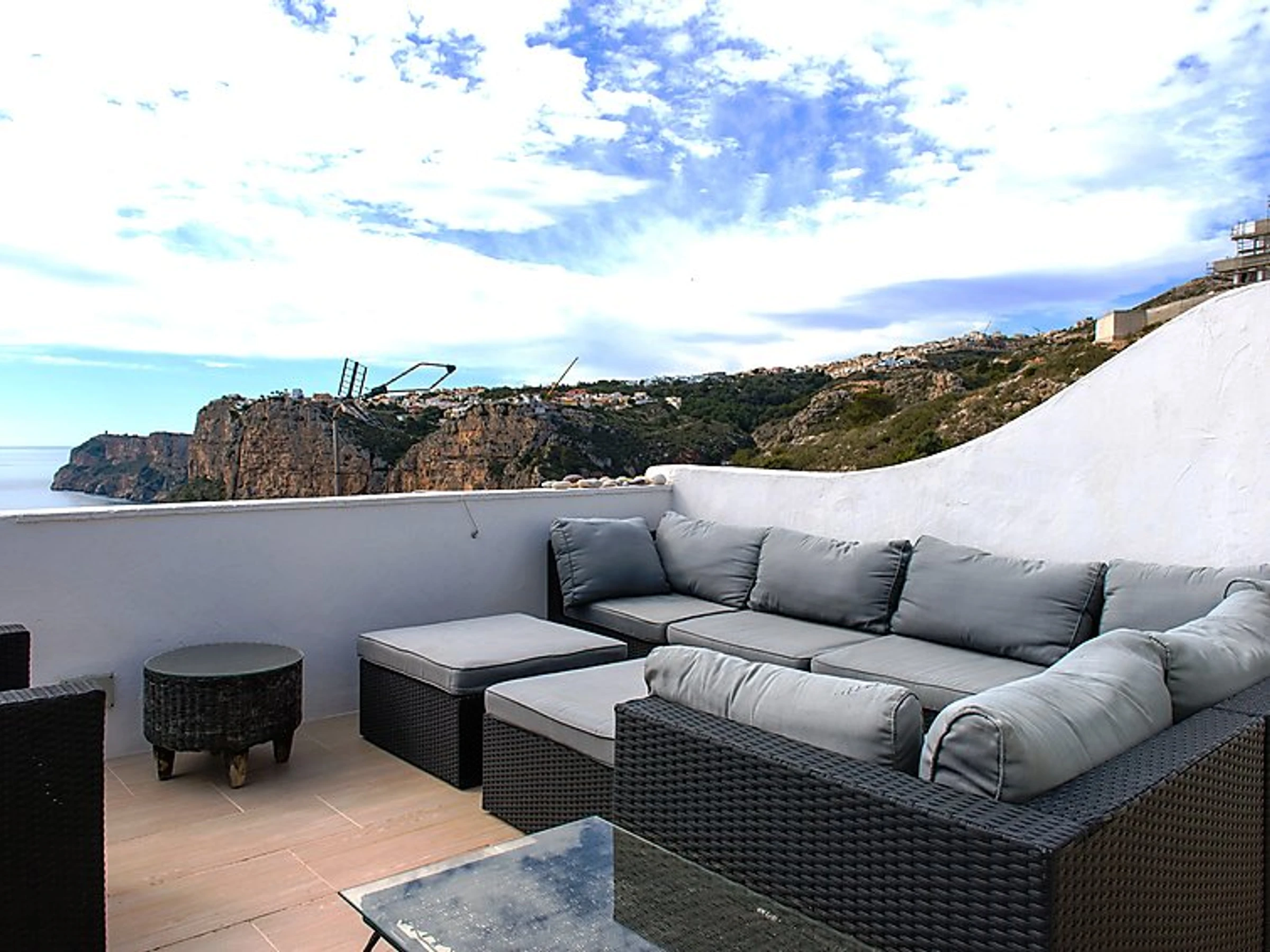 Benitachell: Terraced house "Pueblo de la Luz". In the district of Cumbre del Sol, 1 km from the sea. For shared use: swimming pool (7 x 15 m,[hidden].). Outdoor shower. Stepped path to the house. Public parking on the road. Supermarket, restaurant 600 m, sandy beach "Arenal" 15 km, shingle beach "Del Moraig" 1 km, outdoor swimming pool 600 m.