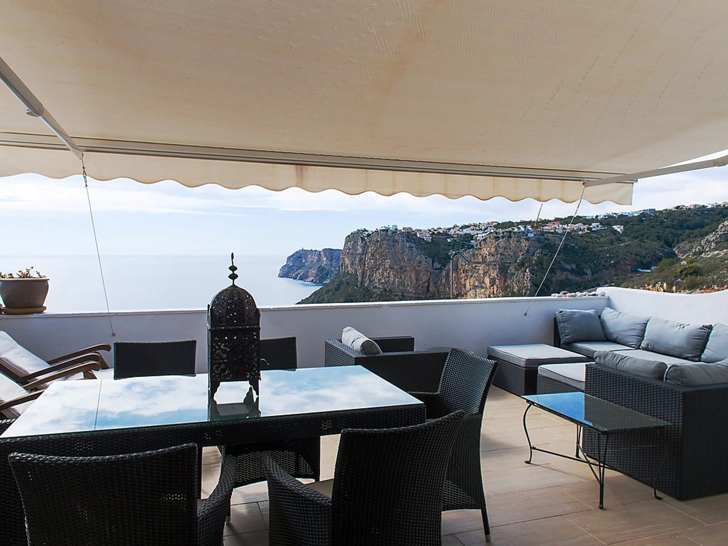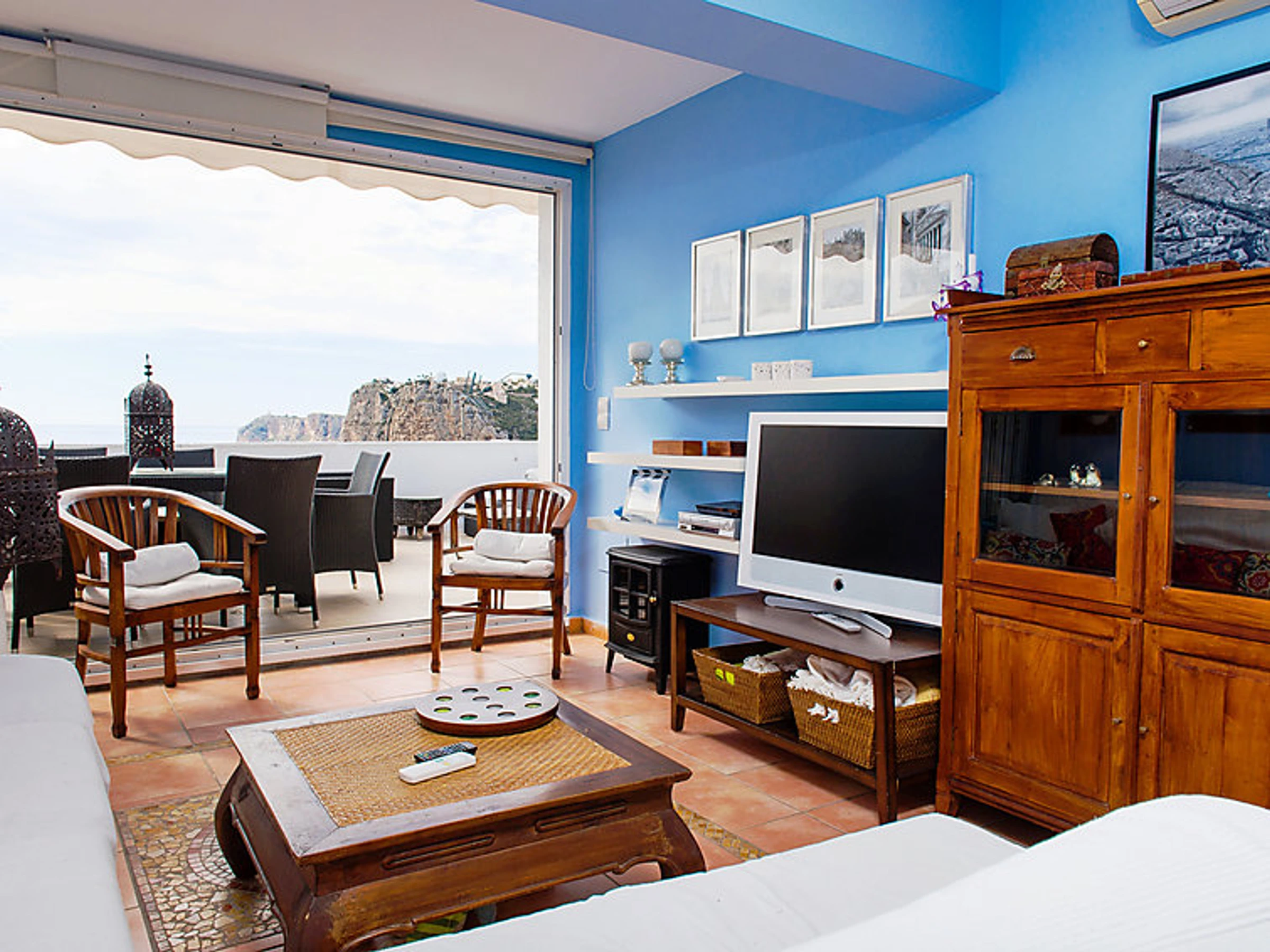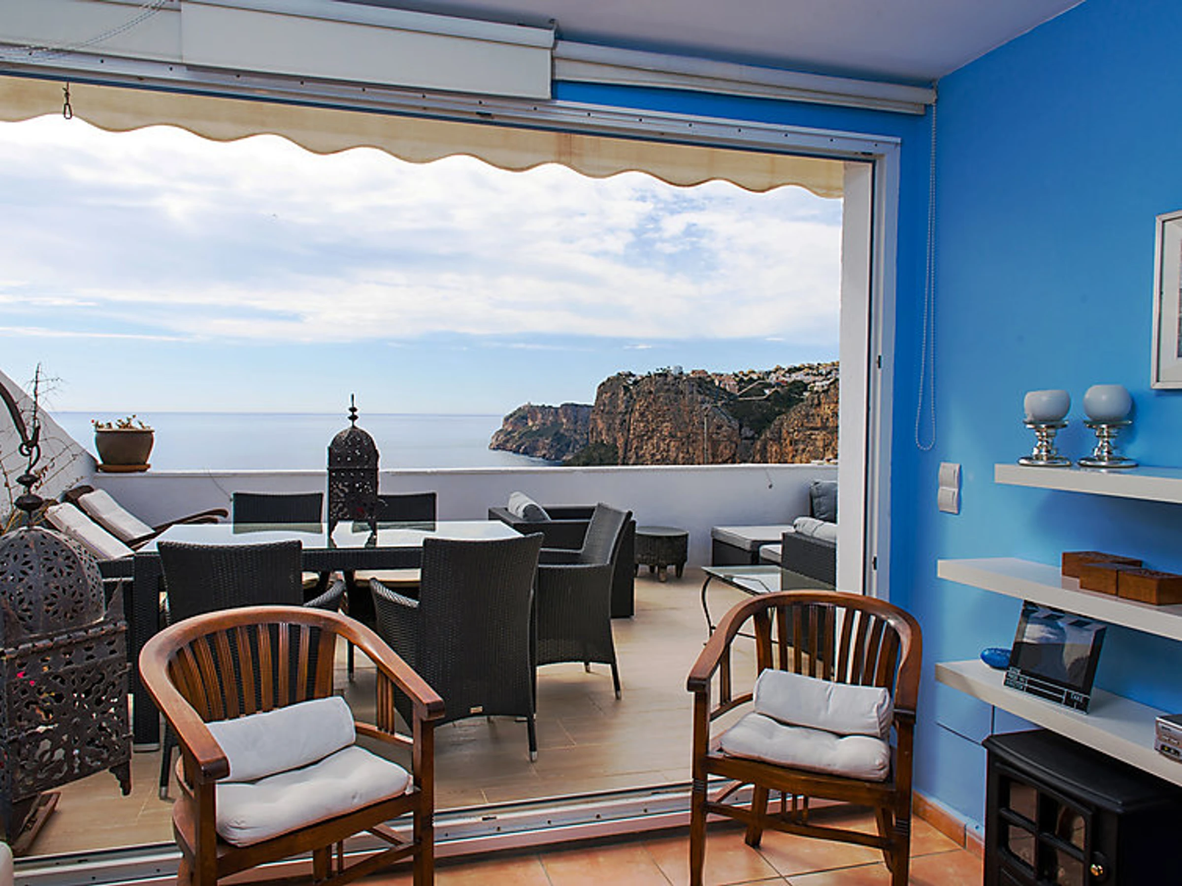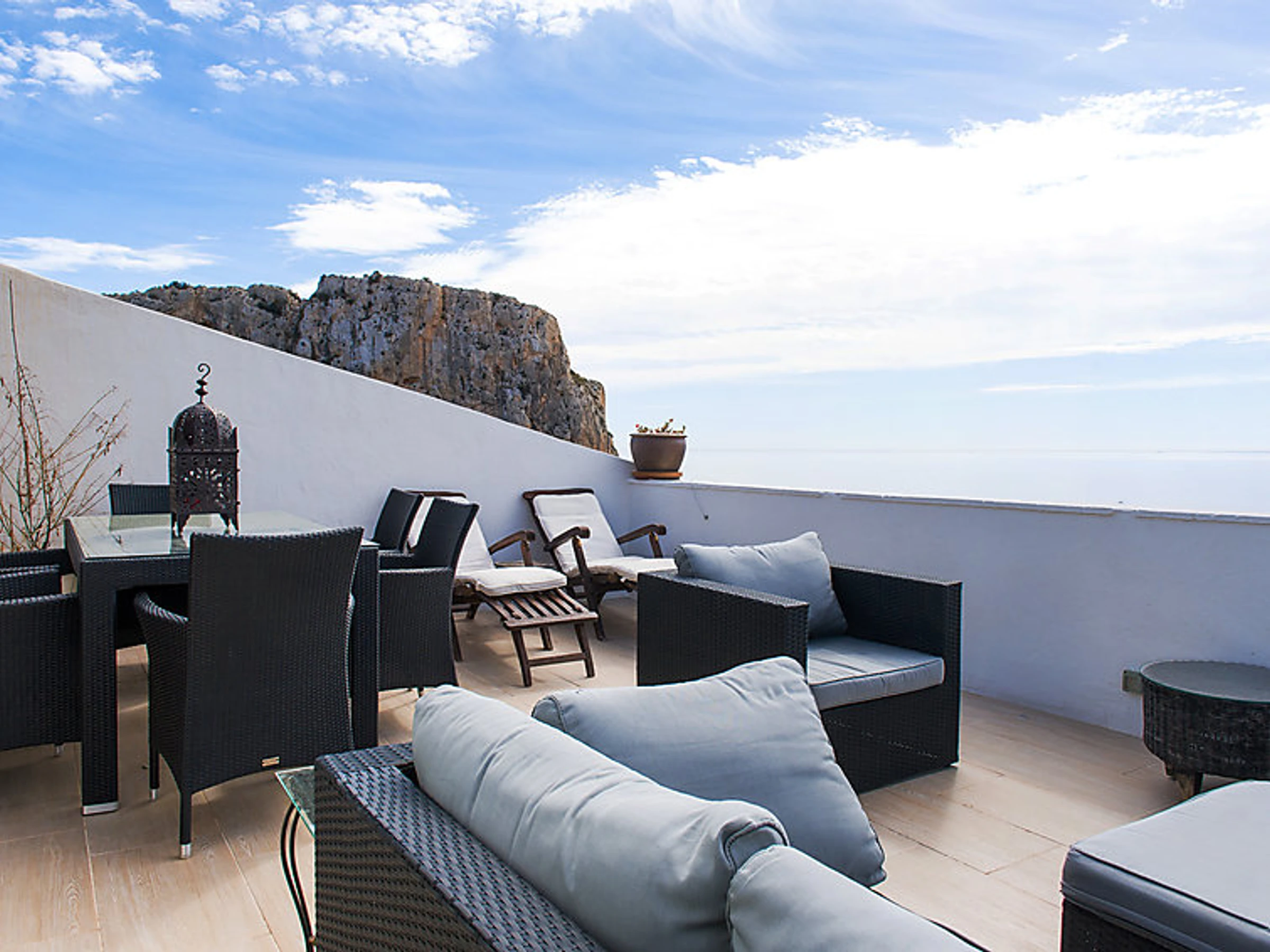 Benitachell: Terraced house "Pueblo de la Luz". In the district of Cumbre del Sol, 1 km from the sea. For shared use: swimming pool (7 x 15 m,[hidden].). Outdoor shower. Stepped path to the house. Public parking on the road. Supermarket, restaurant 600 m, sandy beach "Arenal" 15 km, shingle beach "Del Moraig" 1 km, outdoor swimming pool 600 m.