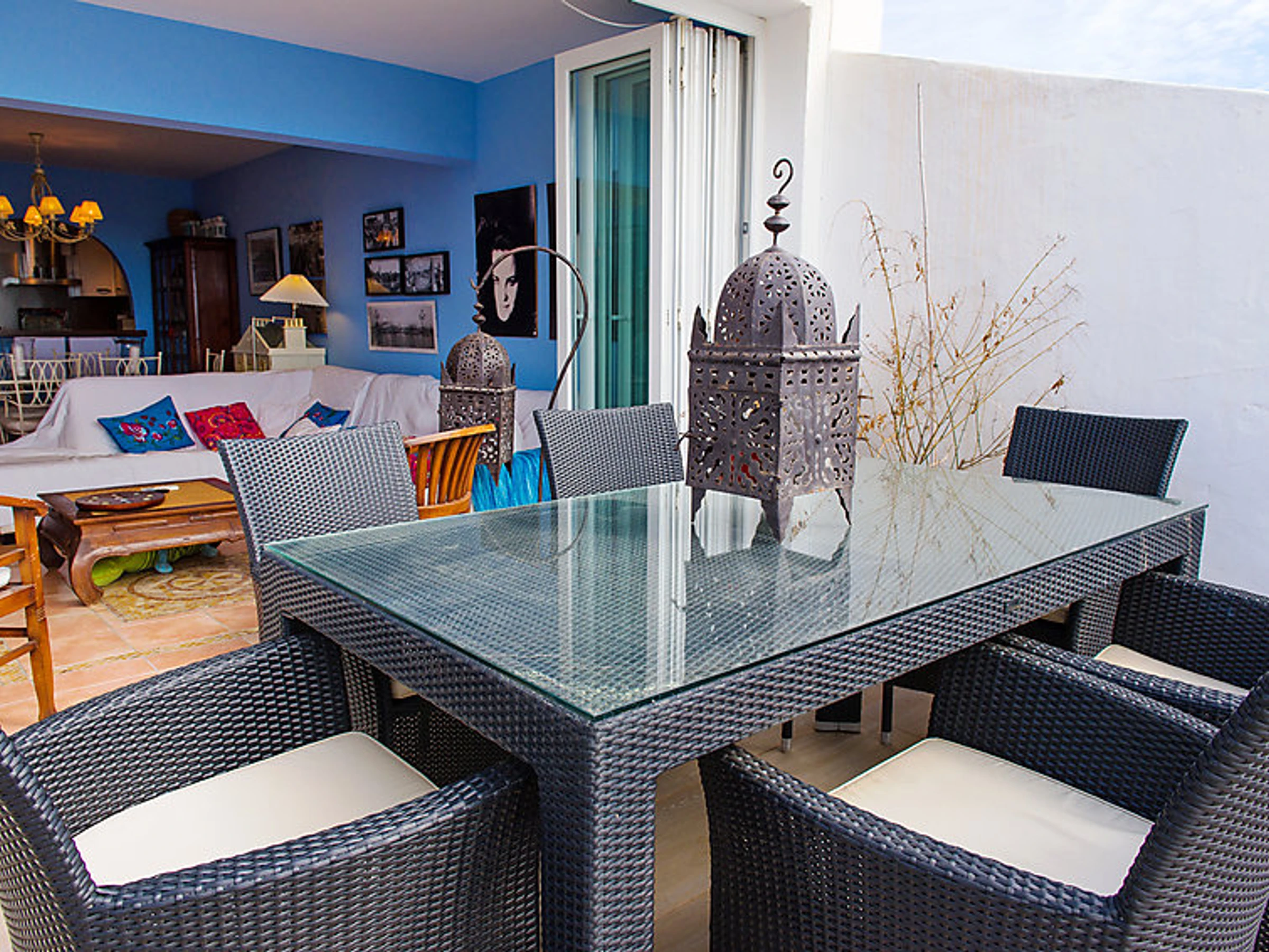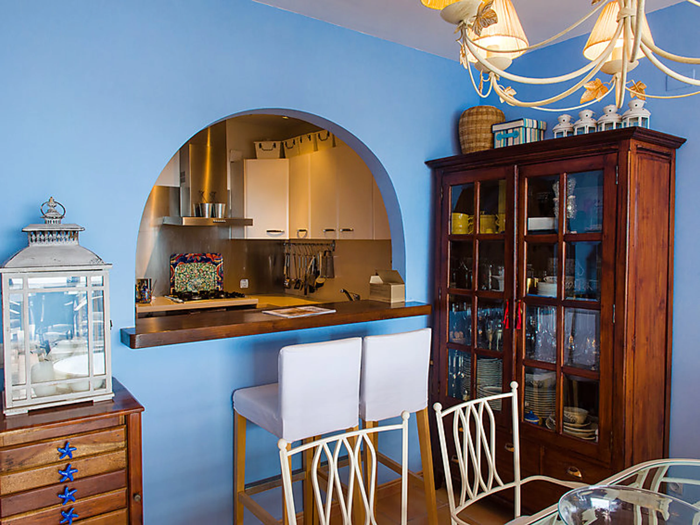 "La Serena", 4-room terraced house 100 m2. Comfortable and beautiful furnishings: living/dining room with TV (flat screen), DVD. Exit to the terrace. 1 room with 1 french bed and TV (flat screen). Exit to the terrace. 1 double bedroom with TV (flat screen). 1 children's room with 1 x 2 bunk beds. Open kitchen (dishwasher, freezer) with bar. 2 showers/WC. Large terrace 30 m2. Terrace furniture. Marvellous panoramic view of the sea. Facilities: washing machine. Internet (WiFi, free). Please note: TV only ES. AT445375A Mandatory extra services on site: Laundry (initial supply of bed linen and towels) 13.0EUR per person, Final cleaning 16.0EUR per person