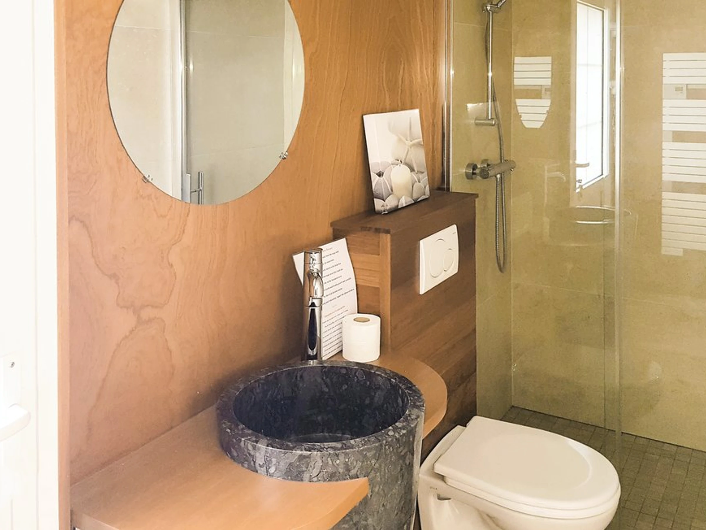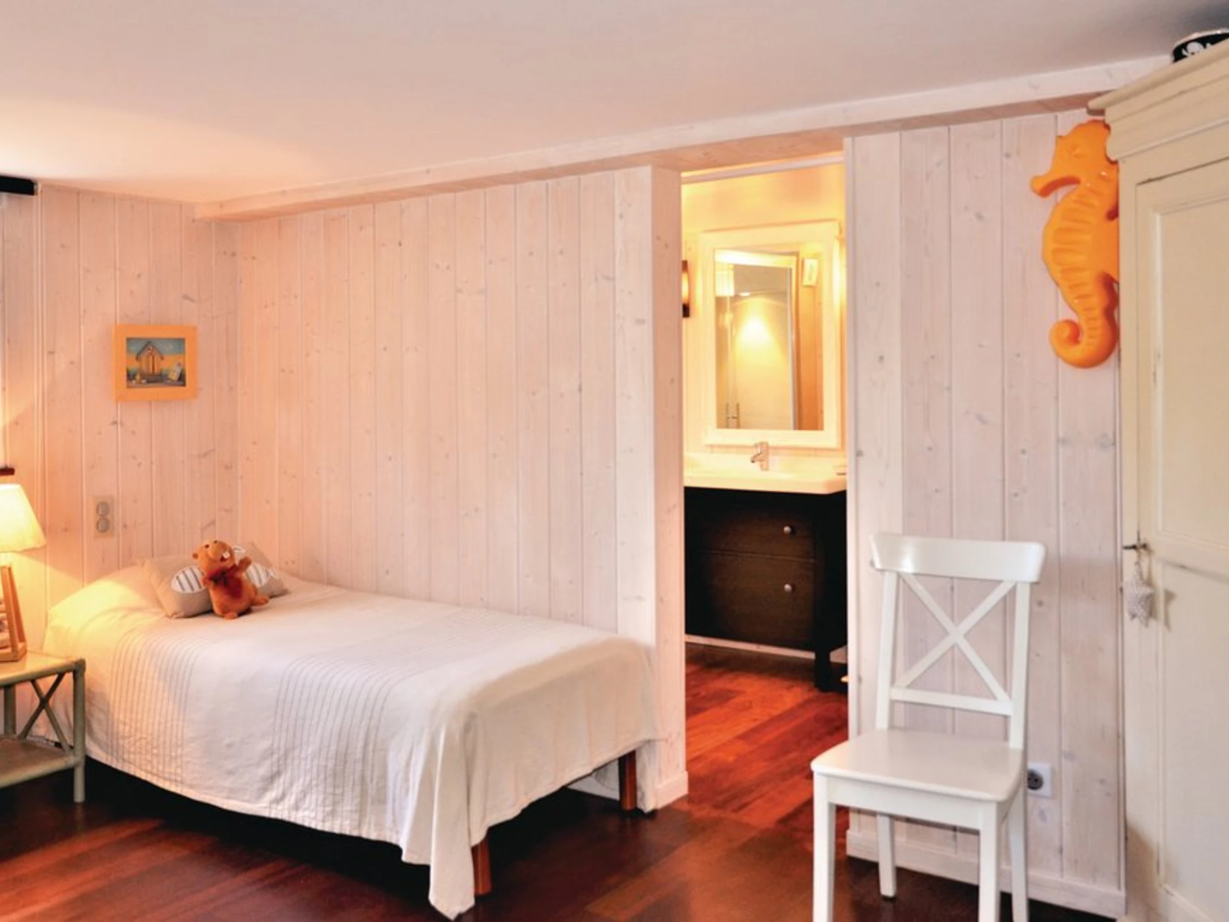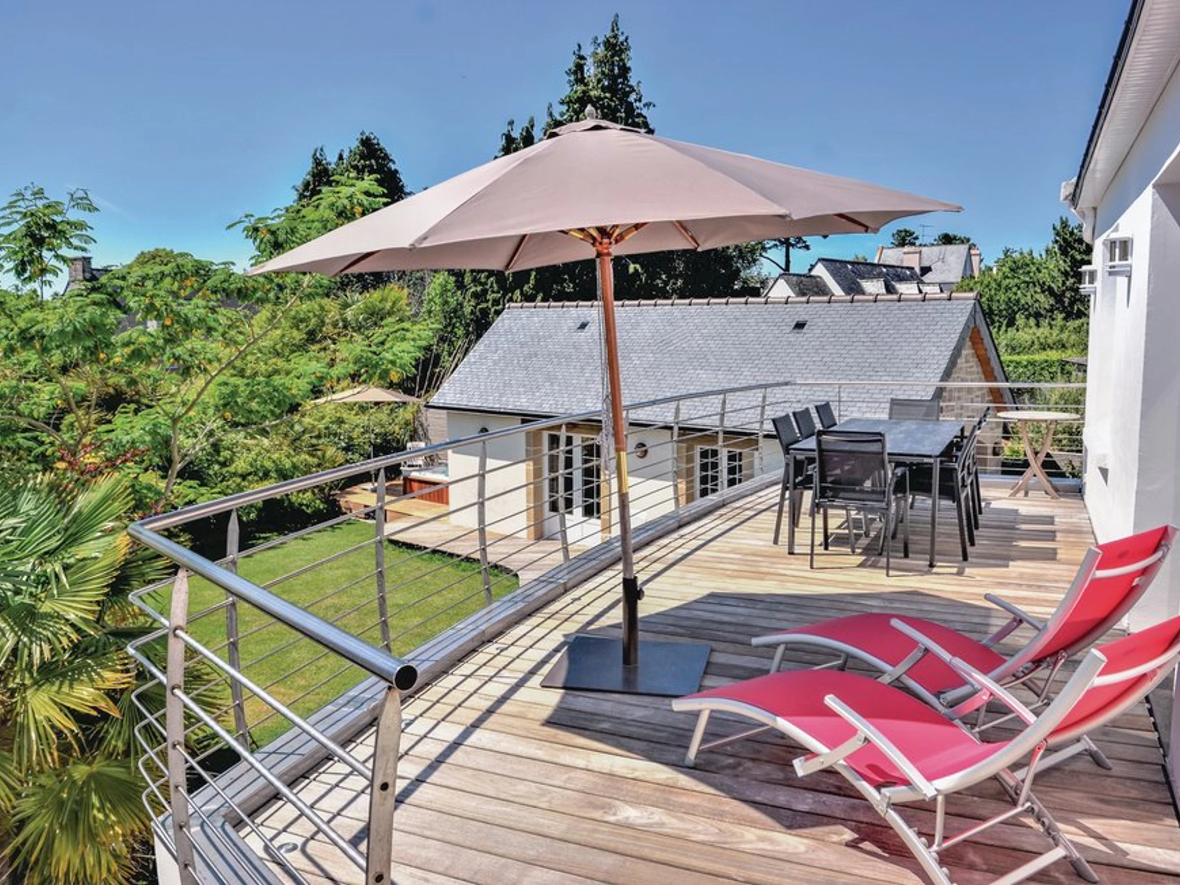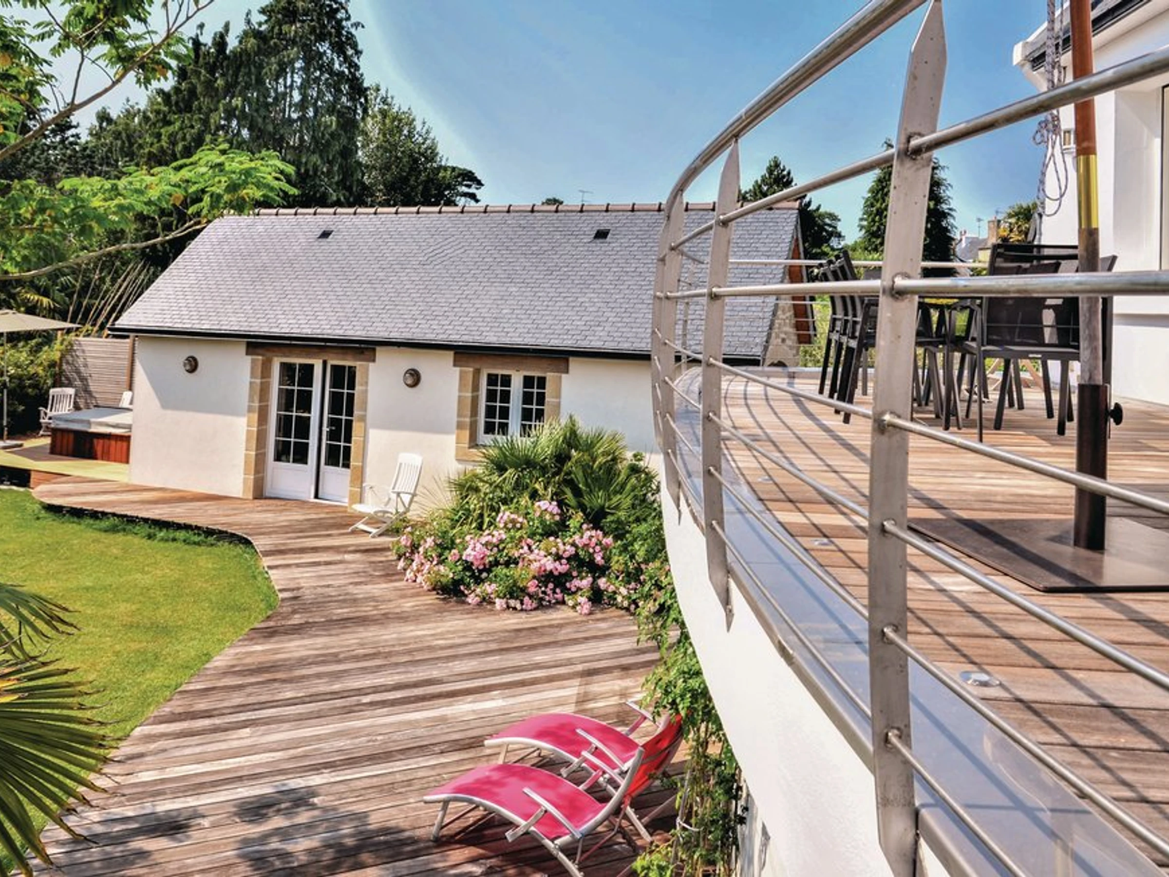 This large, impressive house, totally restored and redecorated, is set in a quiet street in the seaside resort of Bénodet, just 500m from the sea front and the sailing harbour. The rooms are light and airy due to the large French windows leading to a large decked terrace overhanging a quiet, enclosed garden. Melen Gwenn provides a good standard accommodation over three levels. The town is a very attractive place to enjoy your holiday with the beach, casino, marina and its exceptional spot on the Estuary of the River Odet and the mildness of its microclimate. There are superb walks all around. The beaches of Mousterlin and Beig Meil are all well worth a visit. The River Odet is ideal for taking a boat trip past many legendary old manors as well as to go to the international sailing centre of Glénan Islands. Quimper, with its old quarter, cobbled streets and cathedral is worth a day trip. English and Frenc tv channels. Mandatory extra services on site: Final cleaning - 10.0 EUR per person (minimum 50.0 EUR); Available on site with supplement: Bedlinen incl. towel - 12.0 EUR per person;
