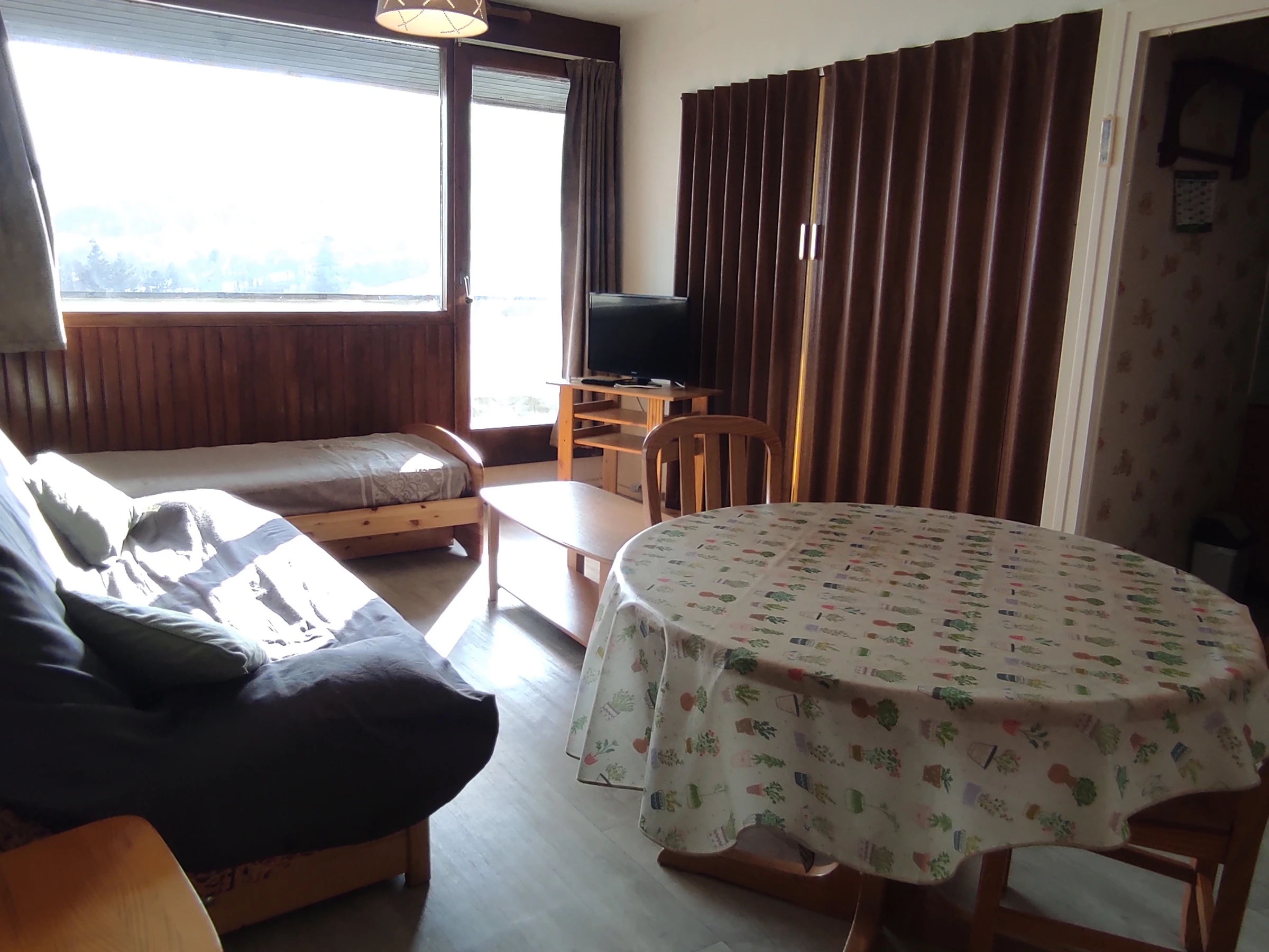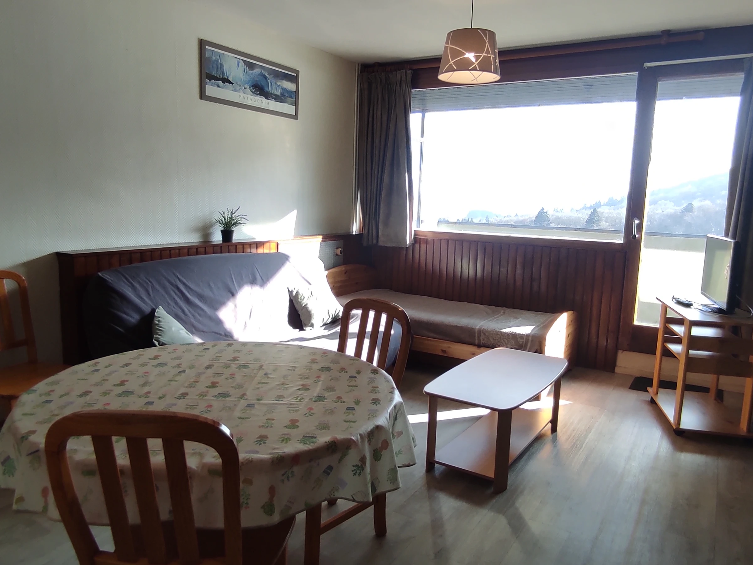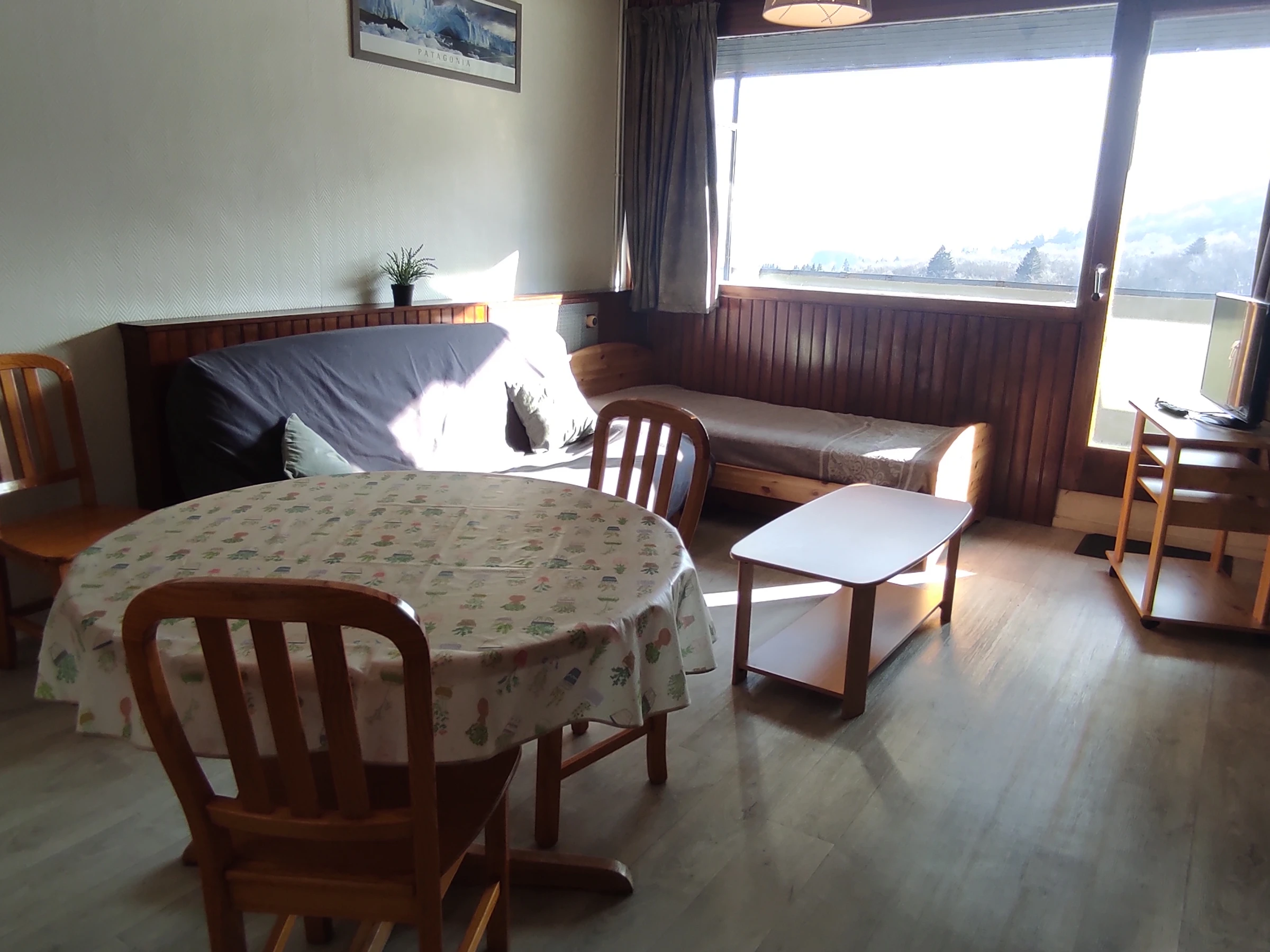 Charming one-bedroom apartment in the heart of Super Besse, in the Centre Station area, right at the foot of the slopes. Located very close to the center, this 38 m² apartment with Wi-Fi, on the first floor of a three-story building, offers a south-facing aspect and a pleasant balcony to enjoy the sunshine. This apartment is particularly suitable for ski and mountain holidays: the slopes are only 50 meters away, and a private, secure ski locker is available in the building. Designed to accommodate up to 5 people, the apartment consists of a bedroom with a double bed (140/190 cm) for two people, and a bright living room equipped with a sofa bed (140/190 cm) for two people and a single bed (90/190 cm) for one person. The kitchenette is fully equipped for easily preparing meals with family or friends. You will also find all the necessary comforts for your mountain stay. Pets are welcome. For your relaxation, patio furniture and a parasol are provided so you can admire the Sancy mountains.