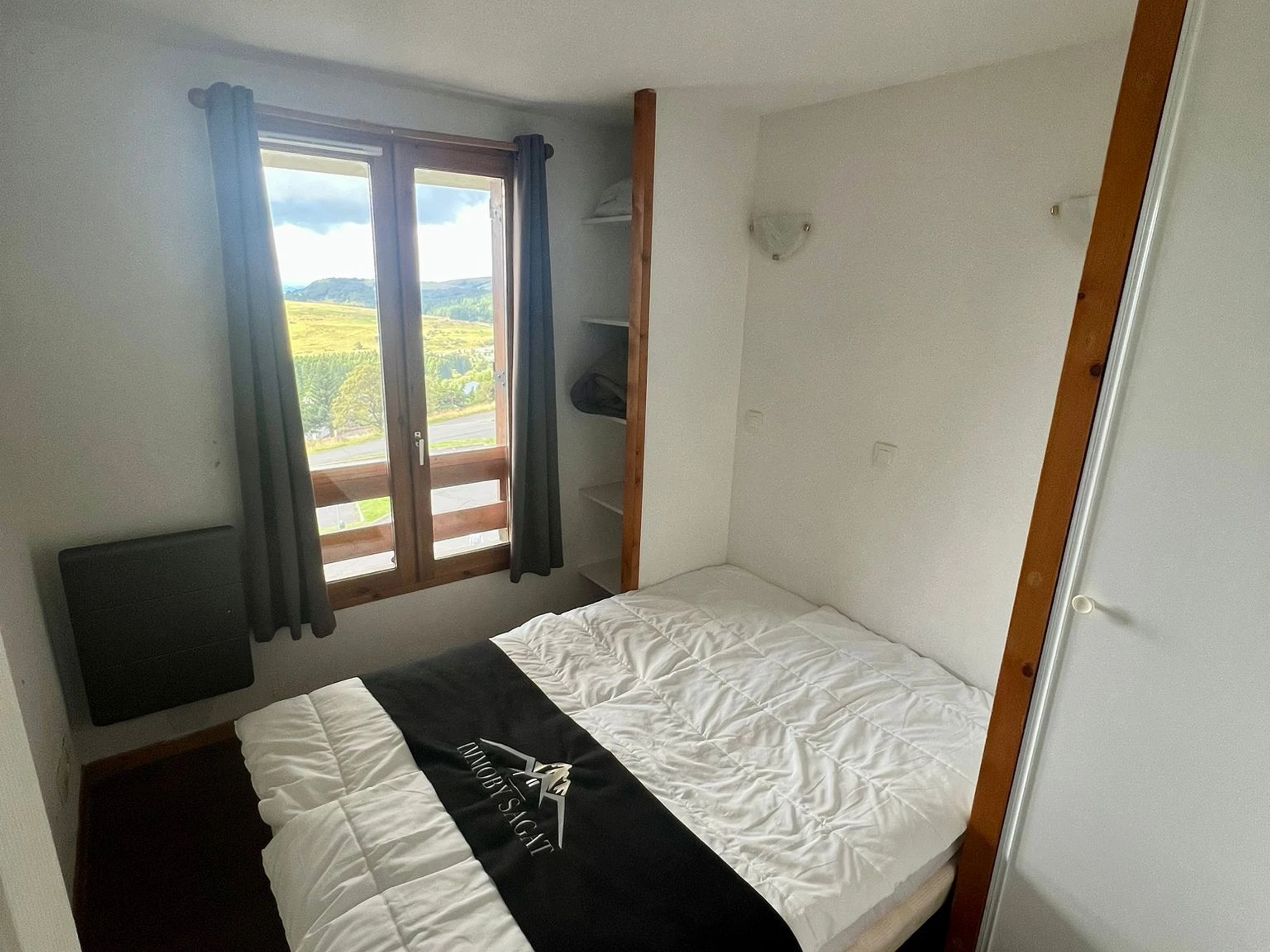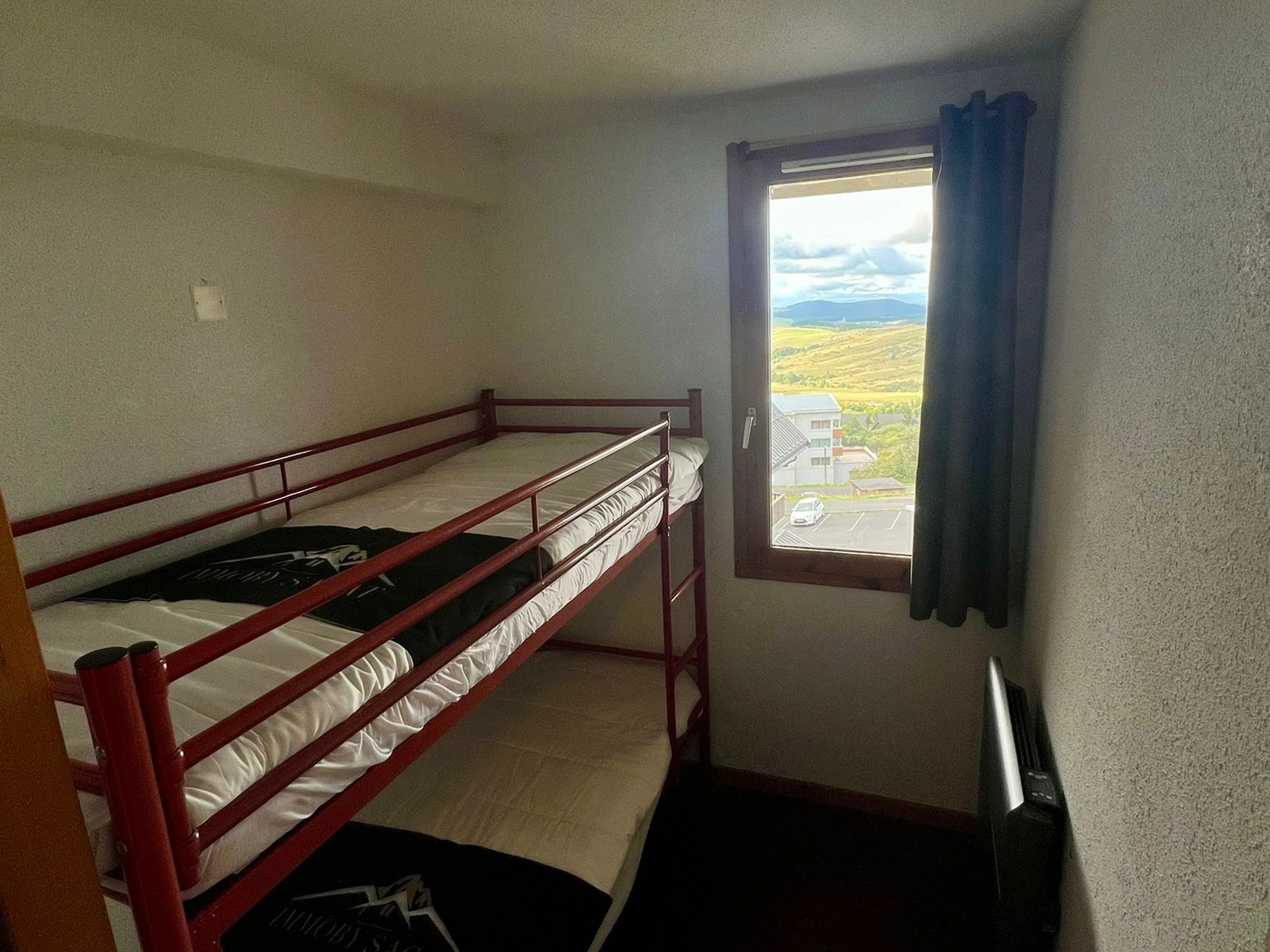In the Matin du SANCY residence, discover a 38 m² apartment for 6 people with a south-facing balcony offering breathtaking views of Cézallier, Plomb Cantal, and the slopes of the Super Besse resort. This apartment offers all the comforts of a stay in the resort, with its living room opening onto the balcony and a fully equipped kitchen. The apartment features a beautiful bedroom with a double bed (140x190cm) and two closets. A separate sleeping alcove with a bunk bed (90x190cm) can accommodate 2 people with its closet. A sofa bed (double bed 140x190cm) is available in the living room.