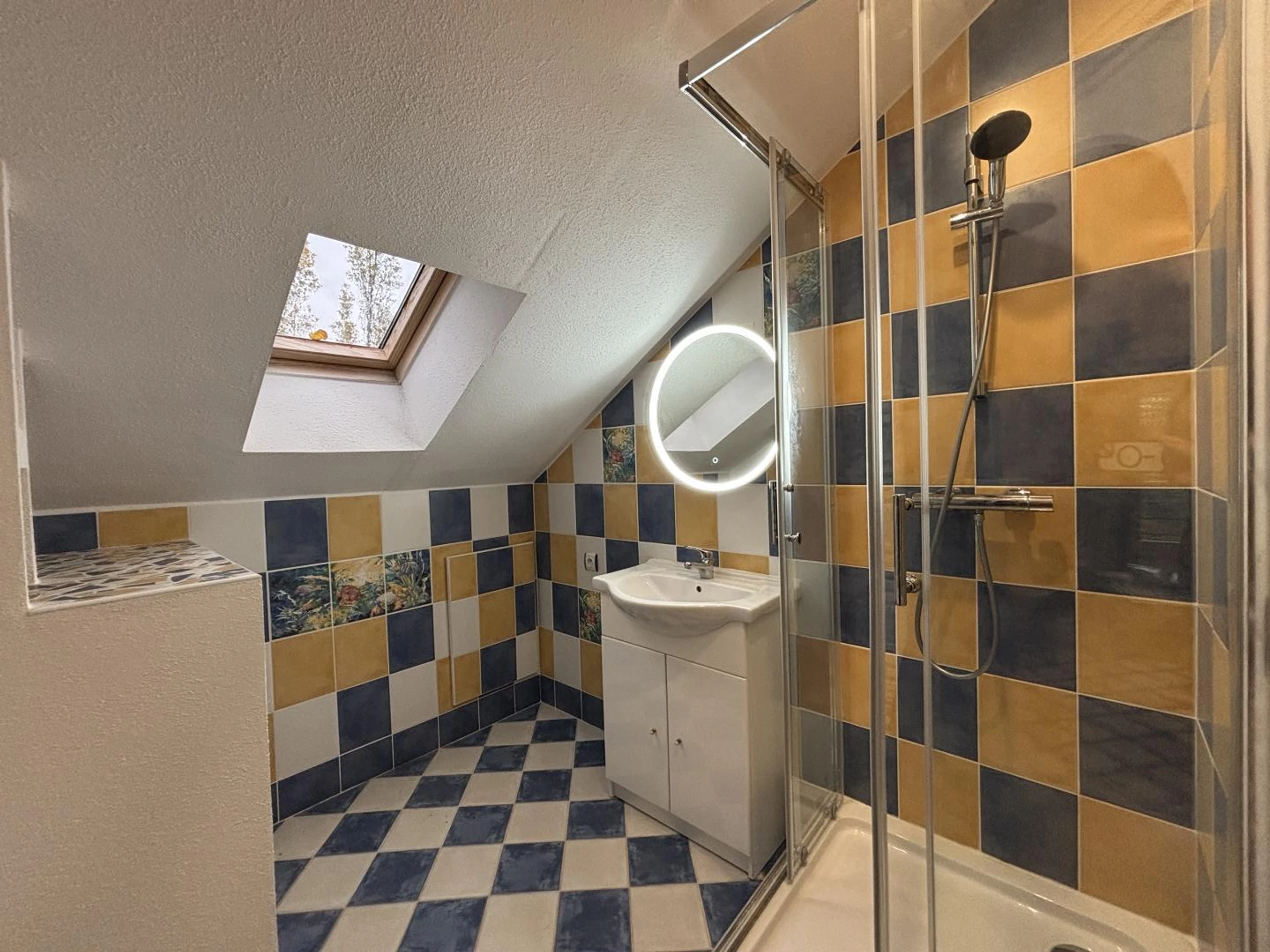 Raised ground floor: living room open to the dining room and, beyond, the kitchen. Access to the private terrace, overlooking the spa, is from the kitchen. One bedroom for two people, ideally suited for children, with bunk beds, a bathroom (bathtub), separate toilet, and a laundry room.