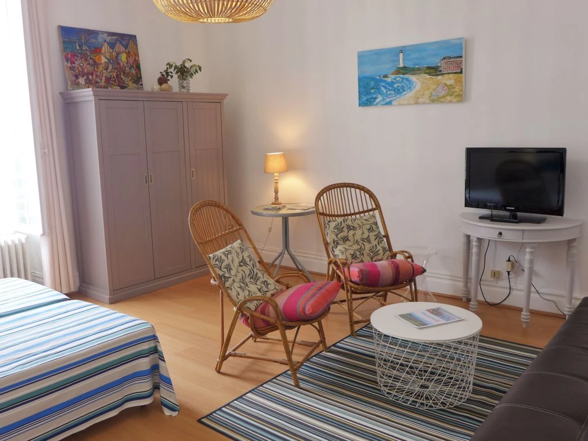 Biarritz: Villa "Aramis", 2 storeys. In the centre of Biarritz, in a central position, 300 m from the sea, 300 m from the beach. Public car park at 500 m. Shop, grocery, restaurant 200 m, bus stop "Javalquin" 240 m, railway station "Biarritz" 3 km, sandy beach "Grande Plage" 300 m, indoor swimming pool 400 m. Golf course (18 hole) 2.4 km.