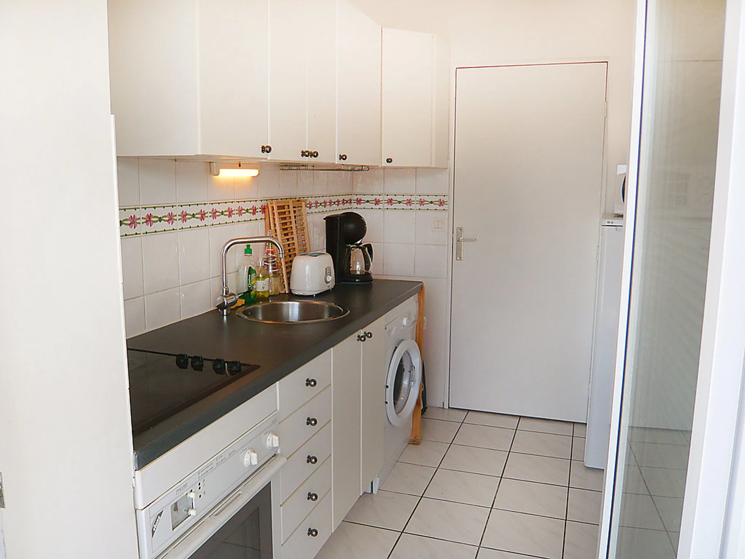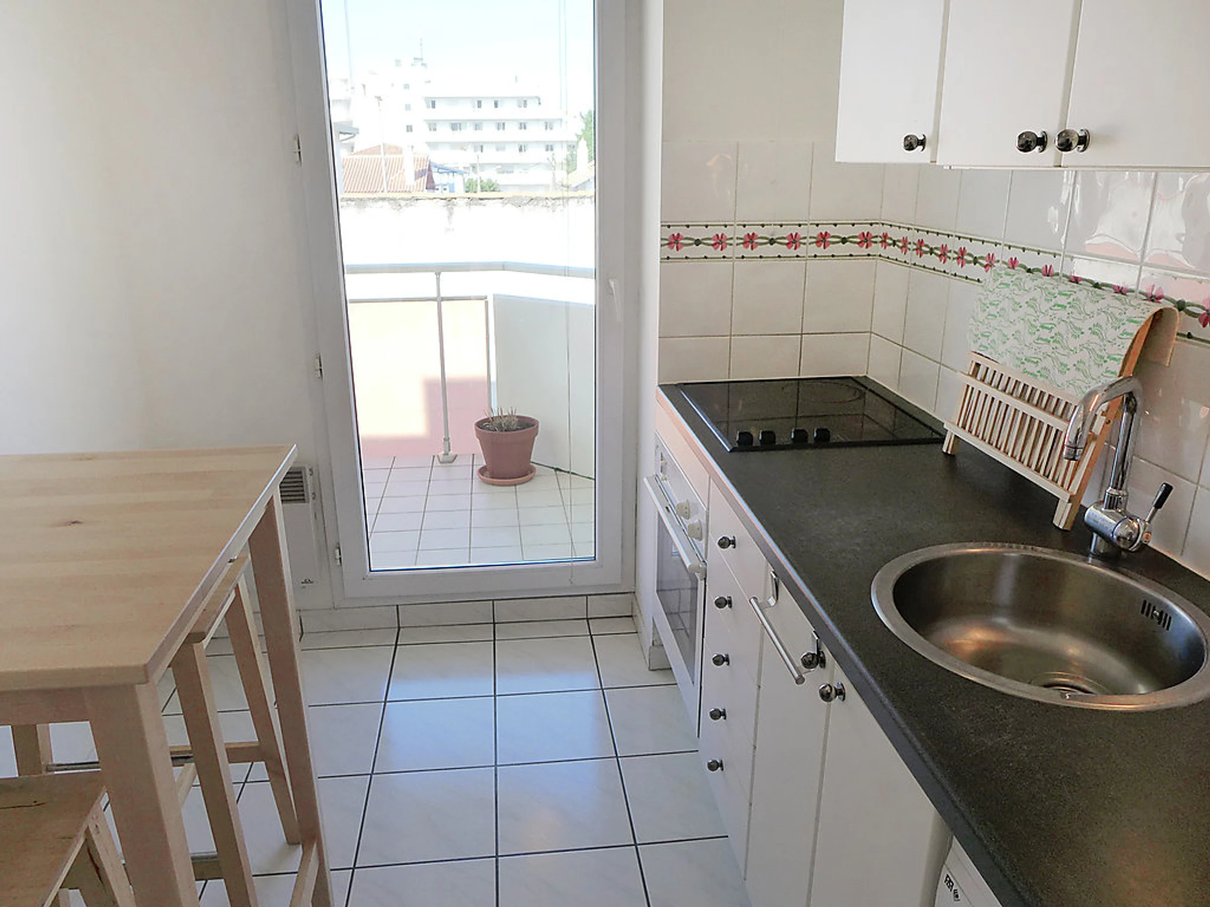 2-room apartment 47 m2 on 3rd floor. Practical and beautiful furnishings: living/dining room with 1 double sofabed (1 x 140 cm), dining table and TV (flat screen). Exit to the balcony. 1 room with 1 french bed (1 x 140 cm). Kitchen (oven, dishwasher, 4 ceramic glass hob hotplates, microwave, freezer, electric coffee machine). Bathroom, sep. WC. Electric heating. Balcony 6 m2, west facing position. Facilities: washing machine, iron. Reserved parking space n 308. Mandatory extra services on site: Local tax babies (0-2) (per person/day), Local tax children (per person/day), Local tax 0.55EUR per person/day, Local tax 0.5EUR per person/day