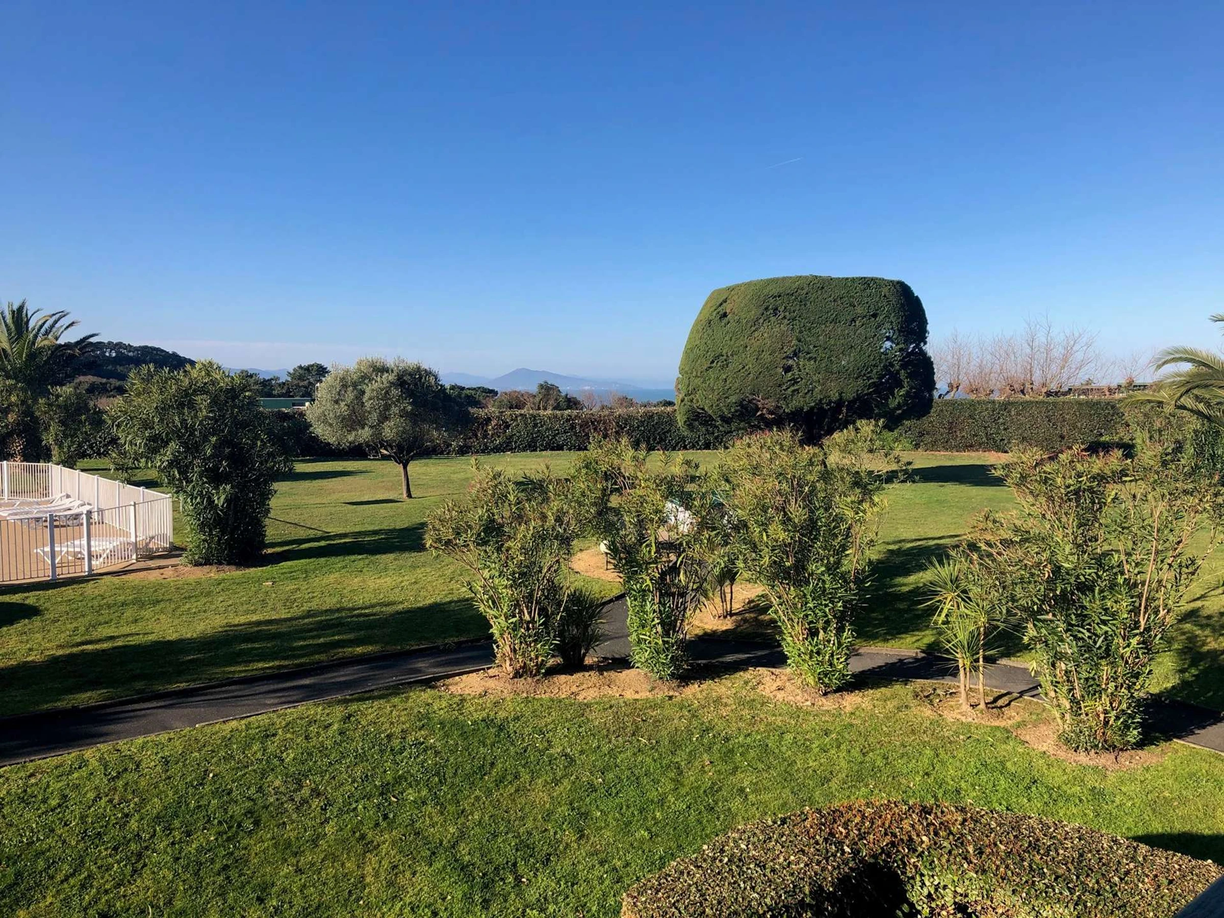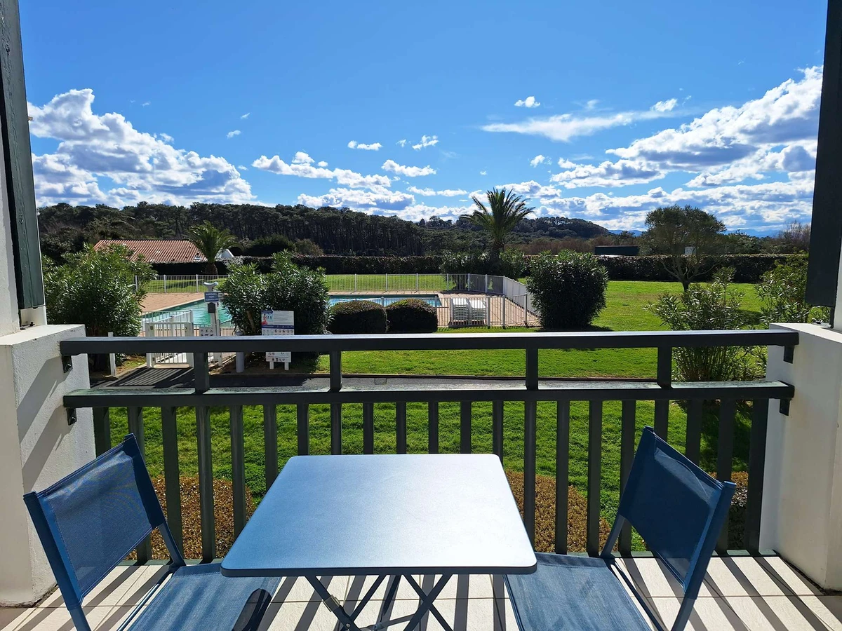 ROSERAIE: In Bidart's Ilbaritz district, this beautiful apartment is on the first floor of a vacation residence, featuring a shared swimming pool, a tennis court (accessible for a fee), and an elevator. Located near the Ilbarritz Golf Course and the beaches, it offers a view of the famous Château du Baron de l'Espée.