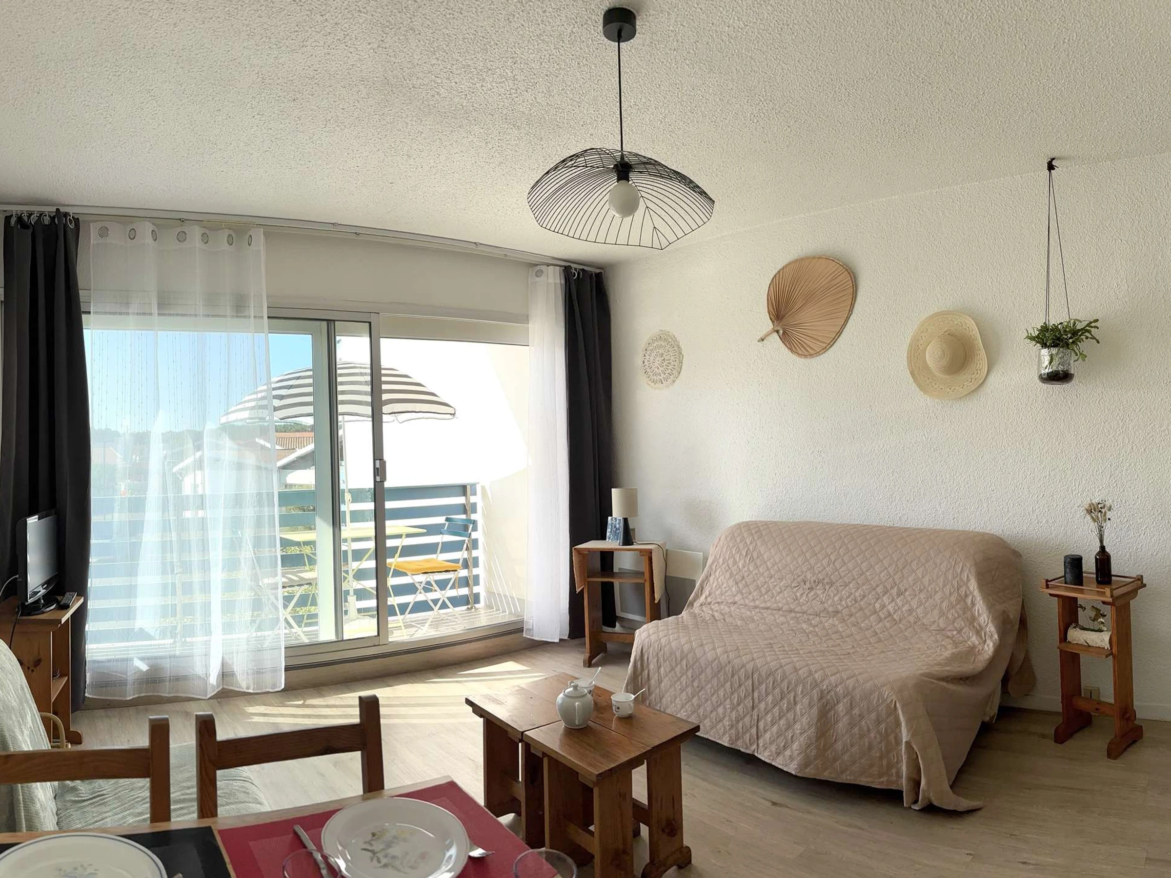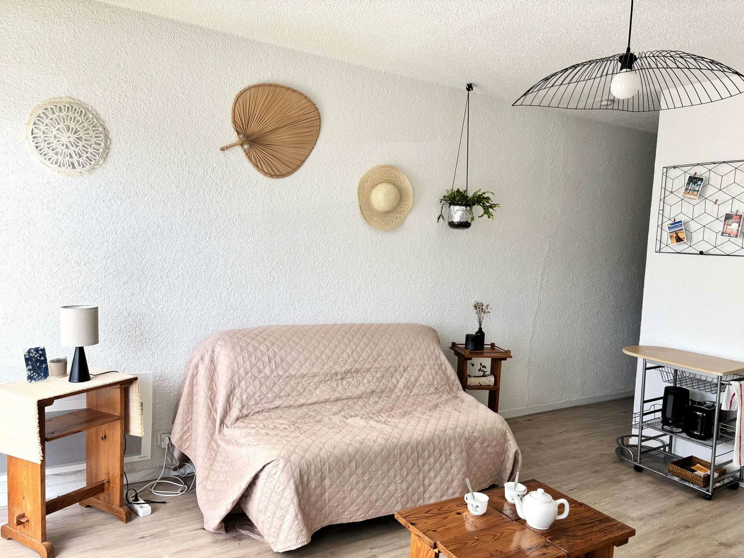 This 30m² studio cabin sleeps 4, ideally located on the 1st floor of the LA FONTAINE residence, a stone's throw from the ocean and all amenities, in a quiet setting. It also includes a private parking space.