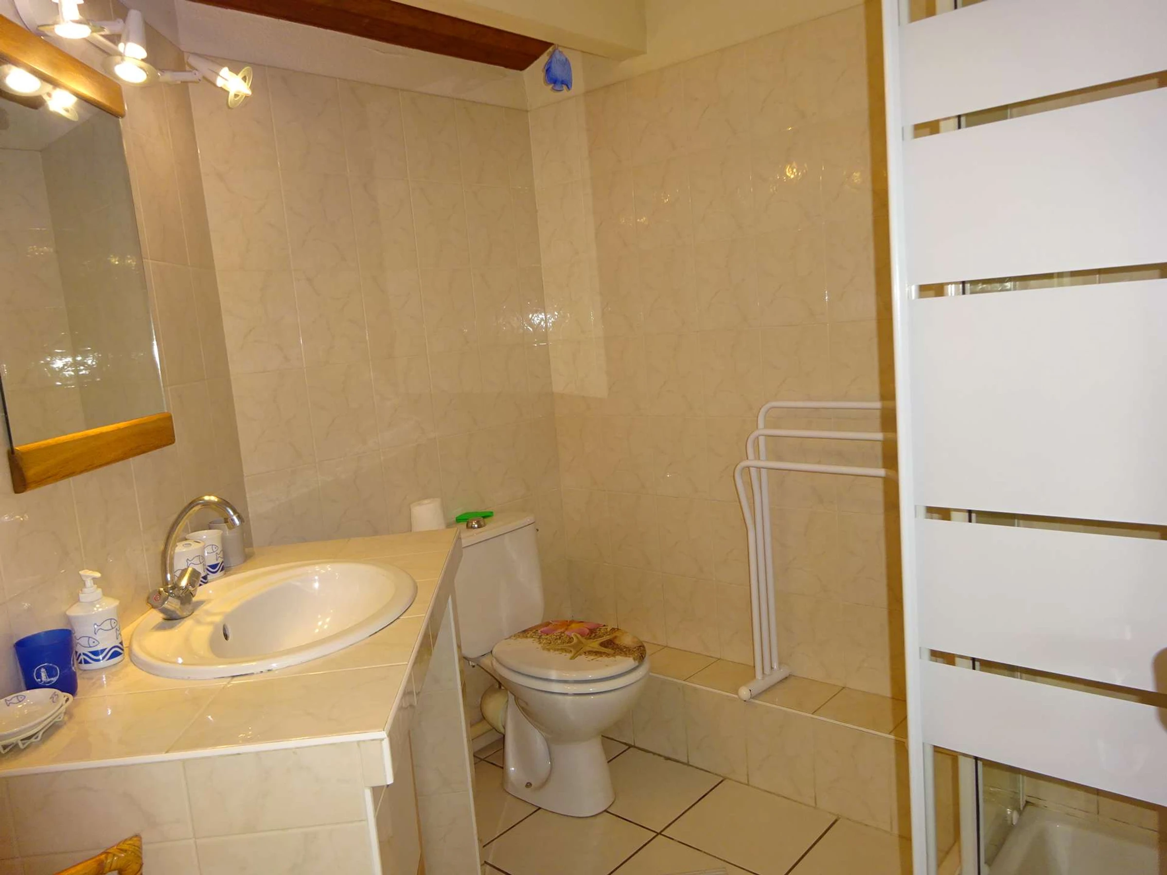 In a residence close to the beach and shops, pleasant apartment of 50m², bright and spacious, comfortable for 4 people, located on the ground floor, closed terrace with veranda with garden furniture. Car park.