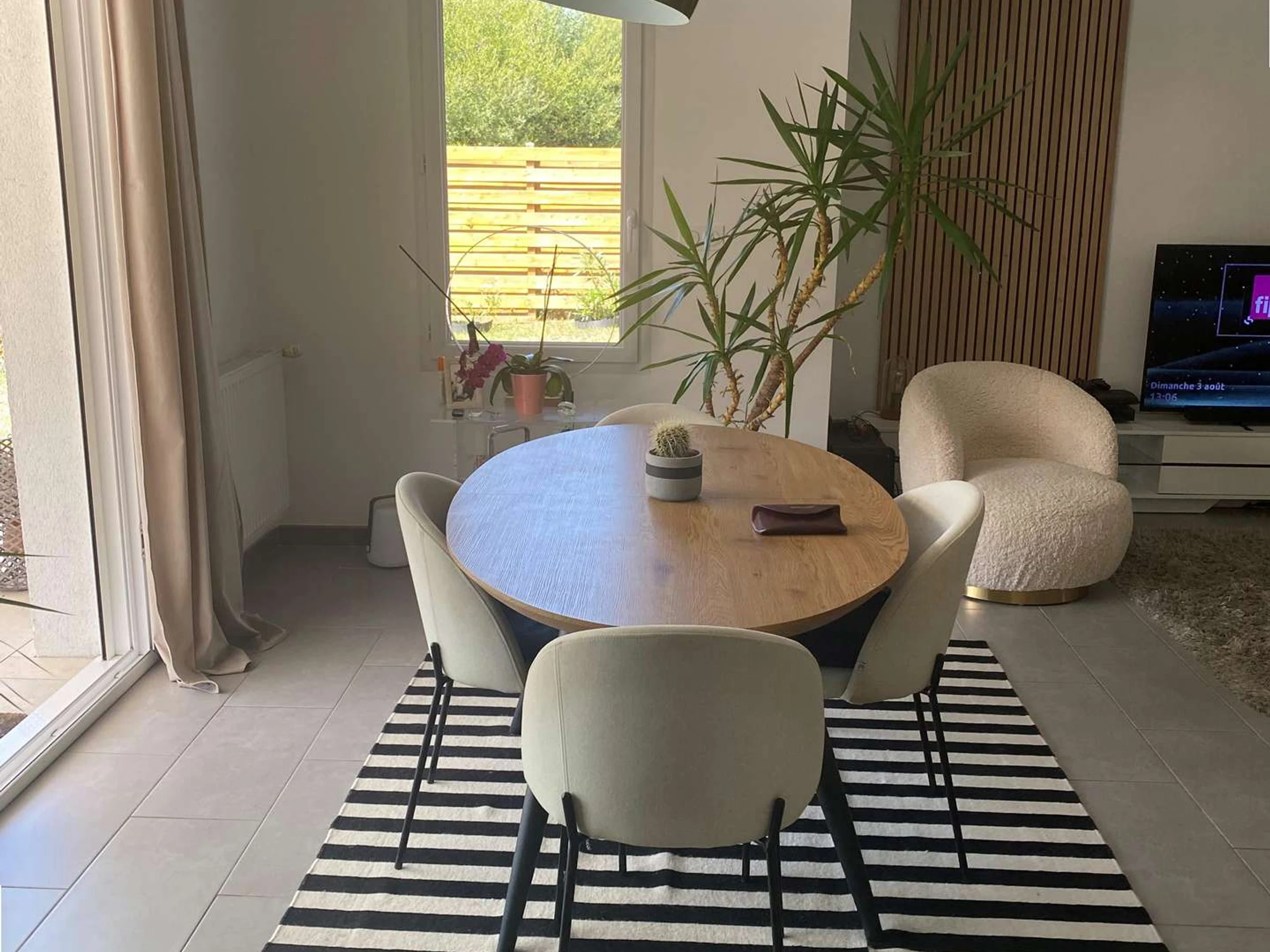 It features three comfortable bedrooms, a modern shower room, and a separate WC. The fully equipped open-plan kitchen blends seamlessly into the living area and includes a dishwasher, oven, induction hob, fridge-freezer, and microwave.