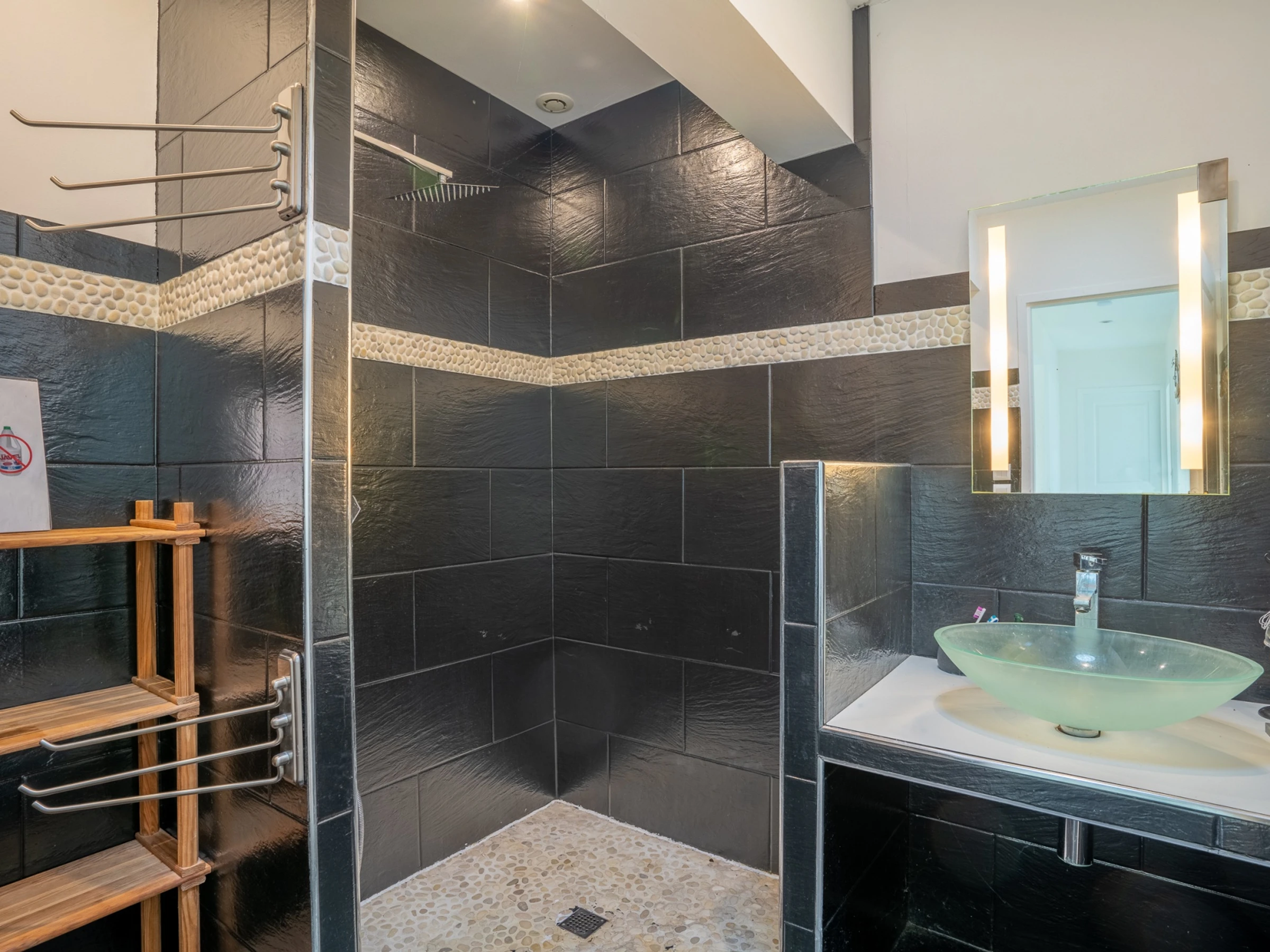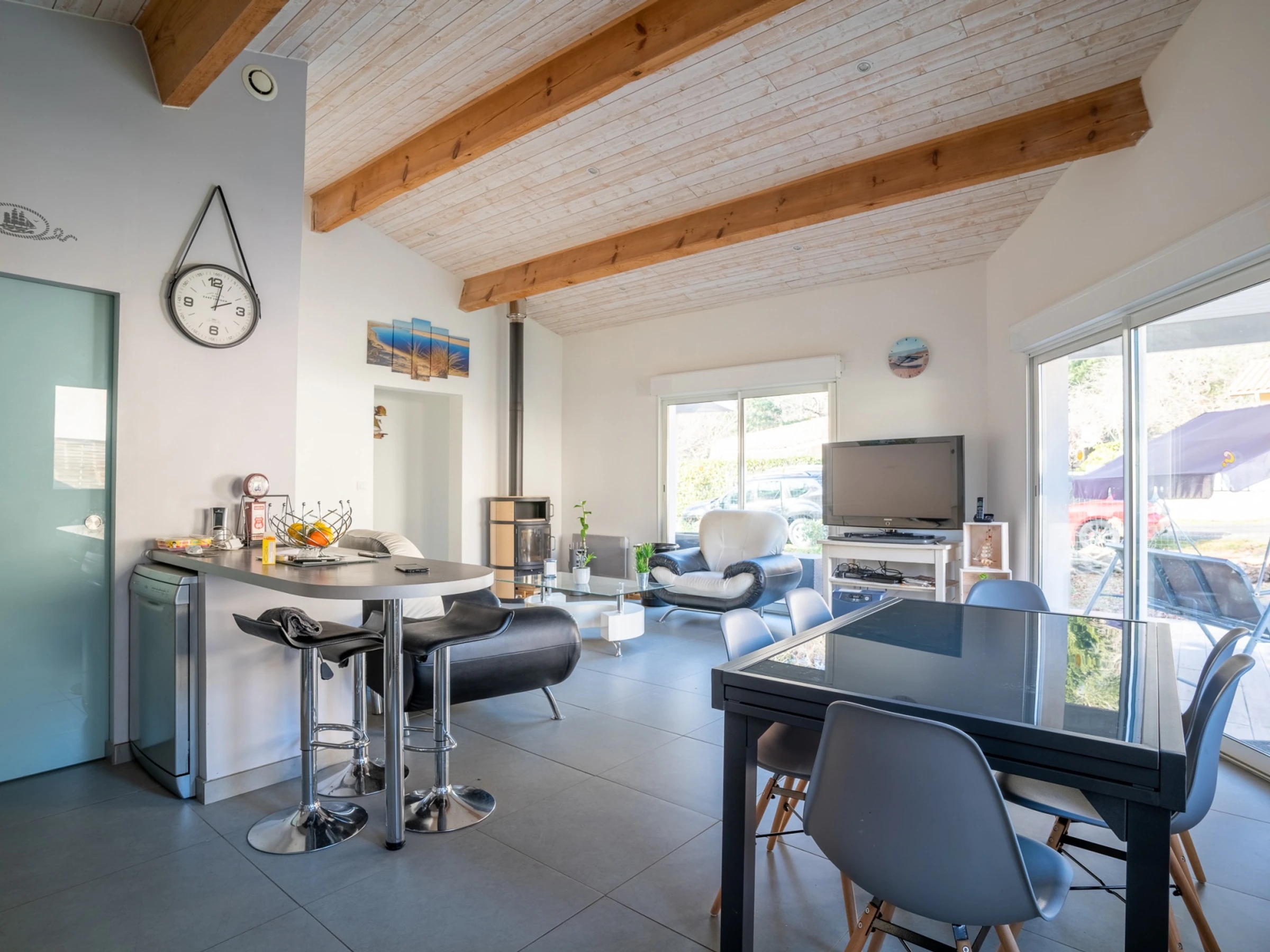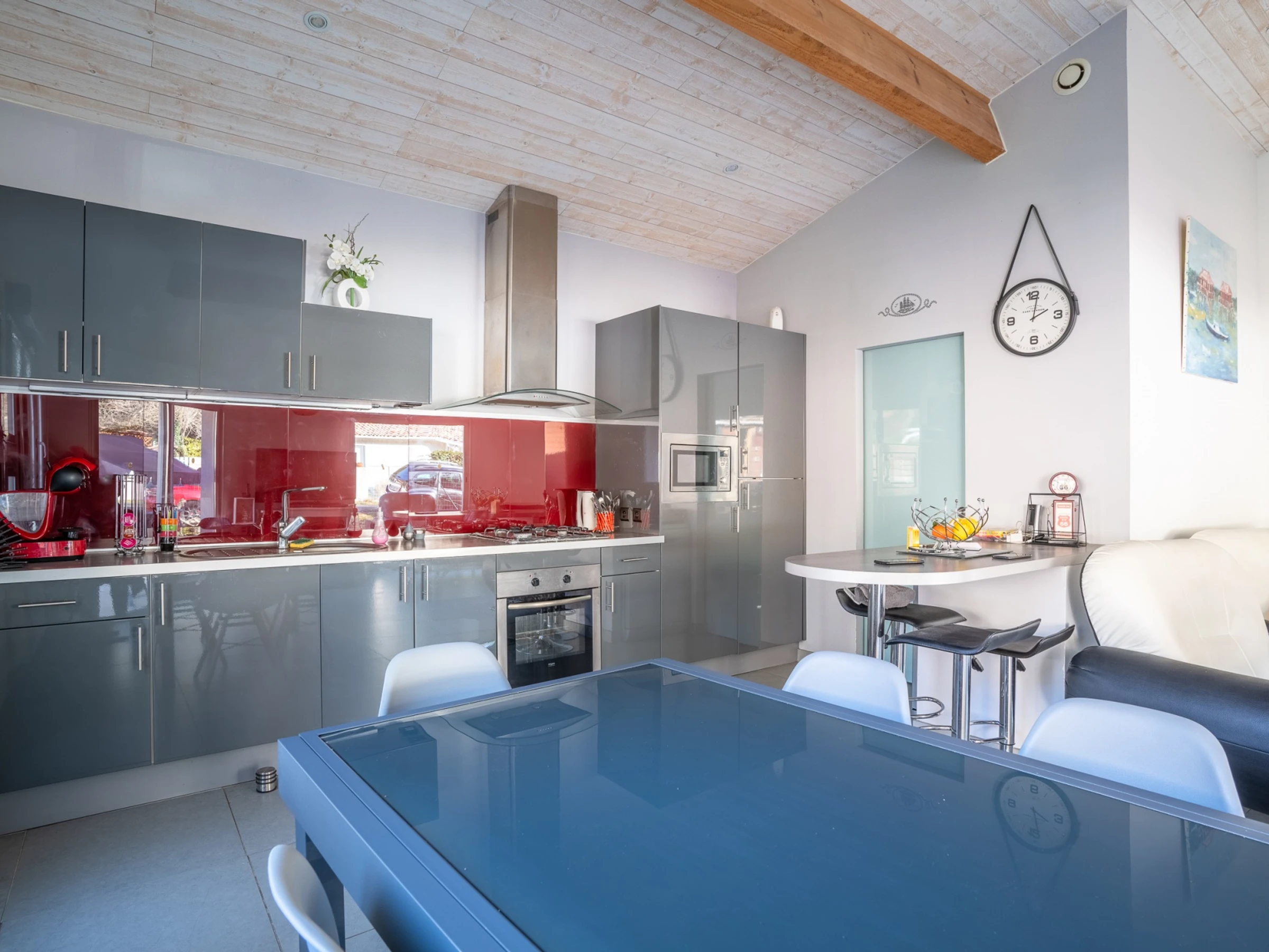 First floor: living room, kitchen equipped with 4 gas rings, an oven, a microwave, a large fridge / freezer, a cellar, a washing machine and a dish-washer.