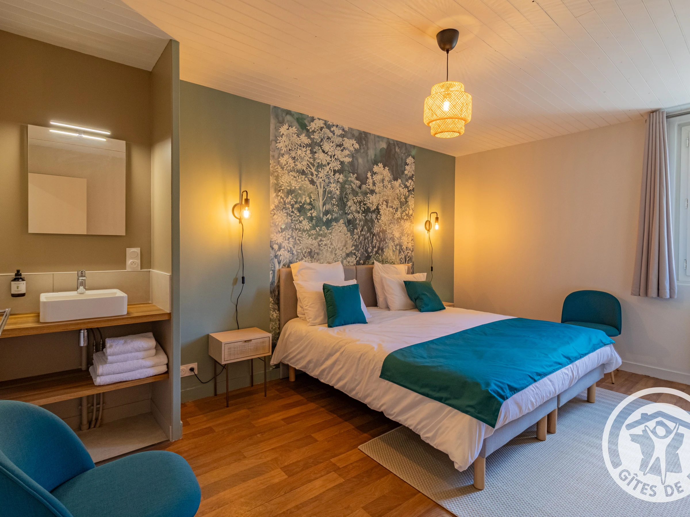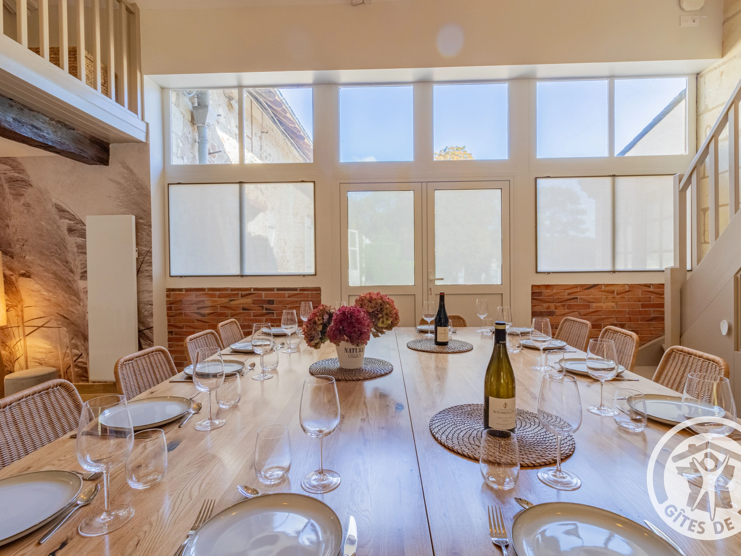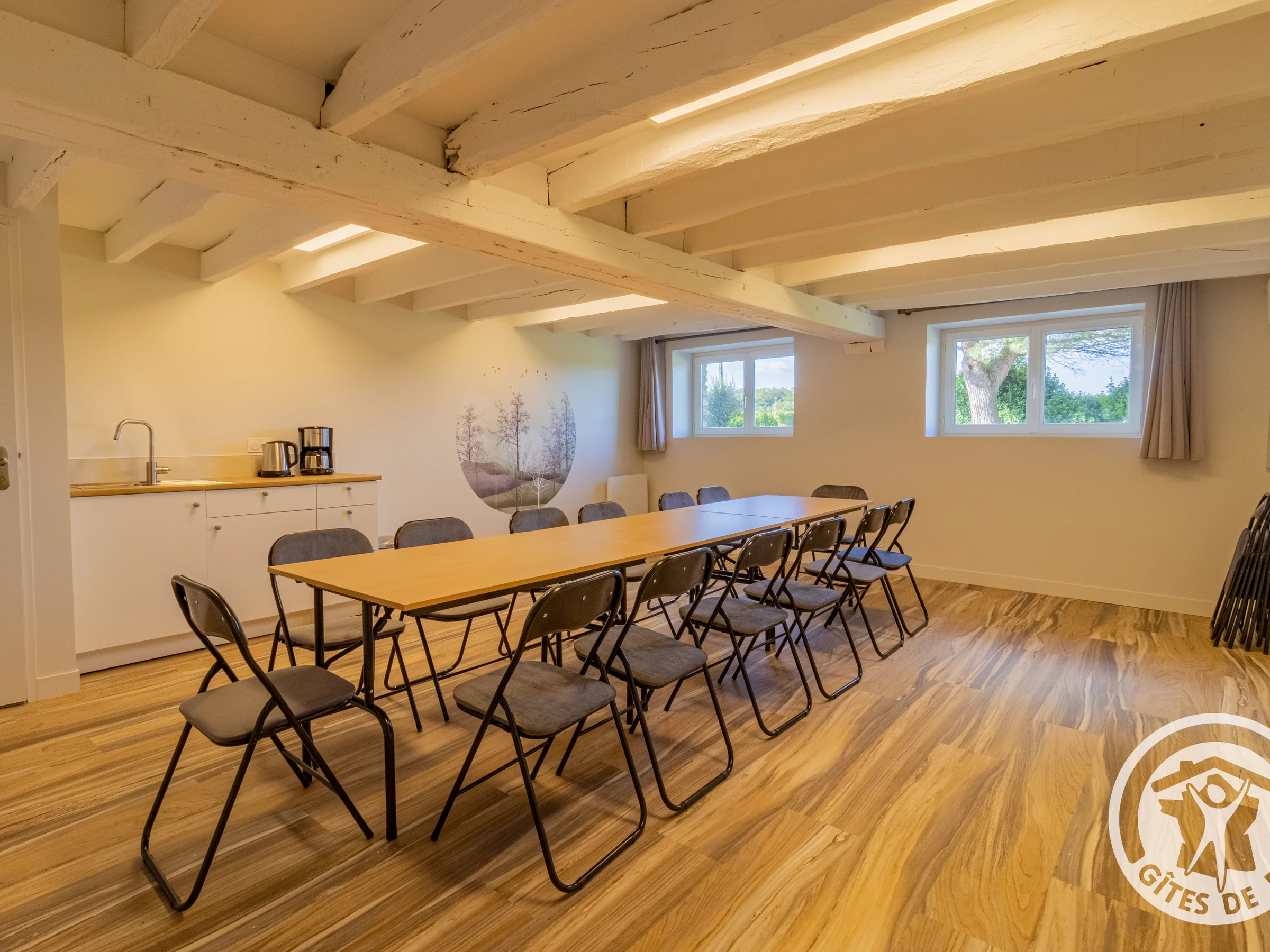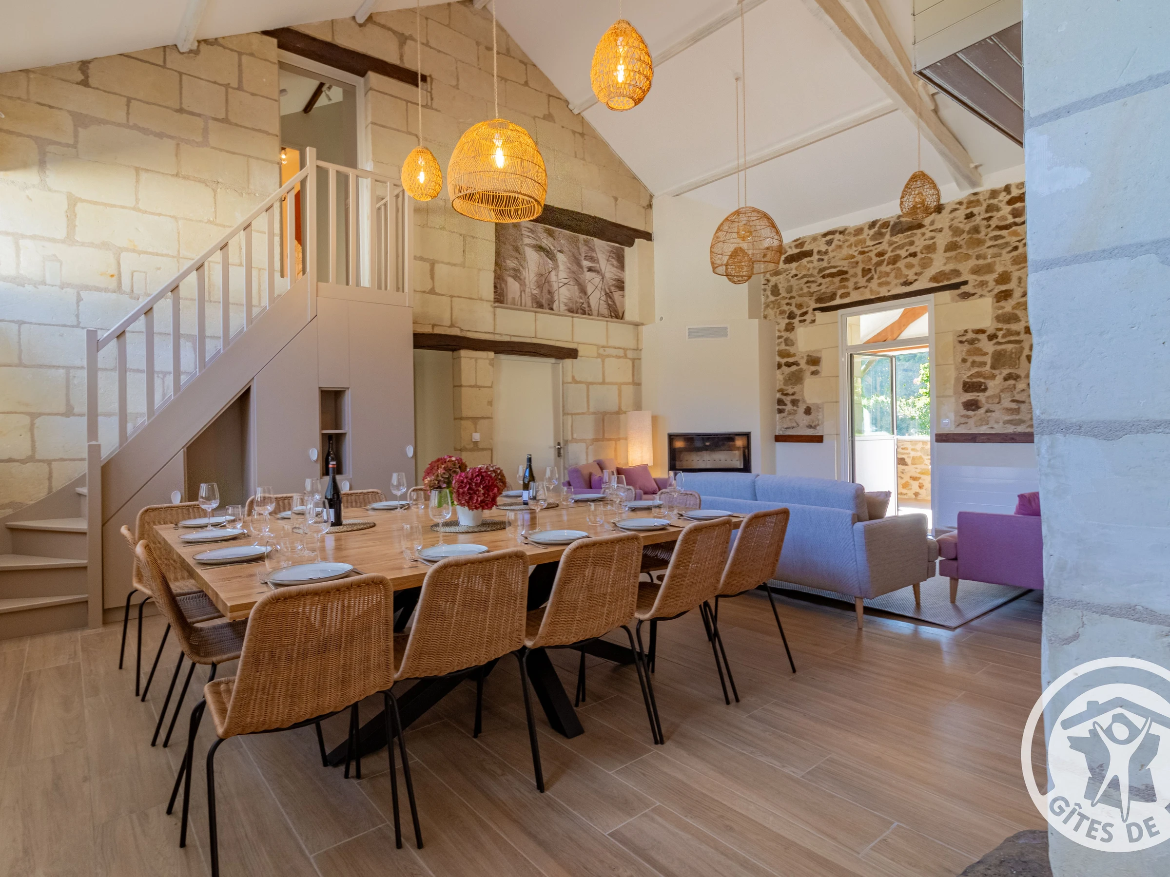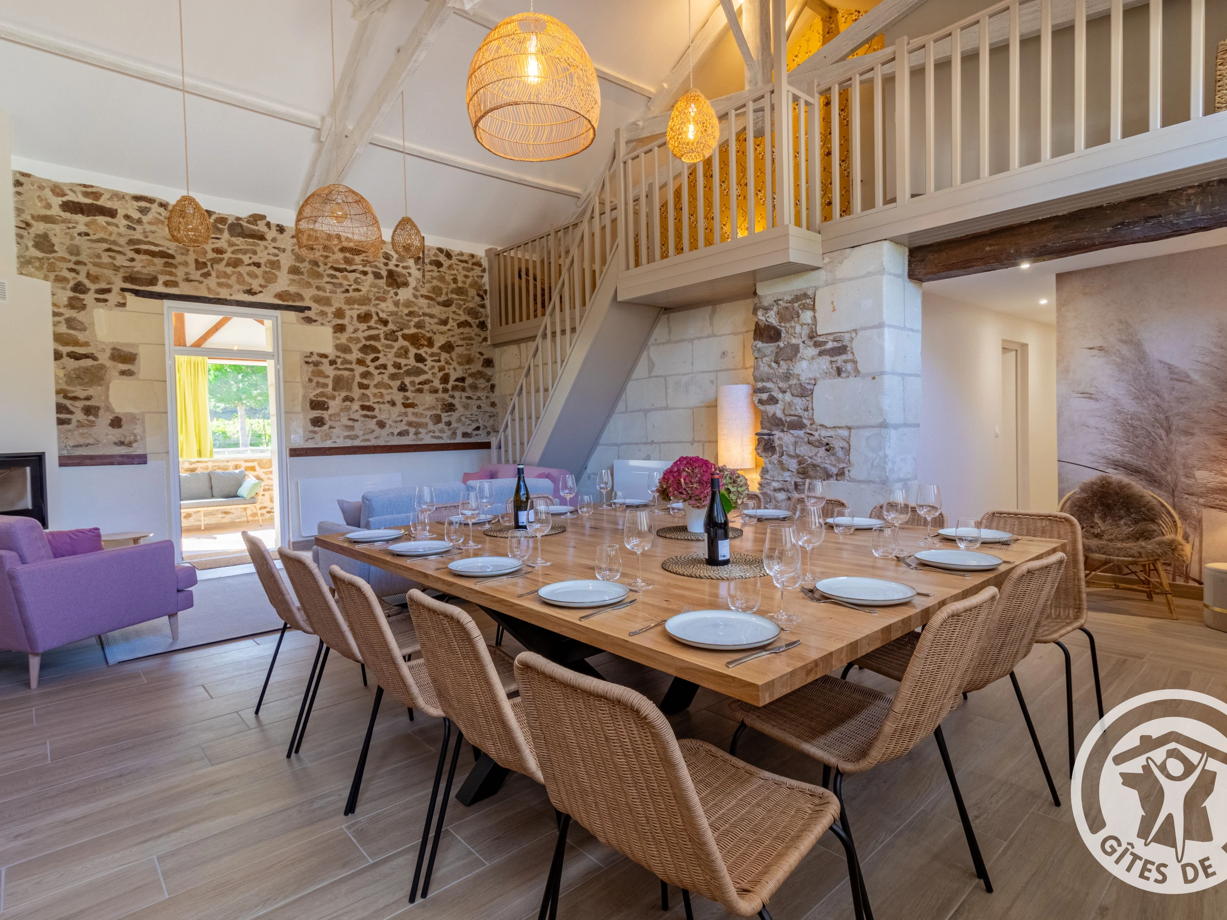 This 240m² gîte near Angers is welcoming and family-friendly, ideal for gatherings while still offering comfortable private spaces for everyone. It's also suitable for seminars or training sessions thanks to its 30m² meeting room with a smart TV, tables, and chairs.