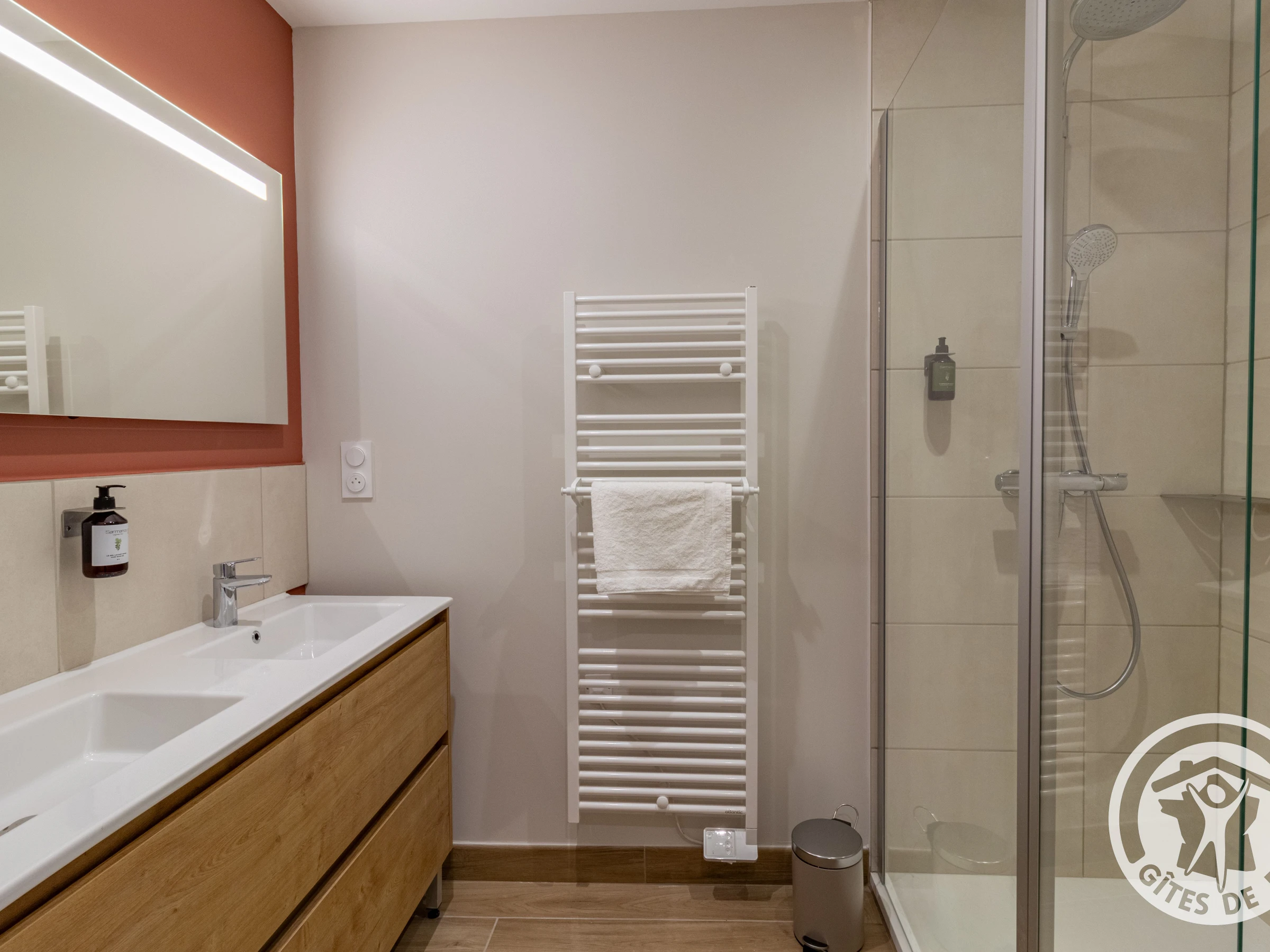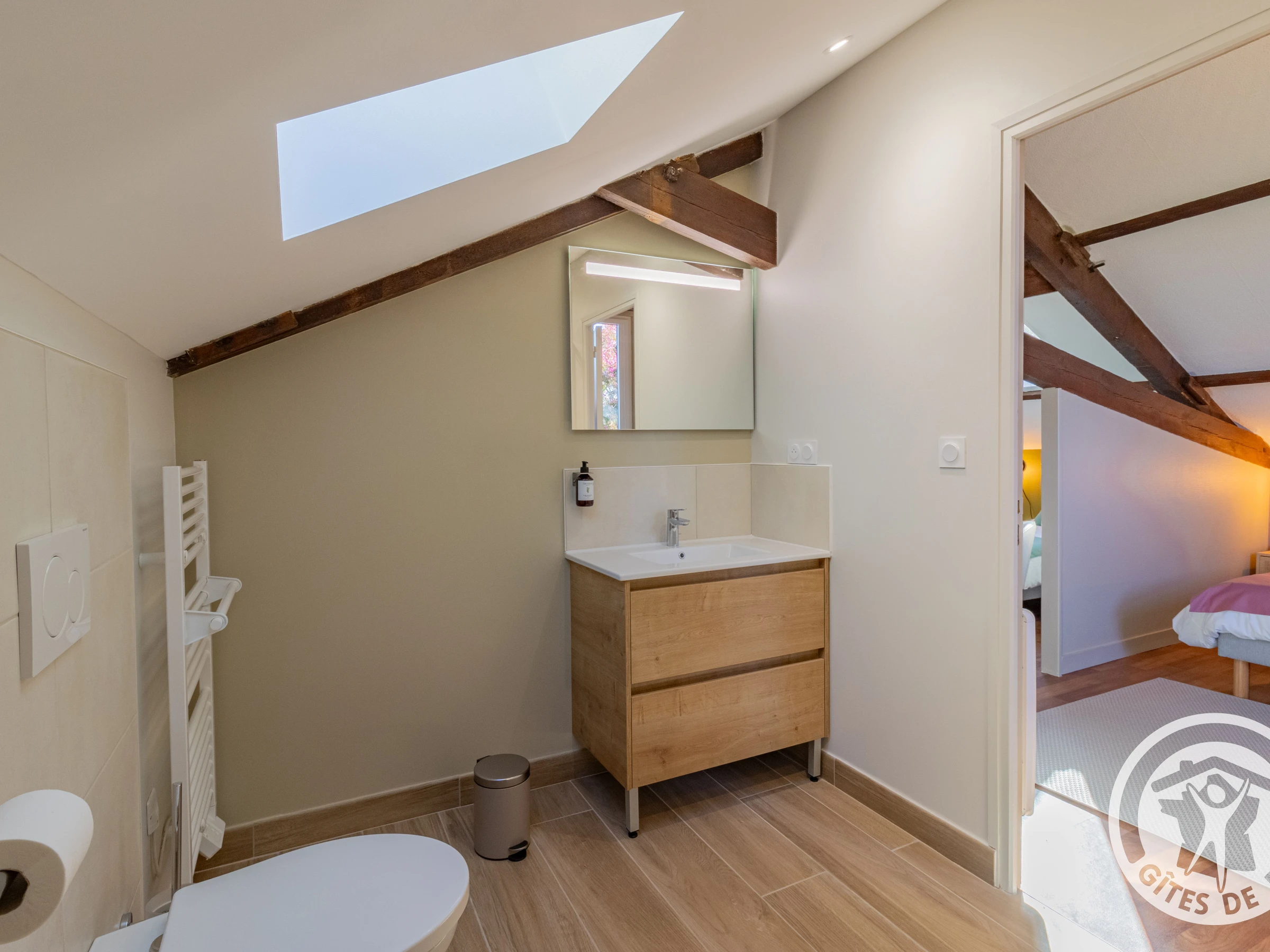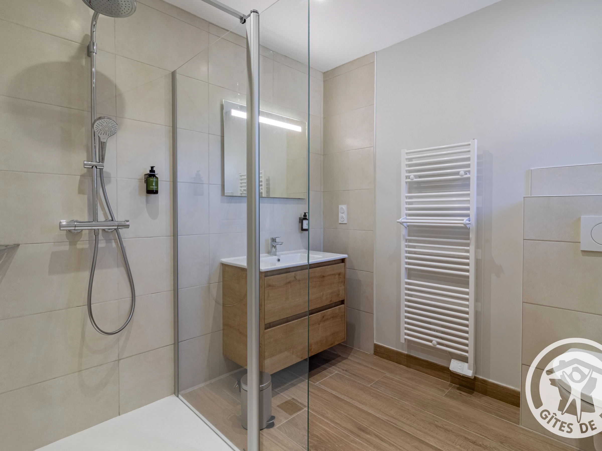 End-of-stay cleaning is optional, and firewood will be charged extra for the fireplace in winter. The stairs leading to the small mezzanine are quite steep. The path to the ground-floor bathroom is narrow; two bedrooms must be crossed to access it, and doorways may make passage difficult. The shower is walk-in, but without a grab bar or seat. The owner is happy to measure the doorways if needed.
