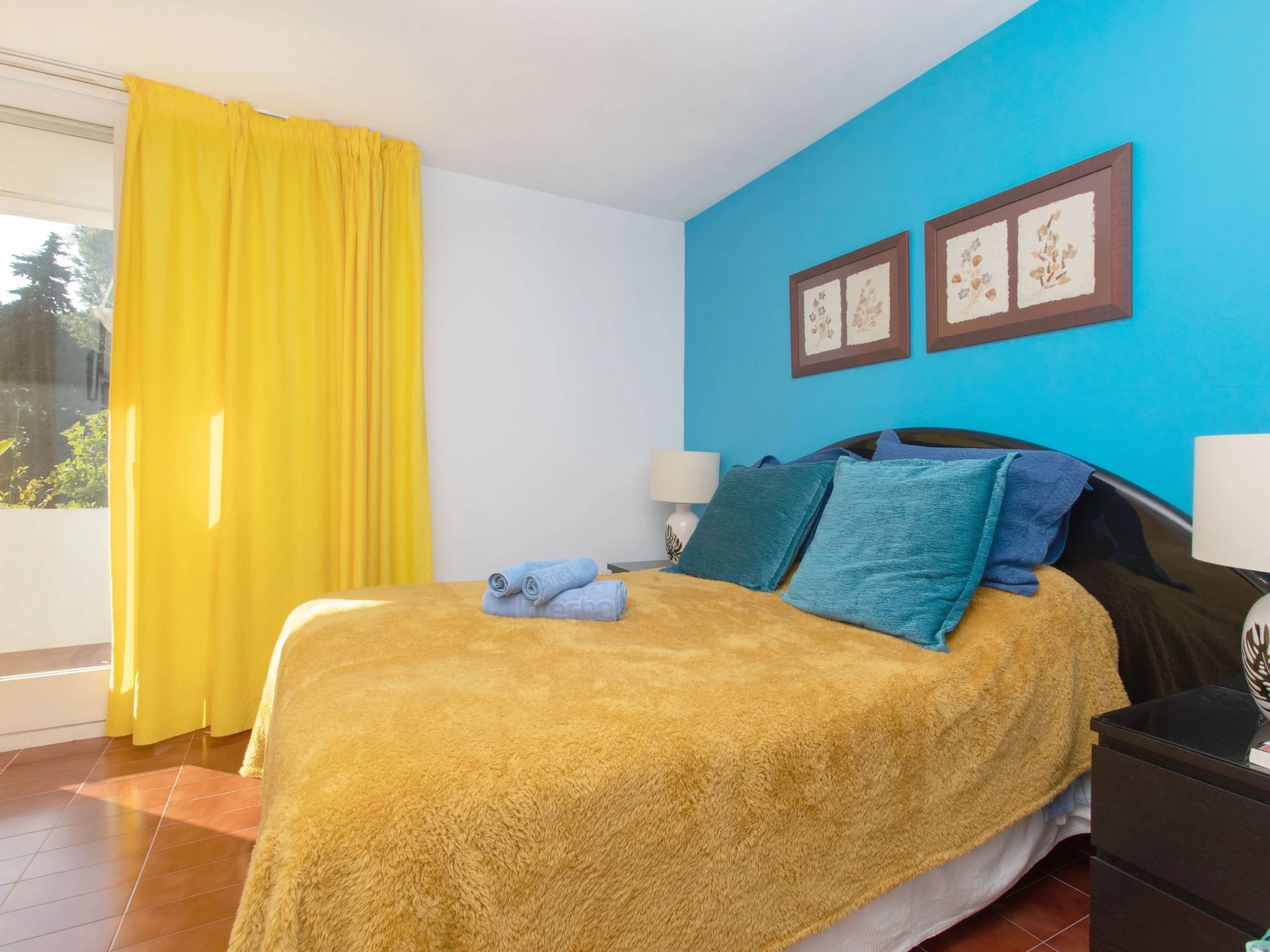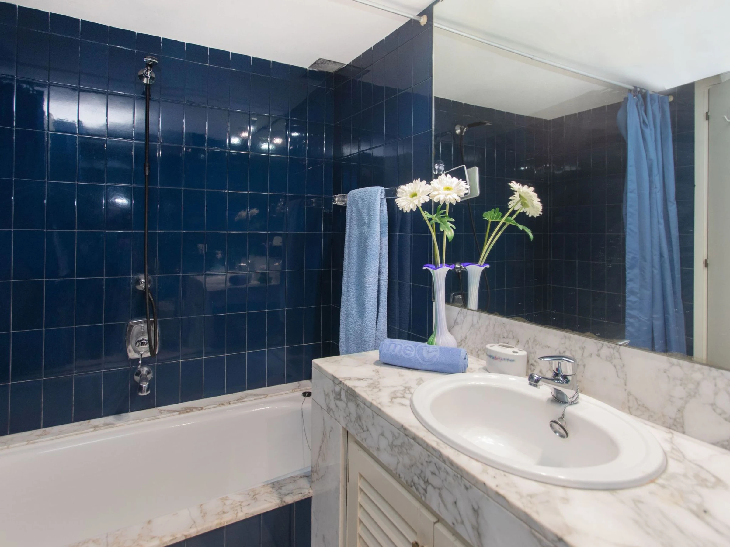Cala Sant Francesc 2 km from Blanes Centro: Beautiful, comfortable apartment block "Cala Bona", surrounded by trees. Outside the resort Blanes, in the district Cala Sant Francesc, in a quiet, sunny position, 30 m from the sea, from the beach, south-west facing position. For shared use: large garden with lawn, swimming pool angular (20 x 10 m, depth 70 - 240 cm, seasonal availability: [hidden] - [hidden] pool opening hours: 10:00-20:00). Shower/WC in the pool area, children's pool, outdoor shower, tennis (1 x hard court). In the complex: restaurant, bar. Carport. Restaurant, bar 20 m, railway station "Blanes" 2 km, sandy beach "Cala Sant Francesc" 30 m. Golf course 21 km. Nearby attractions: Marineland 3 km, Waterworld 6 km, Jardín Botánico Marimurtra 500 m, Jardín Botánico Pinya de Rosa 2 km. Please note: car recommended, no lift. Suitable for families. The owner does not accept any groups. The owner does not accept any youth groups. Loading and unloading of baggage is possible at the holiday house. Neighbourhood highly sensitive to noise. Quietness and good behaviour expected.