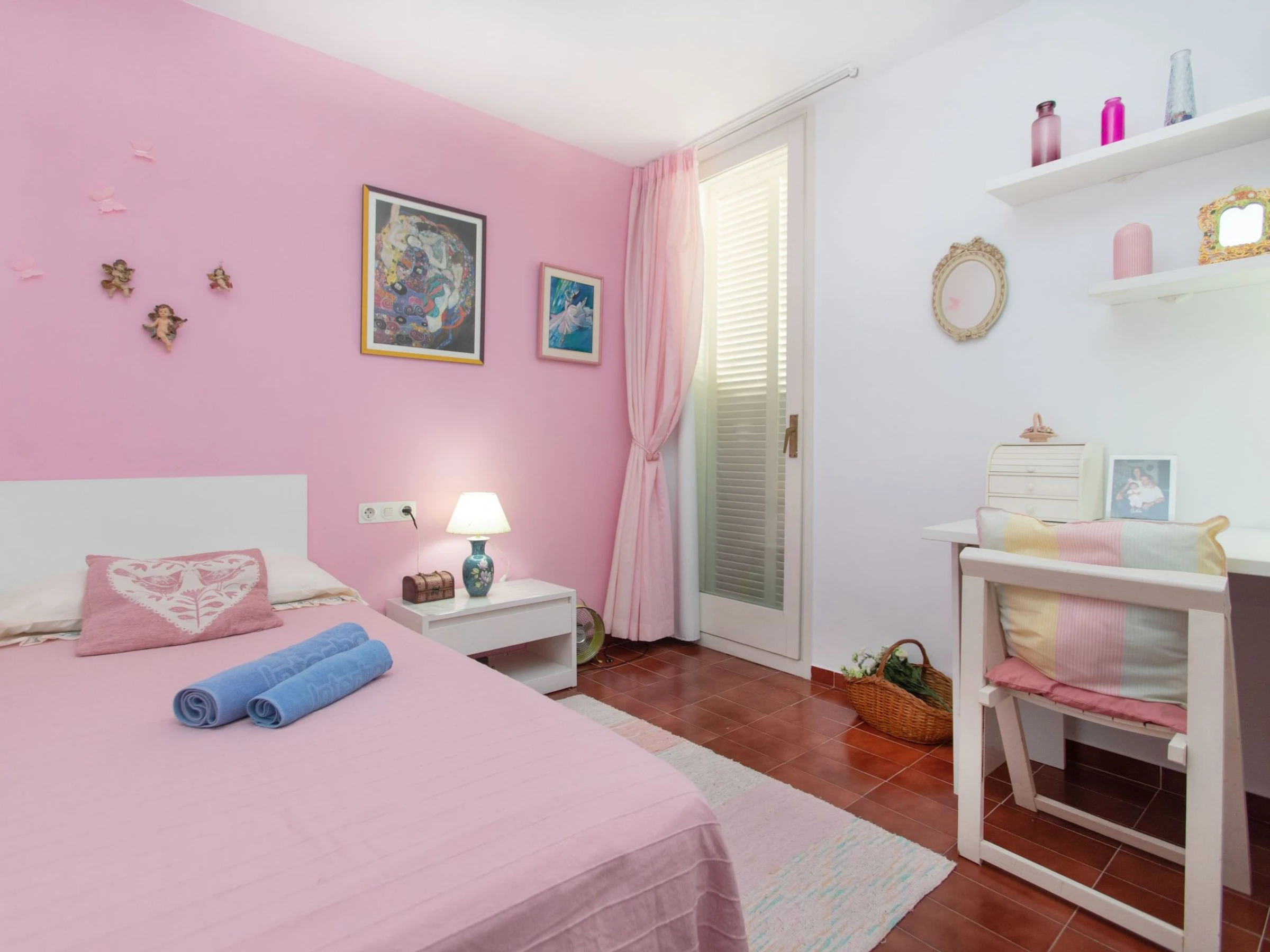 "Cala Bona", 4-room apartment 100 m2 on 2nd floor, south-west facing position. Spacious and bright, very practical and comfortable furnishings: living/dining room with open-hearth fireplace (only for decoration), digital TV. Exit to the terrace, south facing position and west facing position. 2 rooms, each room with 1 bed (90 cm, length 190 cm). 1 room with 2 beds (90 cm, length 190 cm). 1 double bedroom with 1 french bed (150 cm, length 190 cm), bath/shower/bidet/WC. Kitchen (4 hot plates, toaster, kettle, microwave, freezer, electric coffee machine). Exit to the loggia. Bath/shower/WC. No heating option. Large balcony. Balcony furniture. Side view of the sea. Facilities: washing machine, iron, children's high chair, baby cot for up to 2 year olds, hair dryer. Internet (WiFi, free). Garage. Please note: suitable for families. Maximum 1 pet/ dog allowed. TV only ES. [hidden] // Reg. Nr.: ESFCTU000017028000132576000000000000000000[hidden]8